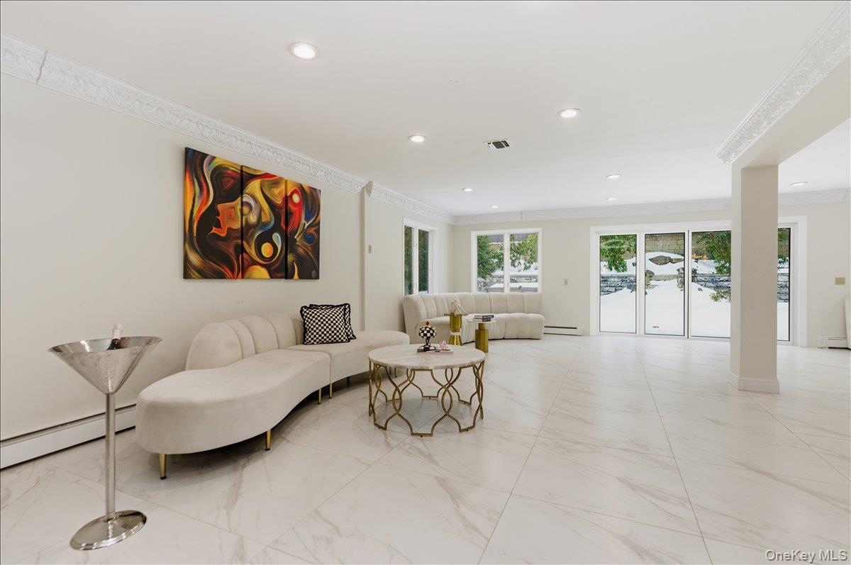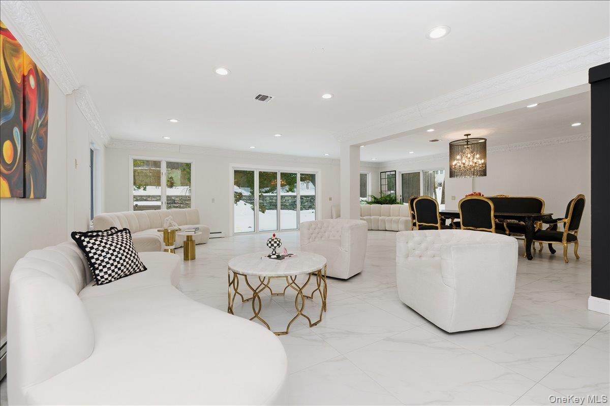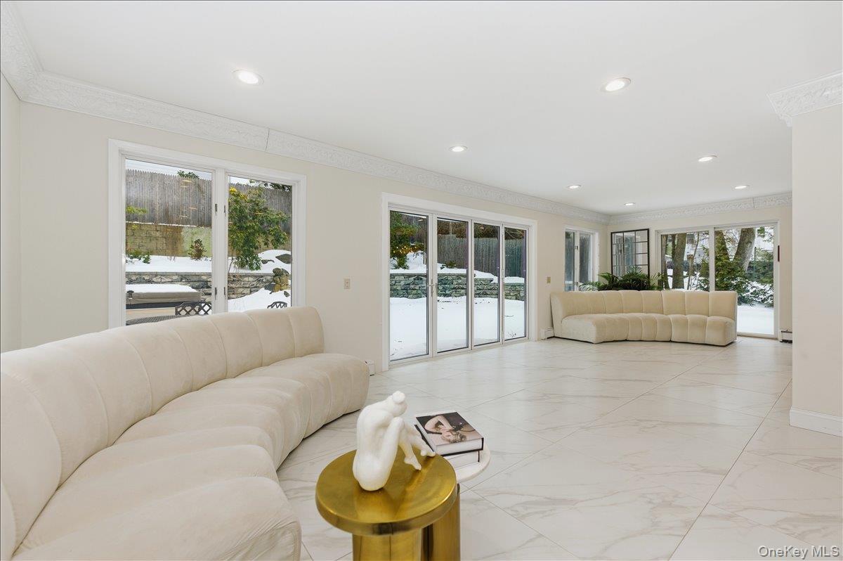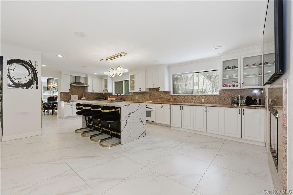 Welcome Home!!! A circular driveway welcomes you you to this beautifully renovated sunlit colonial. A gracious foyer opens up to a large spacious open floor plan featuring an oversized living room, dining room, family room and eat in kitchen with marble center island and working fireplace, powder room completes the main level. Upstairs boasts a private primary suite with en-suite bathroom and large closets, 2 additional bedrooms and a full bath & Upstairs Den/Family Room completes the 2nd level. This fabulous home is surrounded by floor to ceiling windows and glass doors leading out to the private backyard with patio and waterfall. Perfect for gatherings and entertainment. Located in the Prestigious Village Of Great Neck With Access to Parks, Parkwood Pool Tennis & Sports Complex, Close to all shopping, Transportation, Worship. A MUST SEE!!!!