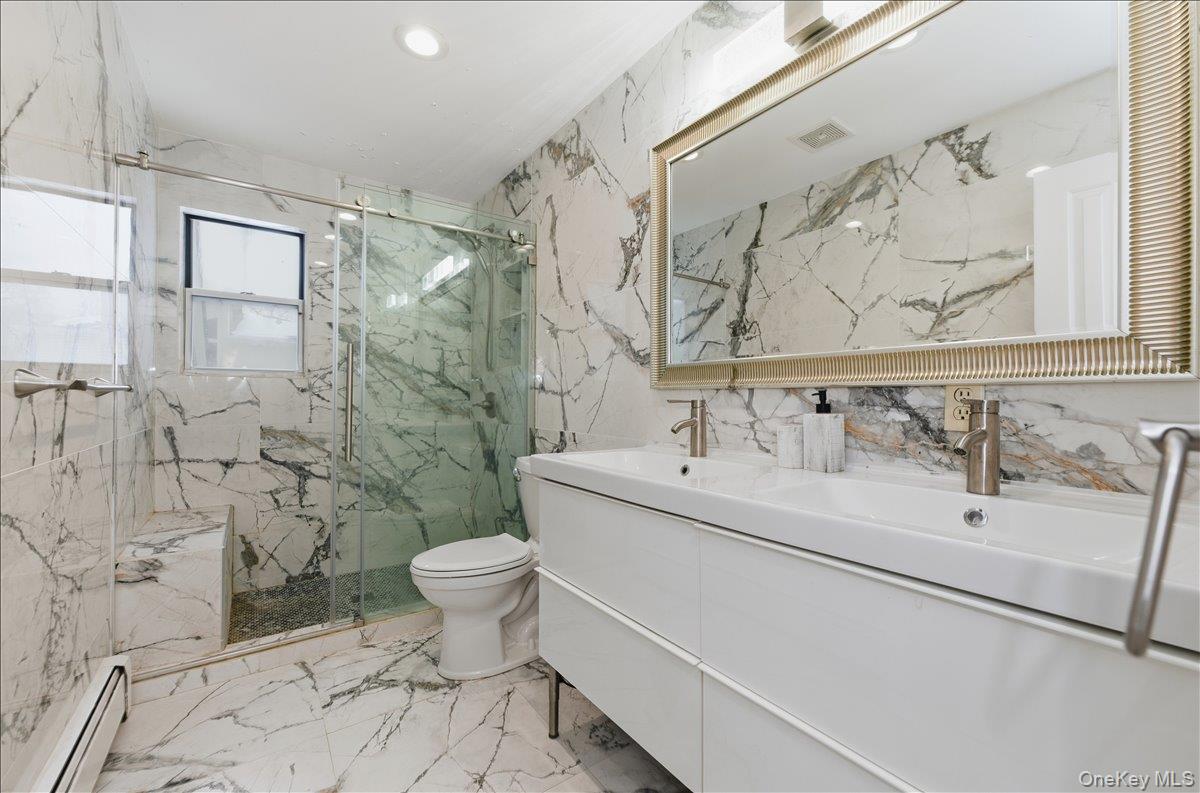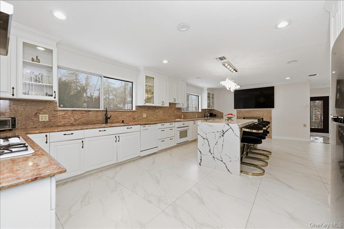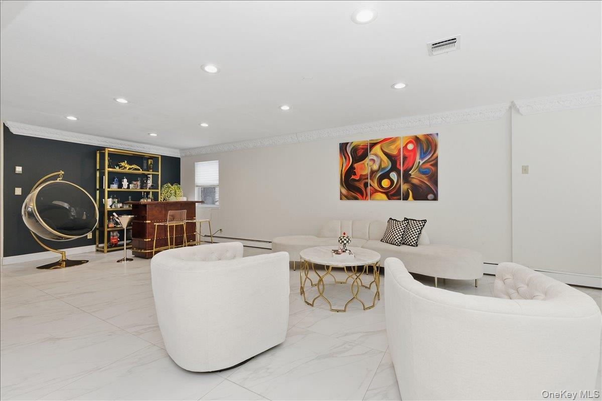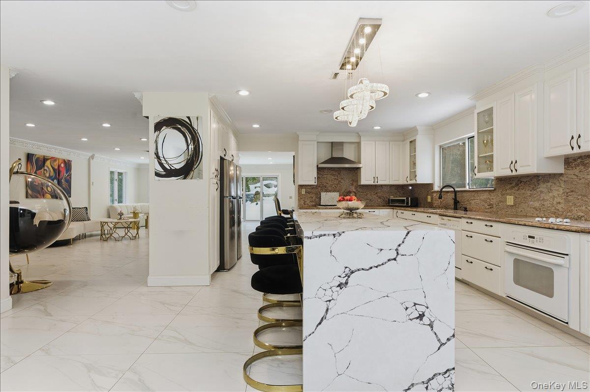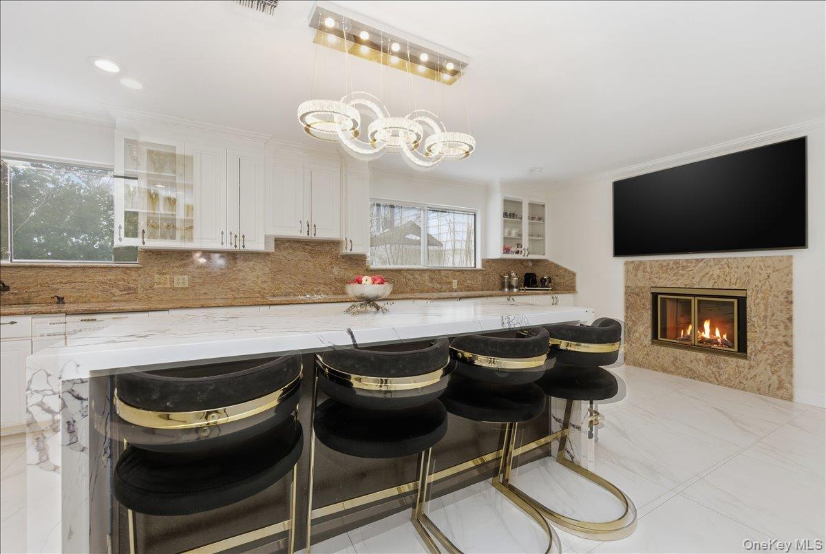 Welcome Home!!! A circular driveway welcomes you you to this beautifully renovated sunlit colonial. A gracious foyer opens up to a large spacious open floor plan featuring an oversized living room, dining room, family room and eat in kitchen with marble center island and working fireplace, powder room completes the main level. Upstairs boasts a private primary suite with en-suite bathroom and large closets, 2 additional bedrooms and a full bath & Upstairs Den/Family Room completes the 2nd level. This fabulous home is surrounded by floor to ceiling windows and glass doors leading out to the private backyard with patio and waterfall. Perfect for gatherings and entertainment. Located in the Prestigious Village Of Great Neck With Access to Parks, Parkwood Pool Tennis & Sports Complex, Close to all shopping, Transportation, Worship. A MUST SEE!!!!