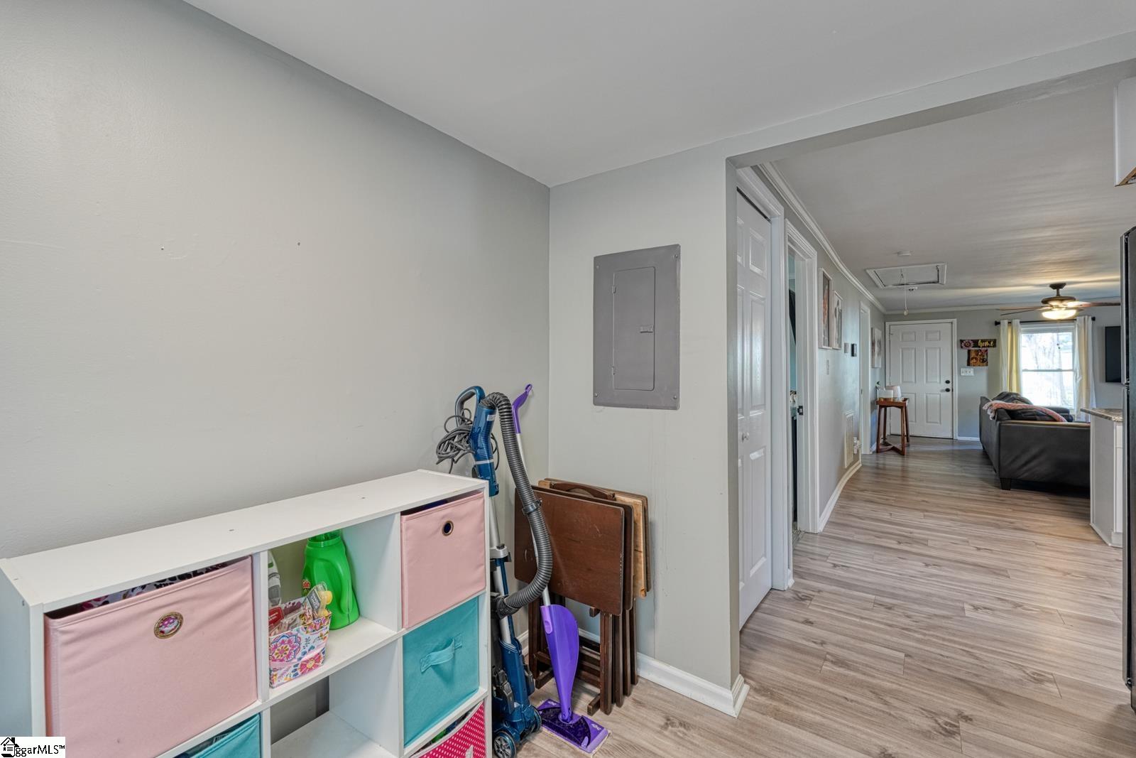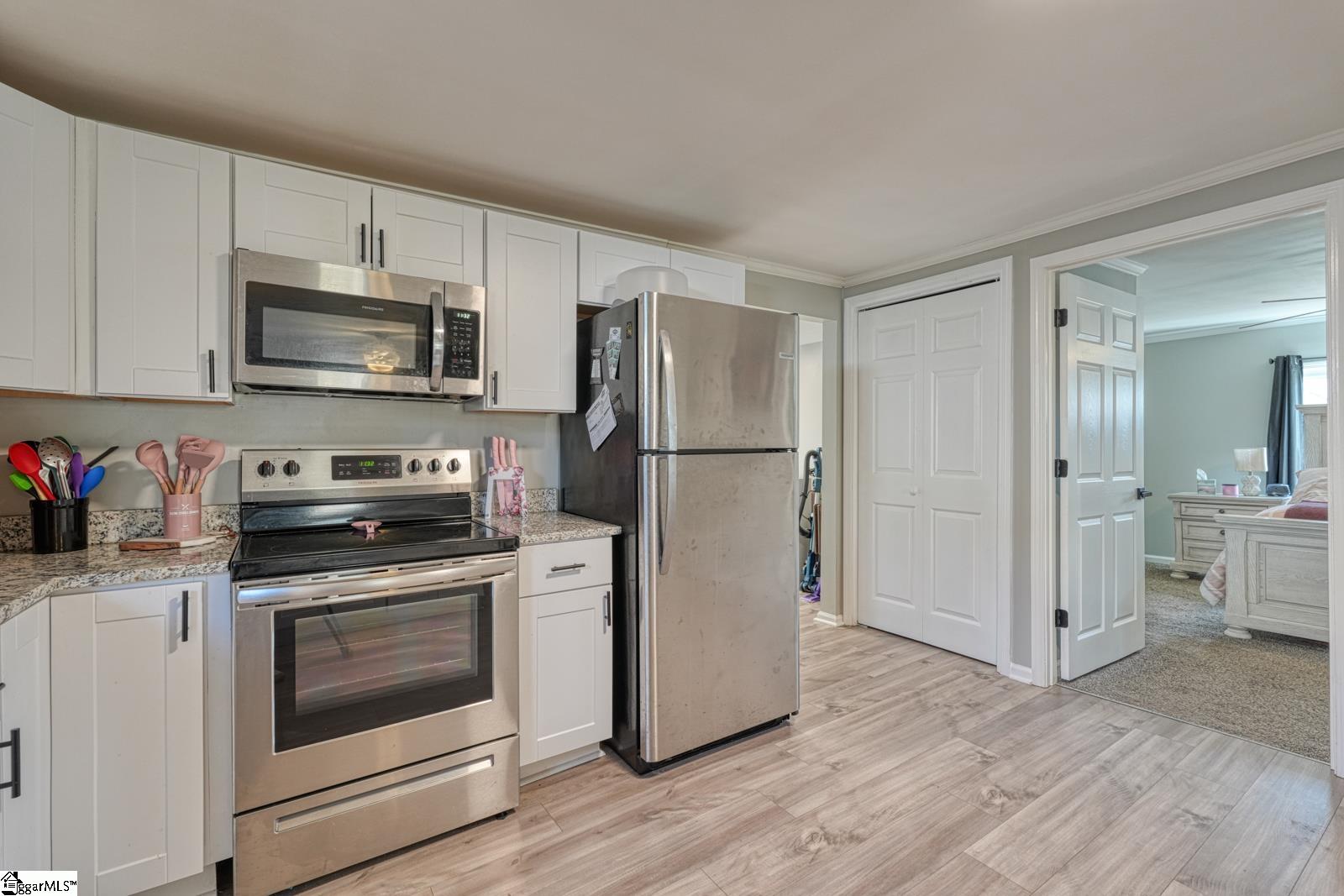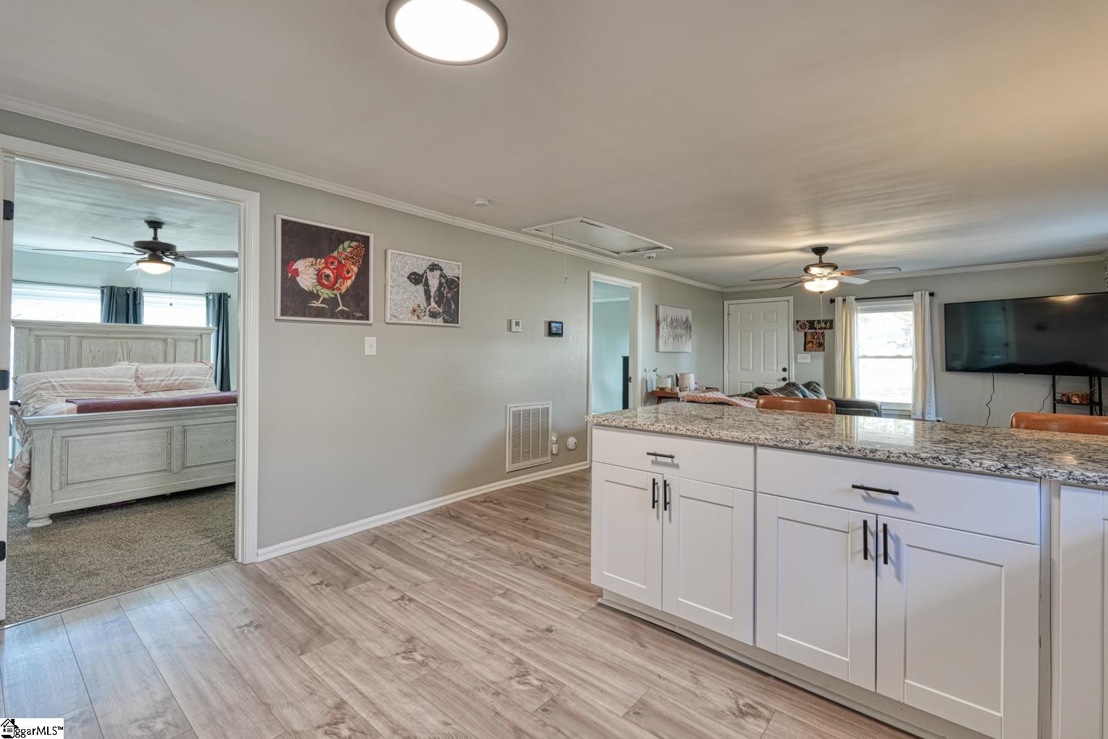 Welcome home to this delightful 2 bedroom/2 bath bungalow perfectly positioned just minutes from downtown Easley, the Doodle Trail, and The Silos giving you easy access to shopping, dining, and recreation while enjoying the comfort of a residential setting. A generously sized front porch welcomes you in and offers the perfect spot for morning coffee, rocking chairs, or relaxing evenings with friends and neighbors. Step inside to an inviting open-concept layout where the living, dining, and kitchen areas flow seamlessly together creating a warm and functional space ideal for both everyday living and entertaining. The kitchen is designed with both the home cook and host in mind, featuring a spacious bar for gathering, beautiful granite countertops, crisp white cabinetry, and stainless steel appliances. Whether preparing weeknight meals or hosting game day get-togethers, this space is both stylish and practical. Both bedrooms are well-proportioned, and the two full baths add convenience and flexibility for guests or family. Step outside to a large back deck overlooking the backyard perfect for gardening, grilling, or outdoor dining. There is also a detached outbuilding with electricity, providing excellent storage space or the opportunity to create your dream workshop, craft studio, home gym, or hobby room. This cozy yet functional home combines charm, convenience, and versatility all in a prime Easley location. Don’t miss the opportunity to make it yours!