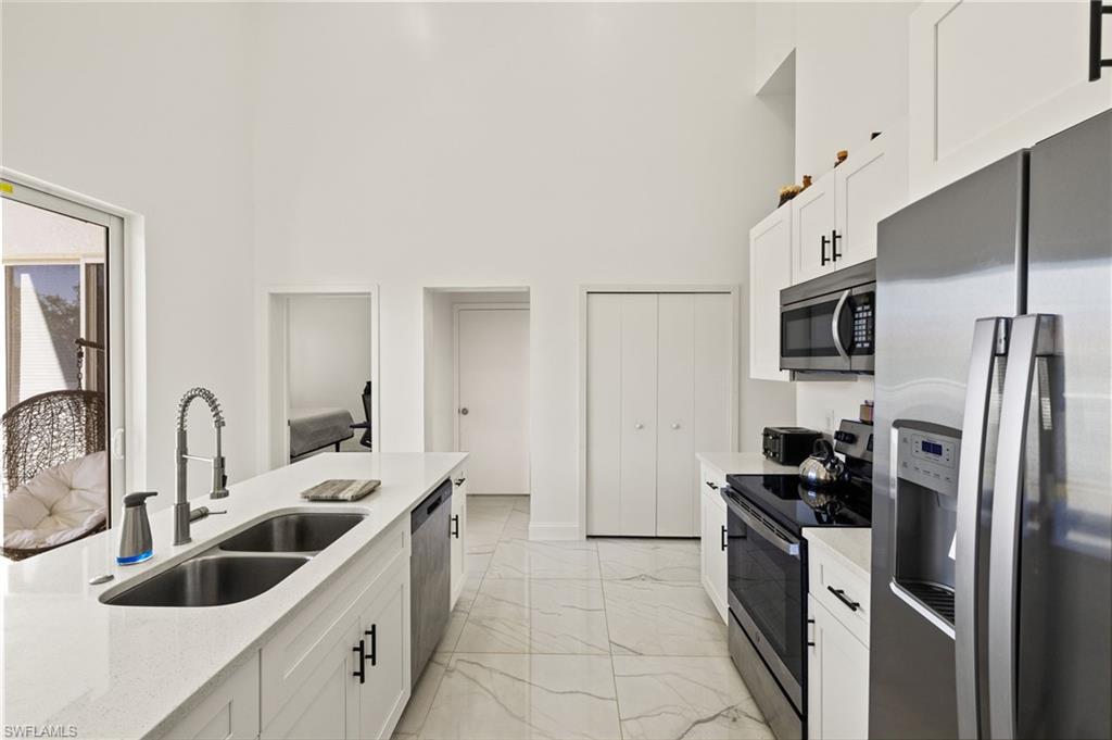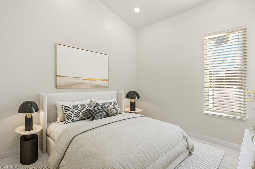Newly constructed, modern, one story, single-family home, 3 bedrooms + den, 2 bathrooms, 1, 616sqft air conditioned living (2, 043 sq ft total), ΒΌ acre with a 2-car garage and larger concrete front and back lanais. Concrete home, designed for hot climates, with durable, energy-efficient features and no attic to trap heat. Special features: Built with the future in mind, no attic home was designed to stay cooler and reduce maintenance, especially important in hot Florida climates. Homes without an attic means fewer thermal barriers between the roof and the living space, high ceilings allowing hot air to rise above the living zone, eliminating unused or cluttered storage space, encouraging efficient design, less space to insulate and cool, so your air conditioning system works less, energy bills are usually lower because of reduced heat gain. Open floor plan offers main bedroom ensuite with a large shower and double quartz vanity, a 13ftx5 ft walk in closet. There are 2 bedrooms separated by a Jack-and-Jill bath and an office. Kitchen has all SS appliances as well as food disposal and a 9Lx3W ft quartz top island and a walk in pantry. The entire home has vaulted, high ceilings, recessed lights, 30x30 ceramic tiles. The sloped roof is more compatible with rooftop solar panels. Fully Fenced home. Double lock encasement, tinted, storm proof windows (not double hung) allow plenty of light throughout the day Home has been fully fenced, and it has a newer Refrigerator/ Freezer, Washer/ Dryer, newly installed Ozone/ Sulfur / Water Conditioning System that can use either Sodium Chloride or Potassium Chloride as conditioning agents with settings for 72 hours post power outage. Located nearby parks, shopping, and easy access to SW Airport and State Road 82.