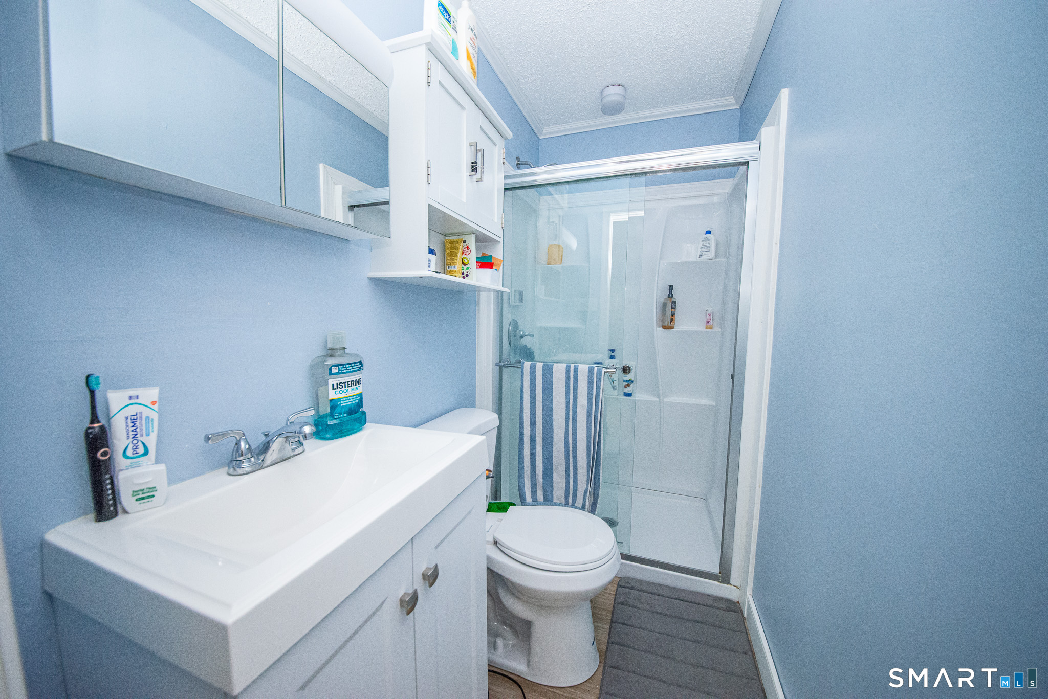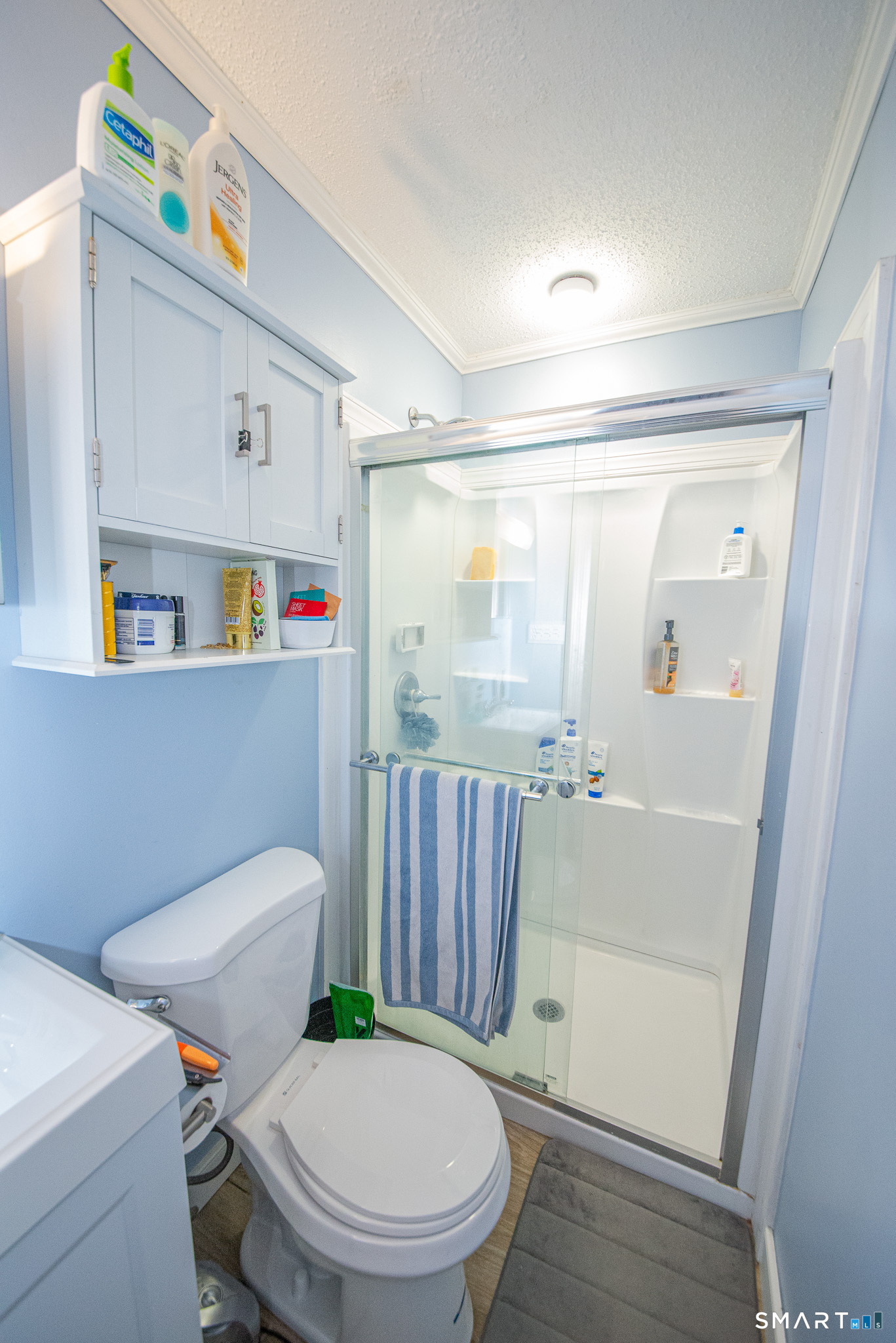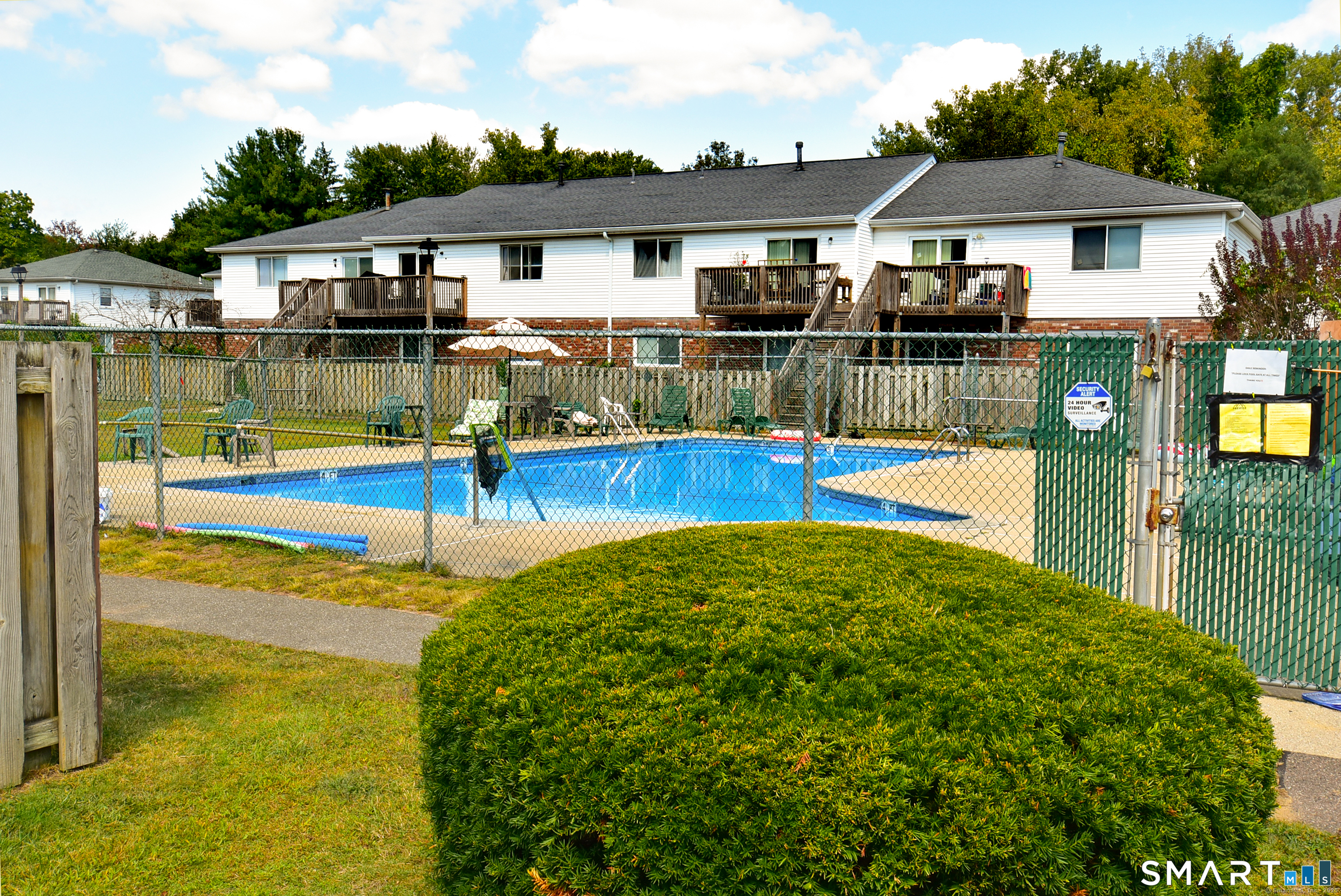Welcome to this desirable first-floor 2-bedroom, 2 full bath condo at Georgetown Condominiums. This home features an open floor plan with a fully applianced, eat-in kitchen with tiled flooring, seamlessly flowing into a spacious living room that can also accommodate a formal dining area. Vinyl flooring and a sliding door lead to a rarely available enclosed private backyard, perfect for relaxing or entertaining. Both bedrooms are generously sized. The primary bedroom offers a beautifully remodeled walk-in shower, tiled flooring, and double closets. The large second bedroom provides ample closet space and convenient access to the full hallway bath. Enjoy the convenience of in-unit laundry in a private basement, plus ample storage space. Additional highlights include thermopane windows, new central air conditioning, a new water heater, and a new furnace. Located in a highly desirable area with easy access to shopping, restaurants, I-91, Bradley International Airport, and Massachusetts. Ideal for first-time buyers or those looking to downsize. Schedule your private showing today!