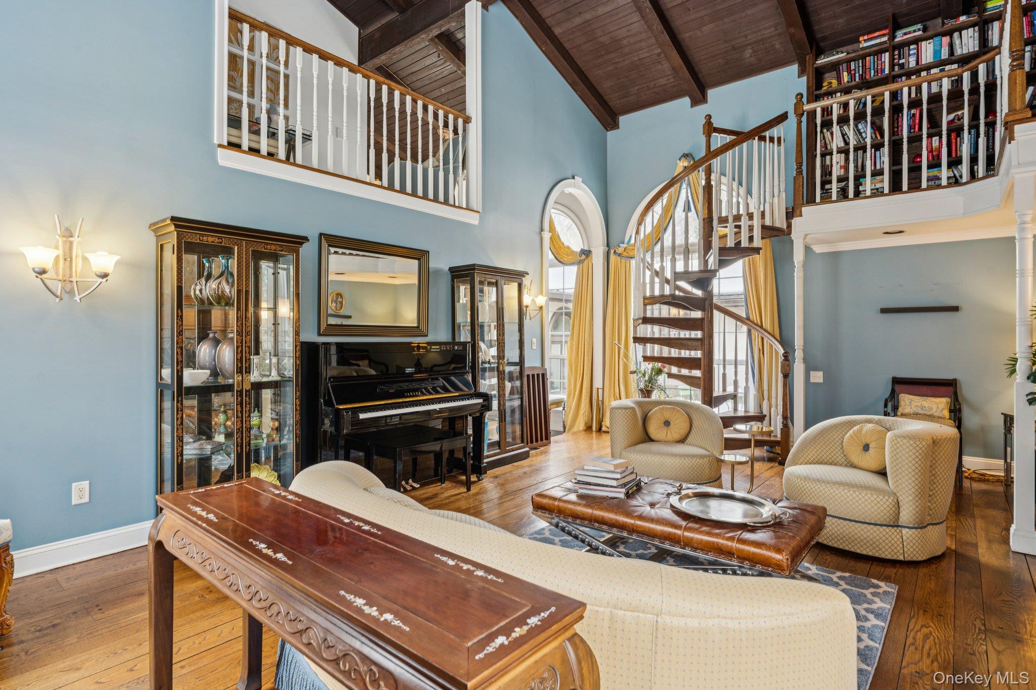 Set gracefully on 2 private, level acres in the prestigious Village of Nissequogue, this architecturally distinctive 4-bedroom, 4 full bath, 2 half bath residence is a remarkable expression of refined luxury and timeless sophistication. Designed for the buyer with truly discerning taste, the home showcases bespoke details, dramatic architectural elements, and exquisite custom updates throughout—seamlessly blending elegance with elevated comfort. A striking entry introduces the home’s signature curved archways, rich hardwood flooring, and an airy, light-filled floor plan ideal for both grand entertaining and intimate everyday living. At the heart of the residence is a breathtaking great room featuring soaring vaulted wood ceilings, a magnificent floor-to-ceiling stone fireplace, and a beautiful custom wood spiral staircase leading to an enchanting loft library—an extraordinary architectural centerpiece that exudes artistry and refinement. Updated windows throughout the home invite natural light while framing picturesque views of the surrounding grounds. The chef’s kitchen is thoughtfully appointed with high-end stainless steel appliances, double ovens, custom cabinetry, and a dramatic wall of picture windows overlooking the lush property. Flowing seamlessly from the kitchen, an elegant den with a gas fireplace and wet bar provides a refined and inviting space for sophisticated gatherings and relaxed entertaining. A truly exceptional highlight of the home is the spectacular solarium—an extraordinary space designed for year-round entertaining. Enclosed in walls of glass and bathed in natural light, this stunning retreat features a spa pool and radiant heated floors, creating a private resort-like atmosphere in every season. Whether hosting intimate evenings or lively gatherings, this space offers an unparalleled indoor-outdoor living experience. The primary bedroom suite provides a serene and luxurious retreat with generous proportions and a beautifully appointed bath. Three additional bedrooms are equally well-designed, complemented by four full baths and two powder rooms featuring elevated finishes. A full finished basement with outside entry and guest quarters offers exceptional flexibility for extended guests, recreation, or private workspace. Outdoors, the estate-like setting offers total privacy, paver patios, mature landscaping, and a stunning in-ground pool for resort-style living. Additional premium amenities include gas heat, a full-house Generac generator, whole-house water filtration system, updated windows, and a two-car garage—plus much more. An extraordinary offering defined by architectural distinction, luxurious detail, and uncompromising quality, this exceptional residence has been thoughtfully curated to provide a lifestyle of elevated comfort, timeless sophistication, and refined luxury at every turn.