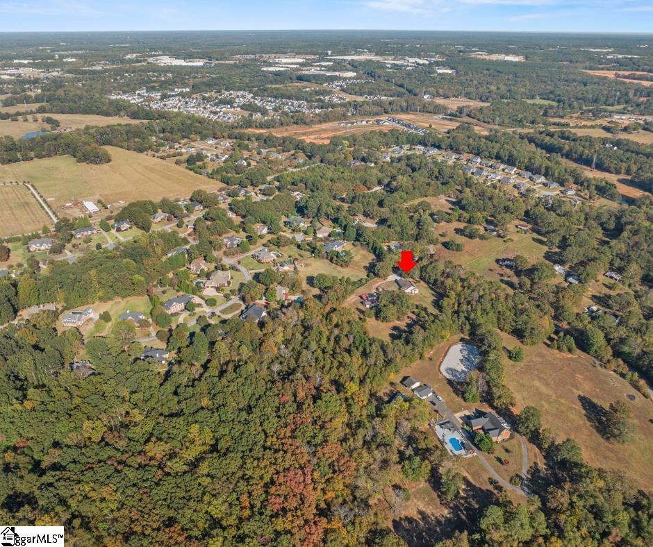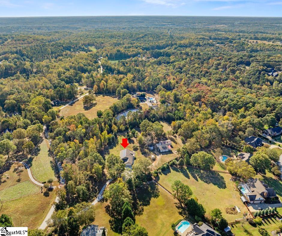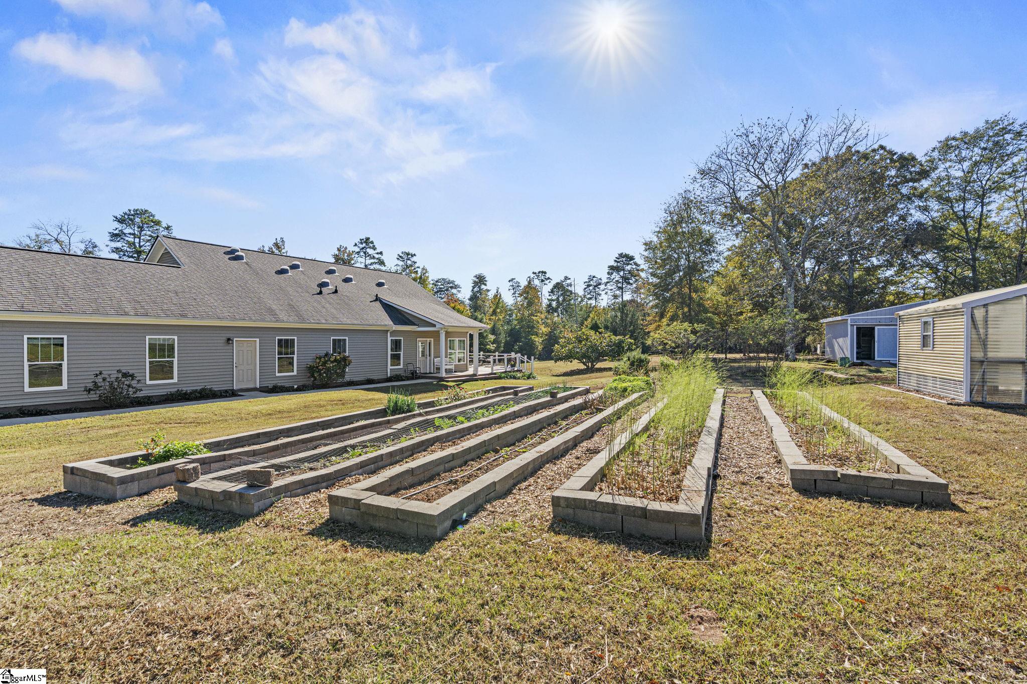 Built in 2017, this custom energy-efficient Net Zero home offers 2, 262 square feet of exceptional quality and long-term performance on 5 gently rolling, unrestricted acres just minutes from schools, medical care, shopping, dining, and convenient access to I-385 and the Fairview Road corridor. Combining high-performance construction with truly usable land and substantial infrastructure, this property delivers efficiency, flexibility, and low operating costs rarely found in one offering. Designed for sustainability, the home features owned solar shingles, encapsulated crawlspace, tankless water heater, enhanced insulation, LED lighting, double-pane windows, custom window blinds throughout, and Energy Star appliances. The single-level layout showcases 10-foot ceilings, hardwood floors, a raised tray ceiling in the living room, and a gas log fireplace. The gourmet kitchen includes a granite island with seating, mixer lift, pull-out shelving, under-cabinet lighting, stainless appliances, and a walk-in pantry. Large windows frame peaceful backyard views and frequent wildlife, creating a true private retreat. Thoughtfully designed for long-term livability, the home offers wide hallways, level entry from the attached two-car garage, and three bedrooms — each with a walk-in closet. The primary suite features a walk-in shower, separate soaking tub, and custom walk-in closet. Two flexible bedrooms feature Murphy beds, and a private office includes custom cabinetry. Outdoor infrastructure sets this property apart: Trex decks, 45’x25’ metal shop with compressed air system, 30’x25’ block workshop with air compressor and RV parking, two-bay carport, greenhouse, garden shed, raised beds with water catchment irrigation, and open acreage suitable for hobby farm, or home-based business use. No HOA. A rare combination of sustainability, privacy, usable land, and convenience in one estate property.
