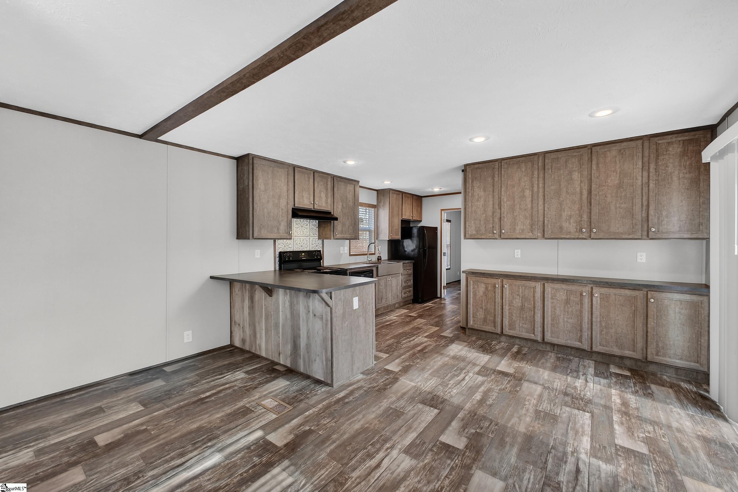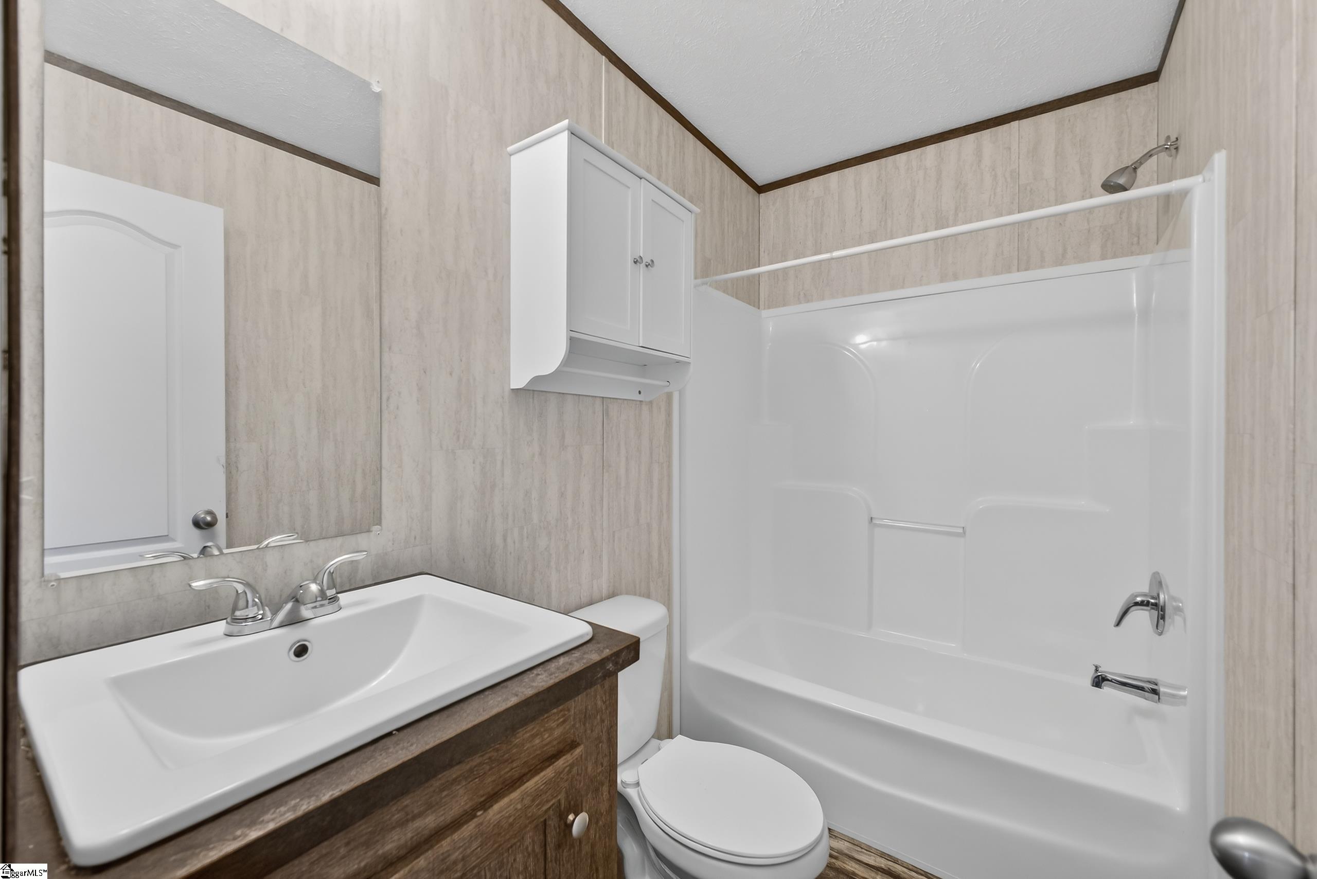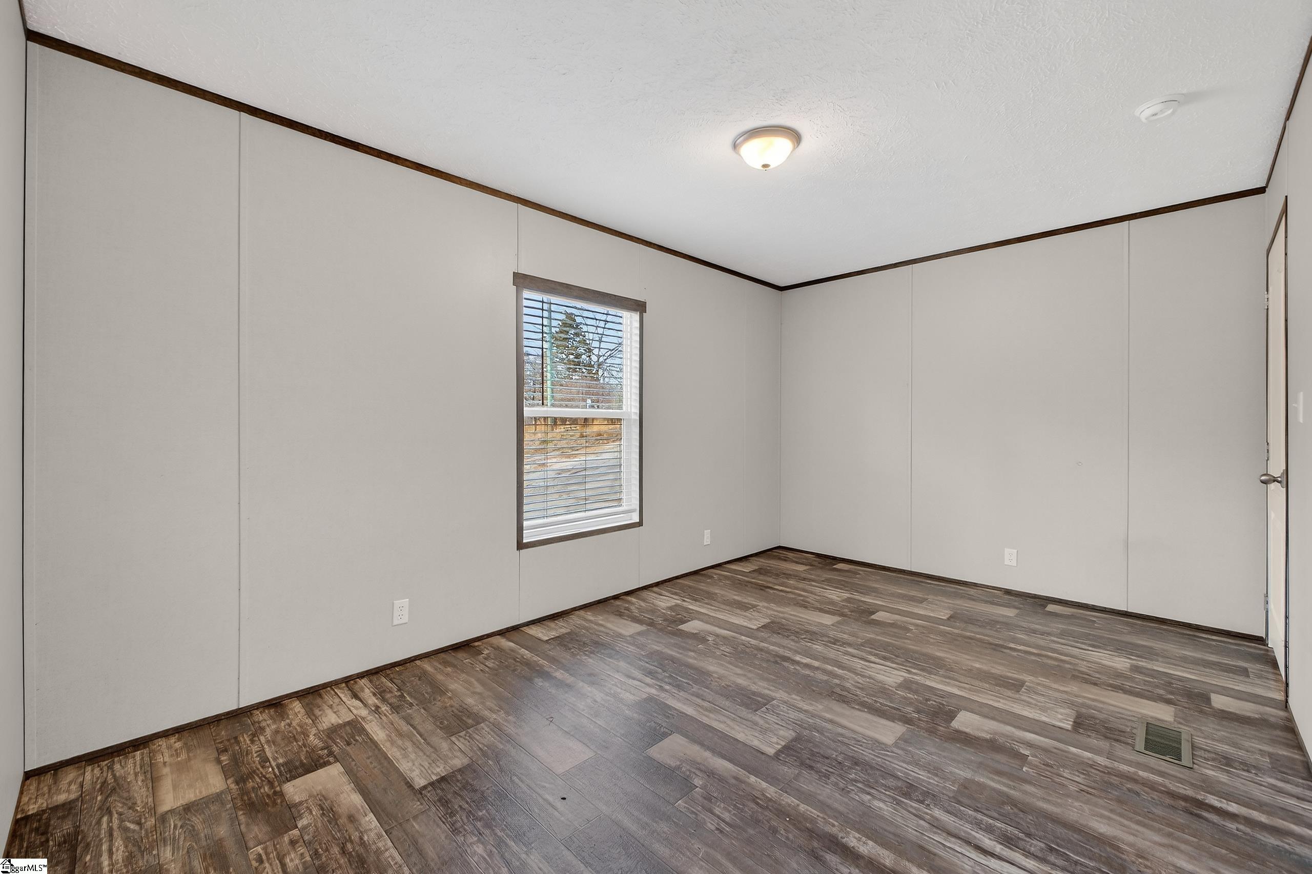 Modern finishes, built-in bookcases, and a private wooded setting along Georges Creek — with no HOA — set this 2021 Clayton “Anniversary 76” (16x76) home apart from the ordinary. Situated on 0. 51 acres, this 3-bedroom, 2 full bath home offers an open-concept layout with neutral cool tones and durable wood-look flooring throughout. The spacious living area features decorative ceiling beams and custom built-in shelving, creating both character and functional storage. The kitchen is designed for everyday living with abundant cabinetry, electric range with vent hood, stainless apron-front sink, and a large island overlooking the main living space. Natural light enhances the home’s modern yet comfortable feel. The primary suite is privately positioned on one side of the home and includes a dual vanity, soaking garden tub, separate shower, and walk-in closet. Two additional bedrooms and a full bath are located on the opposite side for added privacy. A walk-in laundry room with washer and dryer provides added convenience. Enjoy both front and back decks overlooking the wooded, sloping lot with seasonal views of Georges Creek. A separate storage building conveys with the property. Custom LeafFilter gutters installed to help direct water flow from the house and prevent seasonal leaf buildup. Also comes with a transferable warranty. Conveniently located just 5 minutes to Hwy 123, 10 minutes to Hwy 153, and approximately 20 minutes to Downtown Greenville, this property offers accessibility while maintaining a peaceful, tucked-away setting — all without restrictive HOA rules. Ideal for homeowners seeking affordable modern living or investors looking for a strong rental opportunity.
