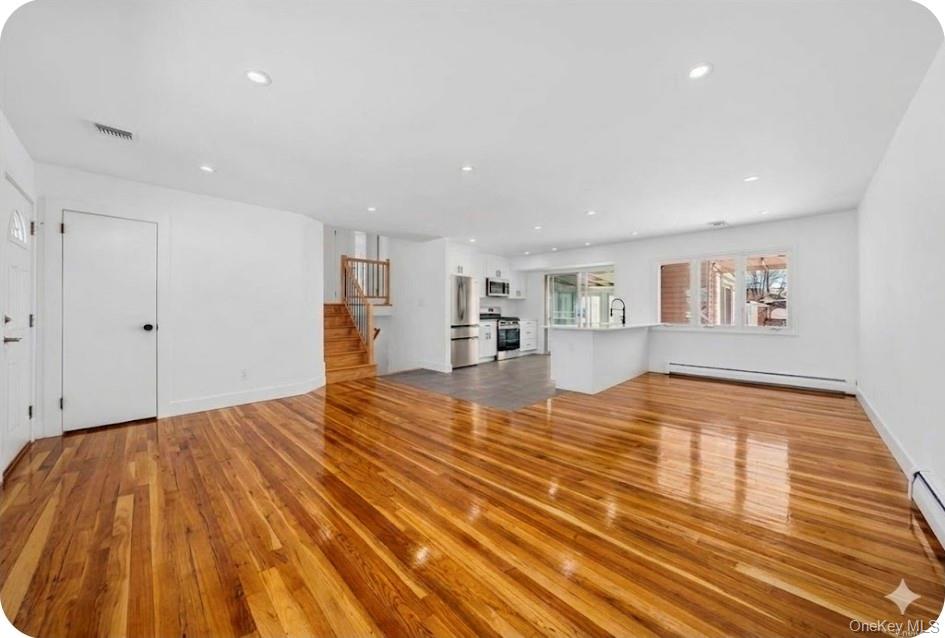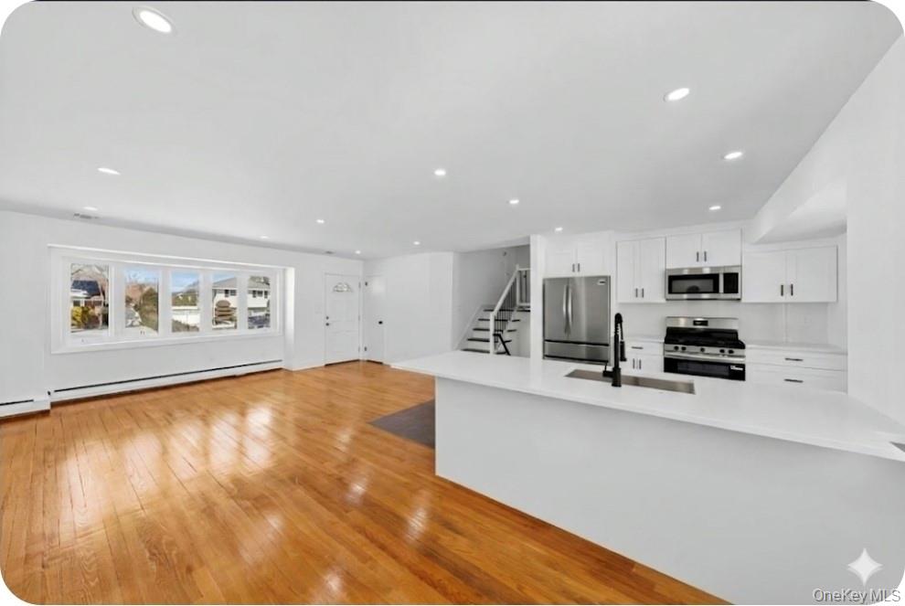 Fall in love with this beautifully renovated 4-bedroom, 2-bath home in desirable Commack! Perfectly situated on a corner lot, this move-in ready gem features wood floors throughout, a bright eat-in kitchen with stainless steel appliances, and fully updated bathrooms with modern finishes. The lower level offers extra living space with a wet bar, ideal for extended family. The home also boasts a two-car garage and generous outdoor space. Stylish, functional, and full of charm — this home is ready for its next owner to fall in love.