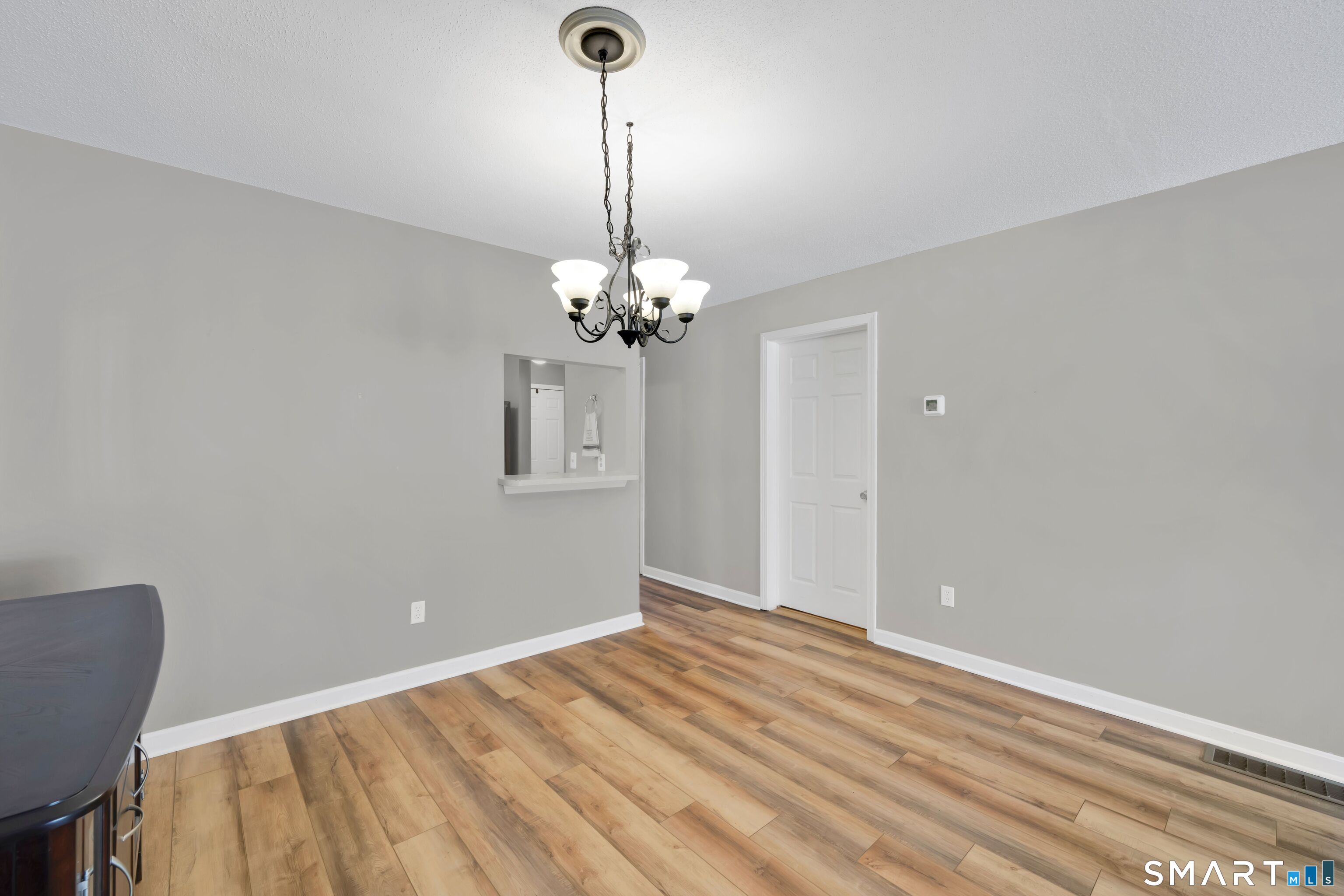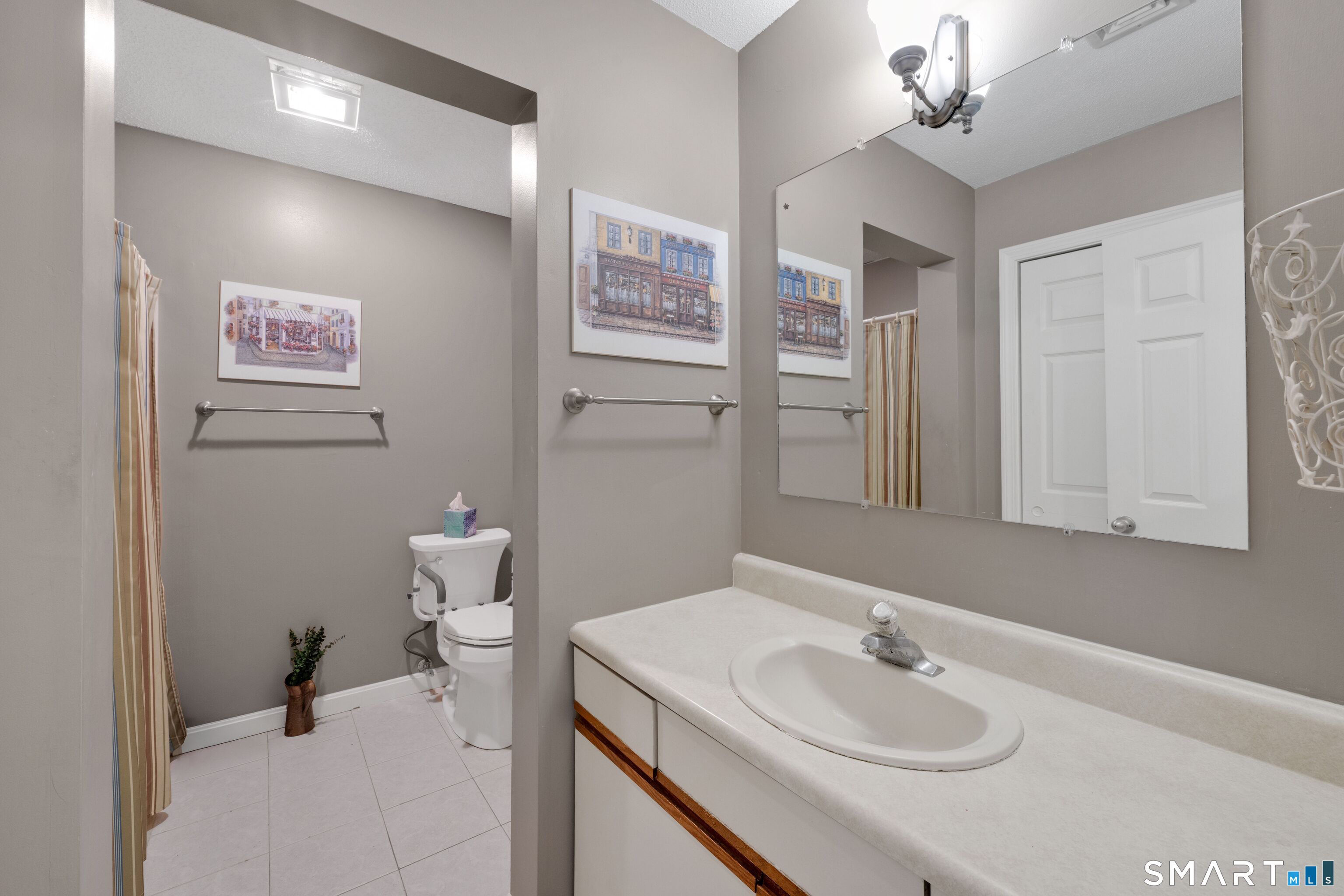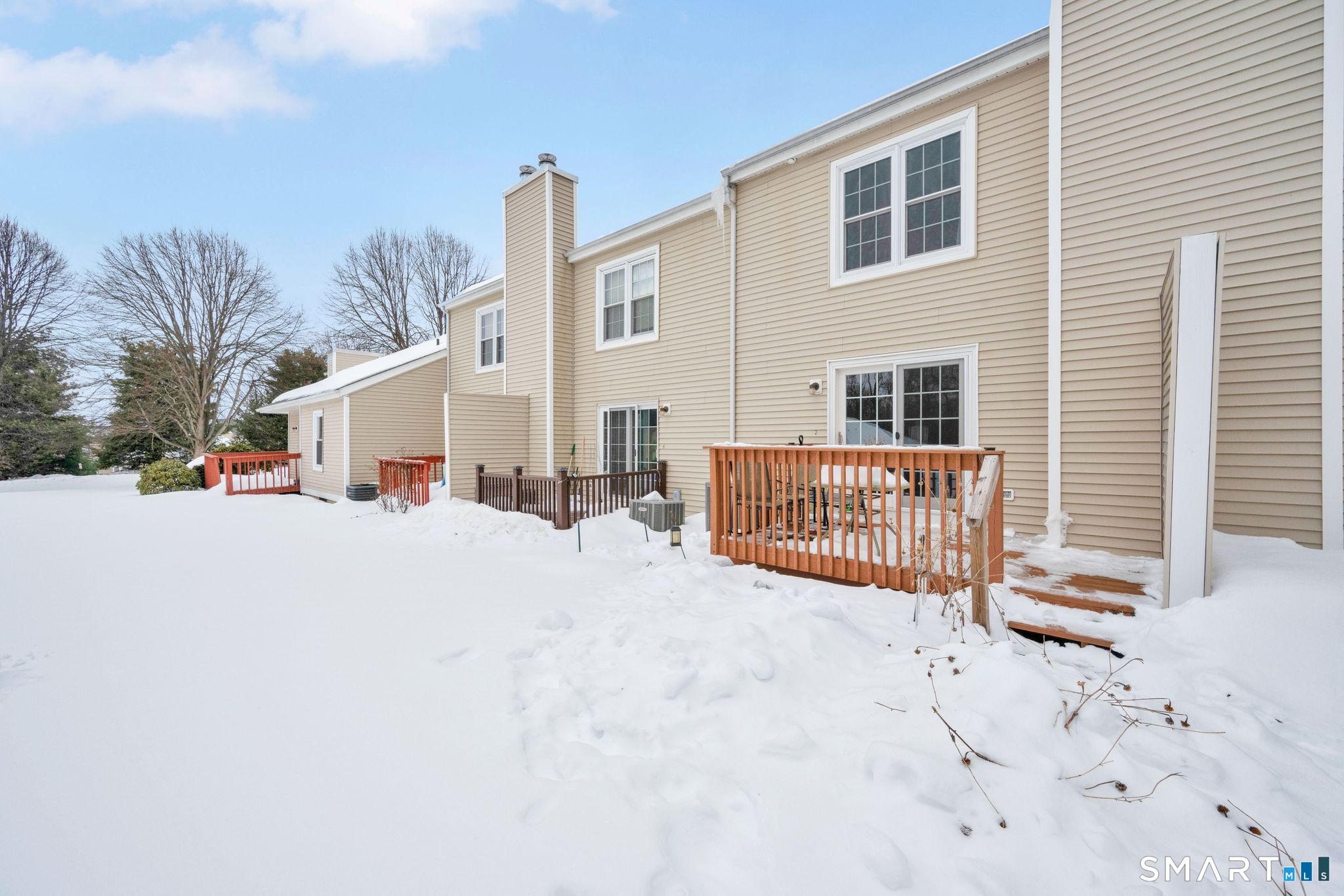 Welcome to this charming two-bedroom townhouse tucked away at The Hamlet. From the moment you step inside, you'll appreciate the spacious, modern floor plan that makes this condominium truly special. The kitchen features stainless steel appliances, and opens conveniently to the dining area. The bright, airy living room offers a cozy wood-burning fireplace and sliding door that opens to a private deck, creating a seamless indoor-outdoor living experience. A half bath completes the first floor. Upstairs, you'll find a spacious primary bedroom, a second bedroom, and full bath with a convenient linen closet. Enjoy year-round comfort with central air conditioning, natural gas heating, and energy-efficient thermal pane windows. The lower level offers flexible space for a potential recreation room, home gym, or storage. The peaceful deck setting is perfect for relaxing or enjoying your morning coffee or favorite book. Conveniently located near major commuting routes, Bradley International Airport, restaurants, shopping, and grocery stores. Come see why this one feels like home.