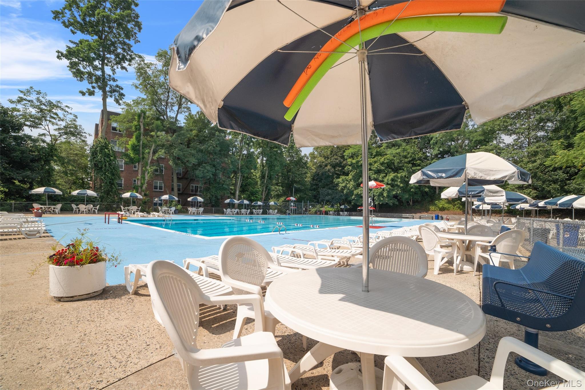Welcome to 5 Sadore Lane, Unit 3H – Your Perfect Yonkers Retreat! Step into this beautifully maintained home where thoughtful design meets everyday comfort. From the moment you enter, you'll appreciate the generous proportions and inviting atmosphere that make this residence truly special. The expansive living room is a showstopper—bathed in natural light with soaring ceilings, soft neutral tones, and plush carpeting that creates an instantly welcoming environment. The open flow into the adjacent dining area enhances the sense of space, perfect for hosting gatherings or enjoying quiet evenings at home. Oversized windows frame peaceful views and flood the interior with sunlight throughout the day. The kitchen delivers both style and substance, now elevated with a brand new quartz countertop that adds a sleek, modern touch to the space. Crisp white cabinetry, ample storage, and full-size appliances—including gas cooking—make it as functional as it is beautiful. Its smart layout connects seamlessly to the dining area, making meal preparation and entertaining effortless. The bedroom is spacious and serene, offering comfort and tranquility at the end of each day. The stunning bathroom is a true highlight, featuring designer tile work, contemporary matte black fixtures, an LED-lit vanity, and a modern smart toilet with a built-in bidet, bringing spa-like luxury and elevated convenience to your daily routine. Practical details include excellent closet storage, modern lighting throughout, and convenient access to on-site laundry facilities. The building's well-kept grounds feature mature landscaping and outdoor recreational space, adding to the community's charm. Residents enjoy access to a beautifully maintained, resort-style outdoor pool with an expansive sun deck—an inviting setting for relaxing summer afternoons or unwinding in a peaceful, tree-lined environment. An added convenience with one assigned parking spot, providing secure and effortless parking year-round. Location couldn't be better—enjoy easy access to Metro-North, major parkways, shopping, dining, and parks. This is the rare find that checks all the boxes: space, style, convenience, and value. This is more than a home—it's your next chapter. Don't miss it.
