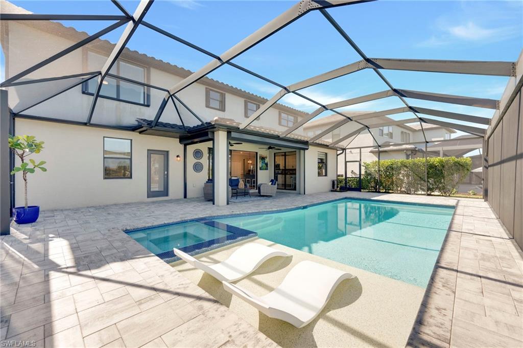 Set on a premium LAKEFRONT homesite just one block from The Place at Corkscrew amenities, this home offers a layout that gives you both togetherness and separation. The backyard becomes the center of everything, with a CUSTOM POOL, SPA, AND SUN SHELF inside a PANORAMIC LANAI ENCLOSURE, UPGRADED GREY PAVERS, covered seating, and MATURE CLUSIA HEDGING for privacy — all overlooking peaceful WATER VIEWS.