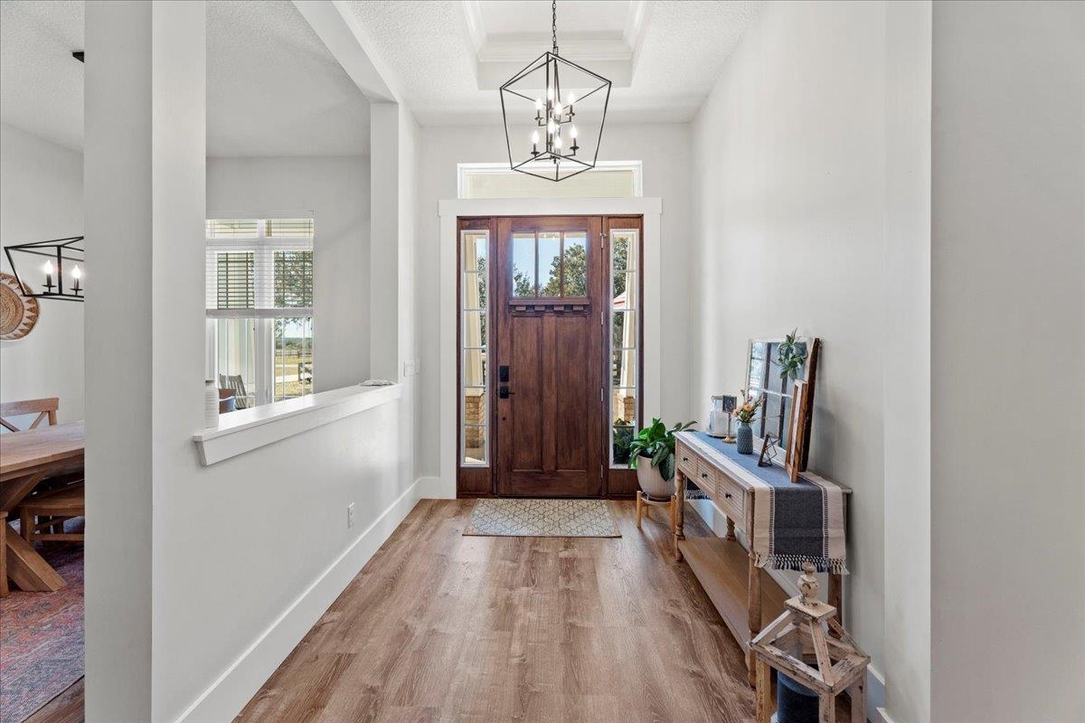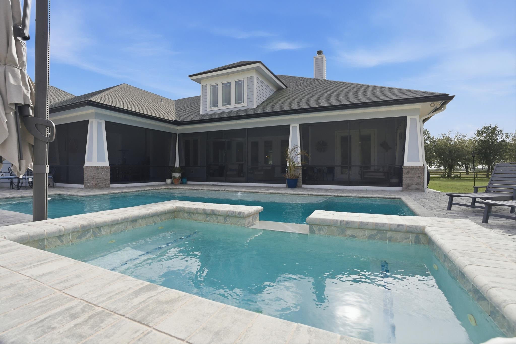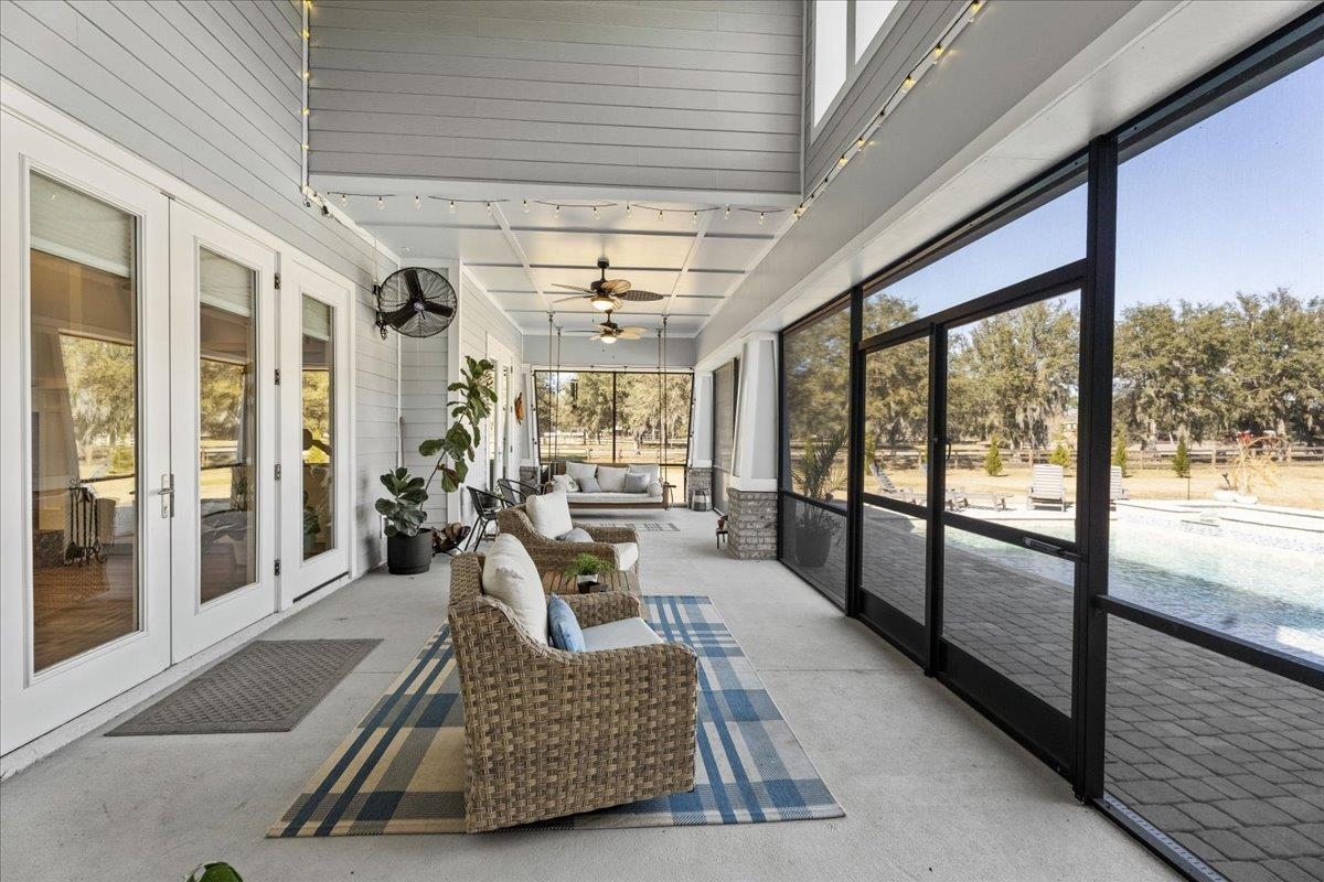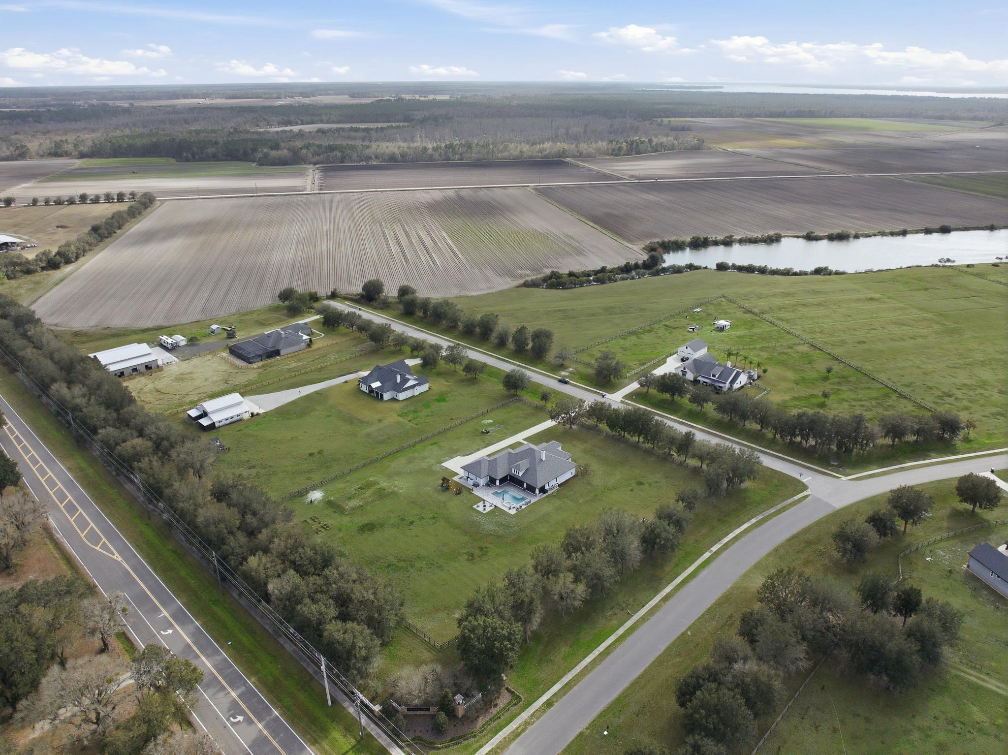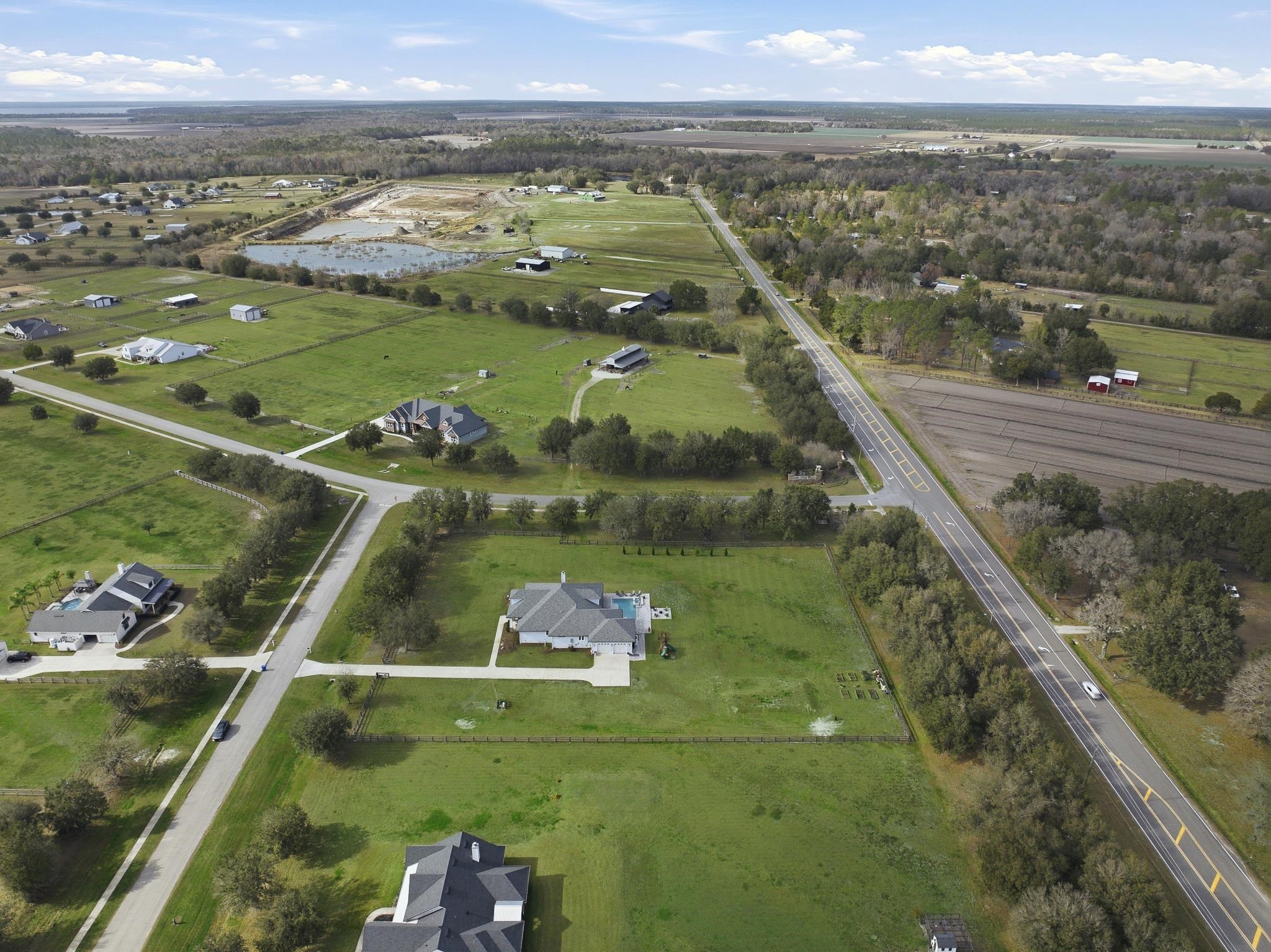 Experience refined country living in this luxury custom-built Modern Farmhouse with timeless Craftsman influences, gracefully positioned on just under three private acres in Bartram Farms. Designed with both elegance and comfort in mind, the residence showcases soaring ceilings, upgraded designer wood trim, custom cabinetry and premium luxury vinyl plank flooring throughout. At the heart of the home, the gourmet chef’s kitchen impresses with LG Studio high-end appliances, an expansive island with seating, an oversized single-basin sink, Quartz countertops, subway tile backsplash and a sunlit breakfast area complemented by bar seating, ideal for casual gatherings or morning coffee. Natural light pours into the open living spaces, accentuating the striking fireplace, offering both wood-burning and gas functionality, and creating a warm yet sophisticated focal point. A private flex space with double doors off the main living area is perfectly suited for a luxury home office, studio or library, while the formal dining room off the foyer sets the stage for elevated entertaining. The thoughtfully designed split floorplan ensures privacy, with two secondary bedrooms and baths set apart from the primary suite. The primary retreat offers direct lanai access, dual walk-in closets, double vanities and a beautifully tiled walk-in shower. Outdoors, the estate transforms into a resort-style sanctuary. The expansive screened lanai overlooks a stunning pavered patio featuring a sparkling pool, hot tub and fire pit lounge, crafted for unforgettable evenings and effortless entertaining. A separate dining area inside the lanai and gas line for a future outdoor kitchen is perfect for outdoor entertaining. Additional highlights include a fully wood-fenced perimeter with mechanical gate, a 2-car garage with high ceilings and extra storage and an oversized laundry suite with sink, custom cabinetry, abundant storage and natural light. Energy-efficient enhancements such as spray foam insulation and LED lighting complete this exceptional offering, where luxury, privacy and modern farmhouse charm meet in perfect balance. Bartram Farms is a dedicated equestrian community offering six miles of scenic riding trails. Barns, horses, and other livestock—including cows, goats, and chickens—are welcome. The area is also supported by several nearby farms and stables, providing added potential for expanded boarding and riding opportunities. Experience the space and seclusion of country living while still being only 20–30 minutes from the beaches, restaurants, and vibrant lifestyle of St. Augustine. If wide-open land and a quieter pace are what you’ve been missing, this is where you’ll find it.