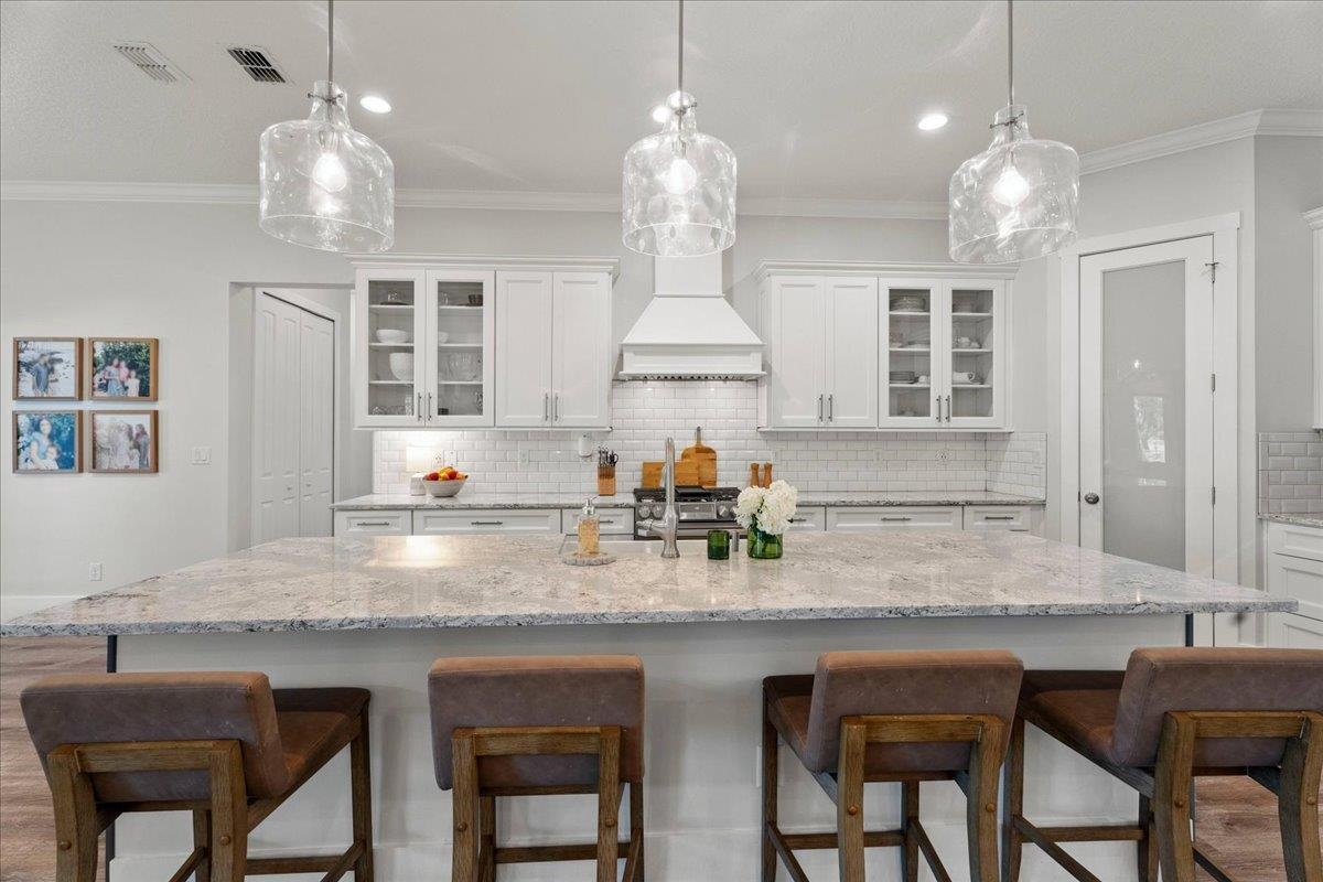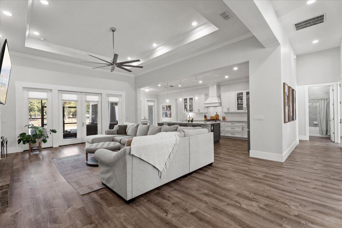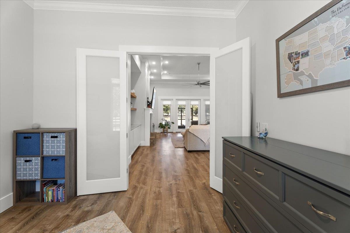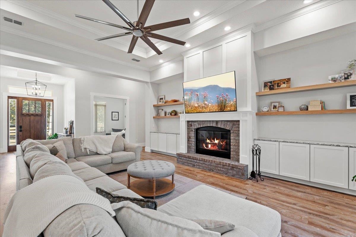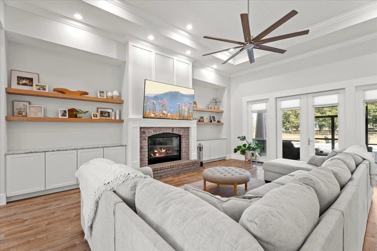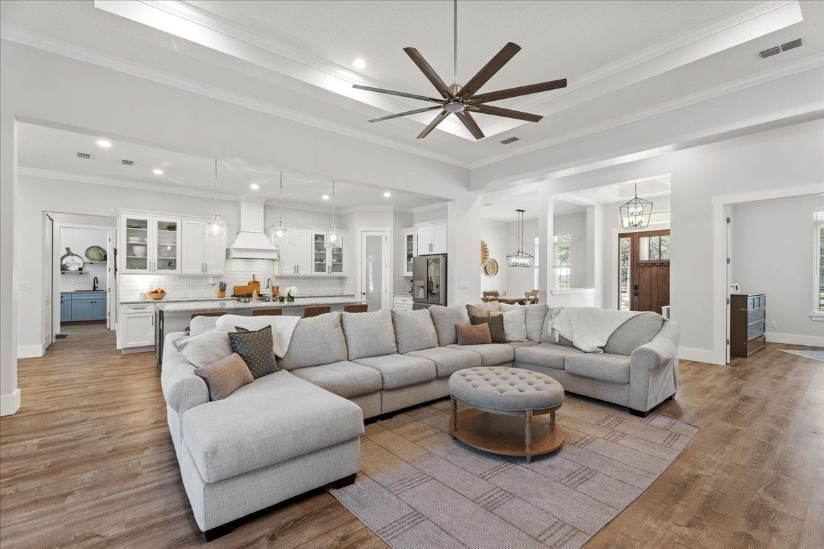 Experience refined country living in this luxury custom-built Modern Farmhouse with timeless Craftsman influences, gracefully positioned on just under three private acres in Bartram Farms. Designed with both elegance and comfort in mind, the residence showcases soaring ceilings, upgraded designer wood trim, custom cabinetry and premium luxury vinyl plank flooring throughout. At the heart of the home, the gourmet chef’s kitchen impresses with LG Studio high-end appliances, an expansive island with seating, an oversized single-basin sink, Quartz countertops, subway tile backsplash and a sunlit breakfast area complemented by bar seating, ideal for casual gatherings or morning coffee. Natural light pours into the open living spaces, accentuating the striking fireplace, offering both wood-burning and gas functionality, and creating a warm yet sophisticated focal point. A private flex space with double doors off the main living area is perfectly suited for a luxury home office, studio or library, while the formal dining room off the foyer sets the stage for elevated entertaining. The thoughtfully designed split floorplan ensures privacy, with two secondary bedrooms and baths set apart from the primary suite. The primary retreat offers direct lanai access, dual walk-in closets, double vanities and a beautifully tiled walk-in shower. Outdoors, the estate transforms into a resort-style sanctuary. The expansive screened lanai overlooks a stunning pavered patio featuring a sparkling pool, hot tub and fire pit lounge, crafted for unforgettable evenings and effortless entertaining. A separate dining area inside the lanai and gas line for a future outdoor kitchen is perfect for outdoor entertaining. Additional highlights include a fully wood-fenced perimeter with mechanical gate, a 2-car garage with high ceilings and extra storage and an oversized laundry suite with sink, custom cabinetry, abundant storage and natural light. Energy-efficient enhancements such as spray foam insulation and LED lighting complete this exceptional offering, where luxury, privacy and modern farmhouse charm meet in perfect balance. Bartram Farms is a dedicated equestrian community offering six miles of scenic riding trails. Barns, horses, and other livestock—including cows, goats, and chickens—are welcome. The area is also supported by several nearby farms and stables, providing added potential for expanded boarding and riding opportunities. Experience the space and seclusion of country living while still being only 20–30 minutes from the beaches, restaurants, and vibrant lifestyle of St. Augustine. If wide-open land and a quieter pace are what you’ve been missing, this is where you’ll find it.