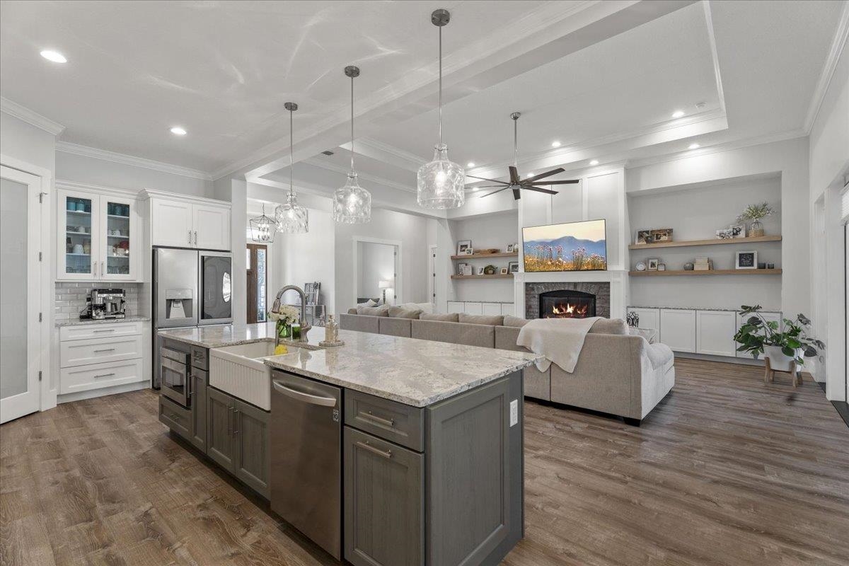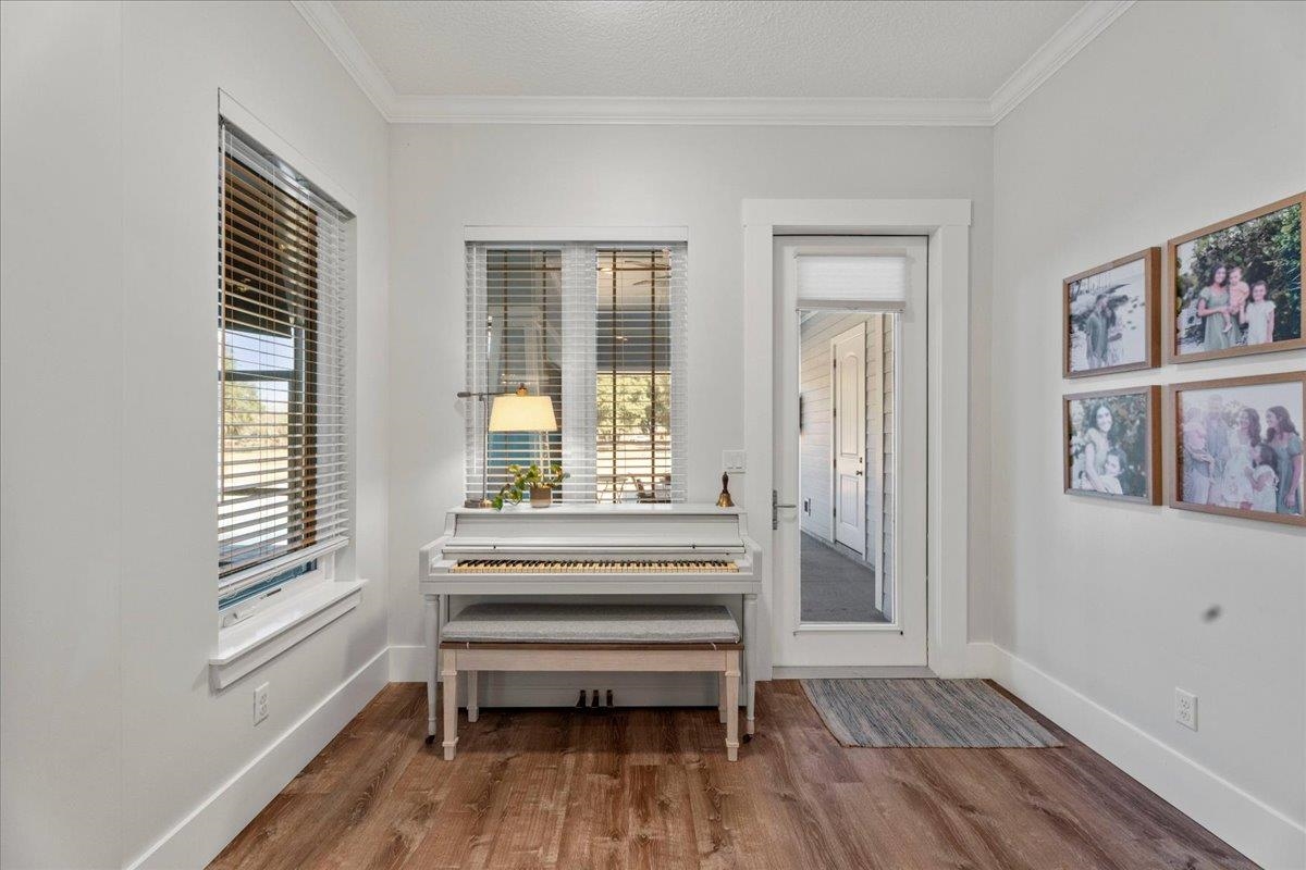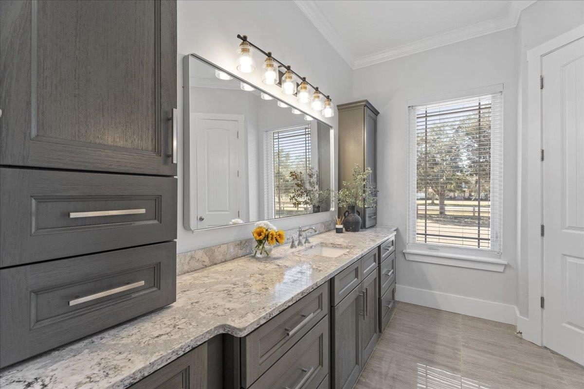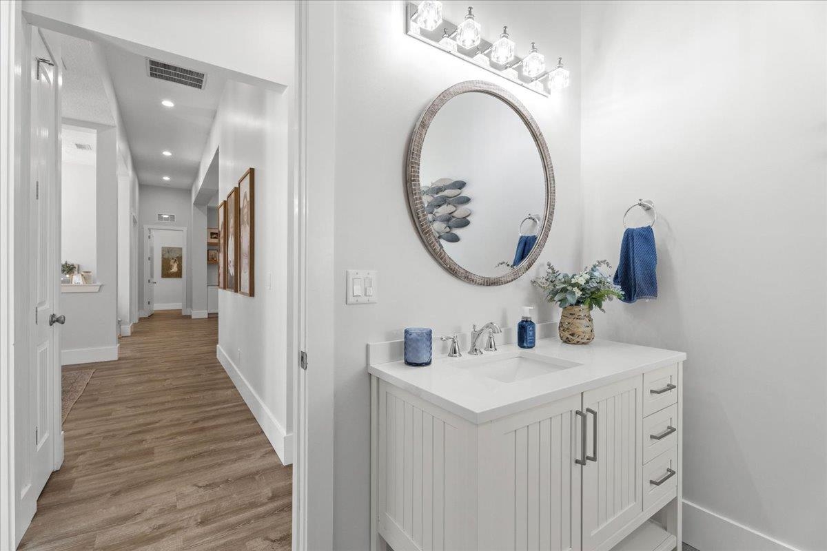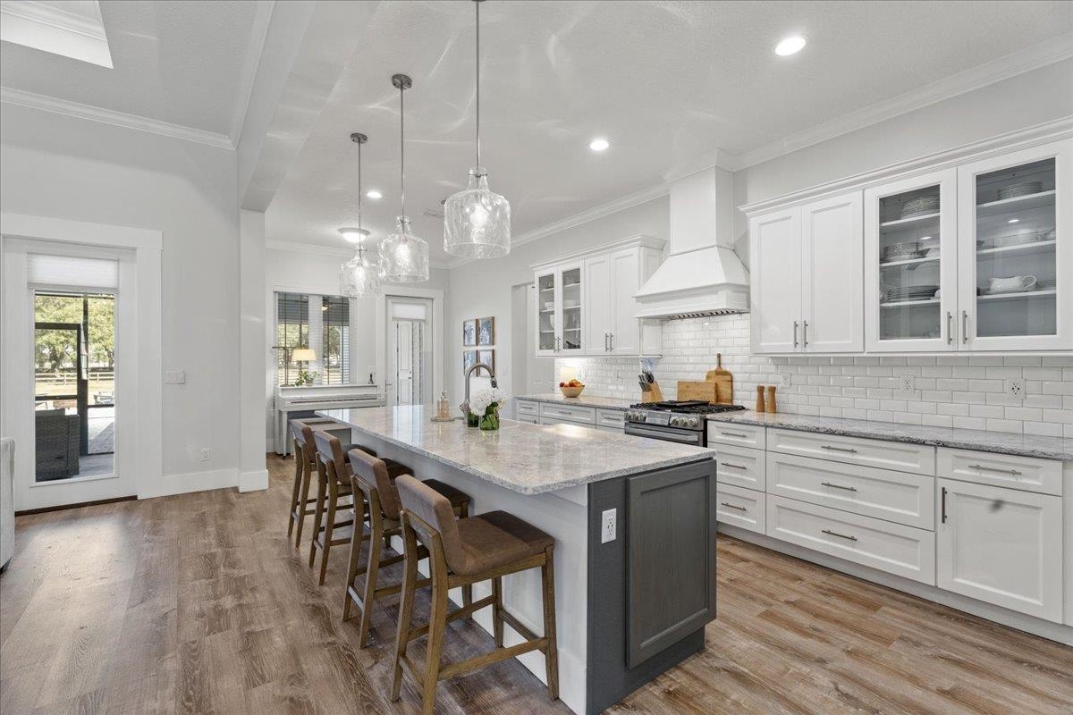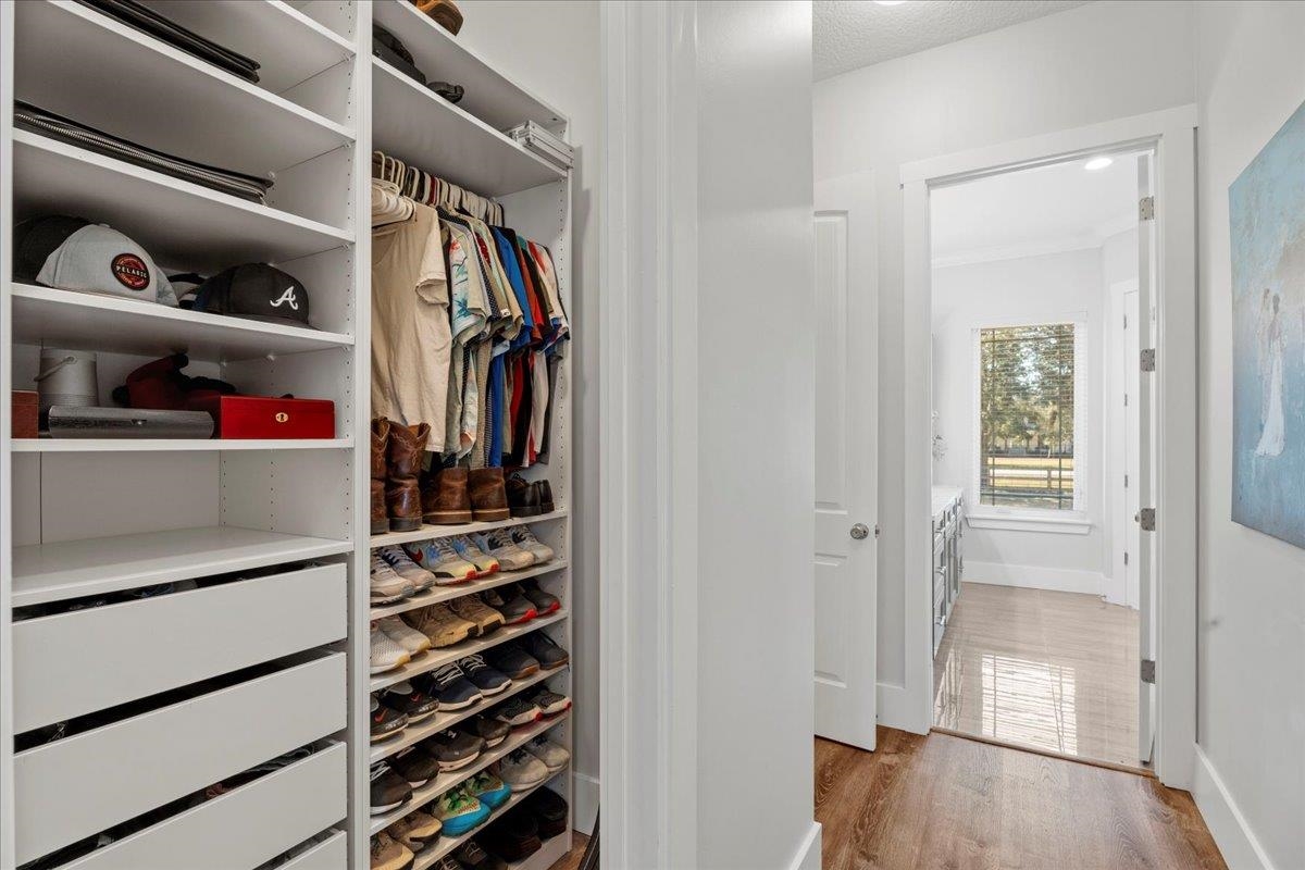 Experience refined country living in this luxury custom-built Modern Farmhouse with timeless Craftsman influences, gracefully positioned on just under three private acres in Bartram Farms. Designed with both elegance and comfort in mind, the residence showcases soaring ceilings, upgraded designer wood trim, custom cabinetry and premium luxury vinyl plank flooring throughout. At the heart of the home, the gourmet chef’s kitchen impresses with LG Studio high-end appliances, an expansive island with seating, an oversized single-basin sink, Quartz countertops, subway tile backsplash and a sunlit breakfast area complemented by bar seating, ideal for casual gatherings or morning coffee. Natural light pours into the open living spaces, accentuating the striking fireplace, offering both wood-burning and gas functionality, and creating a warm yet sophisticated focal point. A private flex space with double doors off the main living area is perfectly suited for a luxury home office, studio or library, while the formal dining room off the foyer sets the stage for elevated entertaining. The thoughtfully designed split floorplan ensures privacy, with two secondary bedrooms and baths set apart from the primary suite. The primary retreat offers direct lanai access, dual walk-in closets, double vanities and a beautifully tiled walk-in shower. Outdoors, the estate transforms into a resort-style sanctuary. The expansive screened lanai overlooks a stunning pavered patio featuring a sparkling pool, hot tub and fire pit lounge, crafted for unforgettable evenings and effortless entertaining. A separate dining area inside the lanai and gas line for a future outdoor kitchen is perfect for outdoor entertaining. Additional highlights include a fully wood-fenced perimeter with mechanical gate, a 2-car garage with high ceilings and extra storage and an oversized laundry suite with sink, custom cabinetry, abundant storage and natural light. Energy-efficient enhancements such as spray foam insulation and LED lighting complete this exceptional offering, where luxury, privacy and modern farmhouse charm meet in perfect balance. Bartram Farms is a dedicated equestrian community offering six miles of scenic riding trails. Barns, horses, and other livestock—including cows, goats, and chickens—are welcome. The area is also supported by several nearby farms and stables, providing added potential for expanded boarding and riding opportunities. Experience the space and seclusion of country living while still being only 20–30 minutes from the beaches, restaurants, and vibrant lifestyle of St. Augustine. If wide-open land and a quieter pace are what you’ve been missing, this is where you’ll find it.