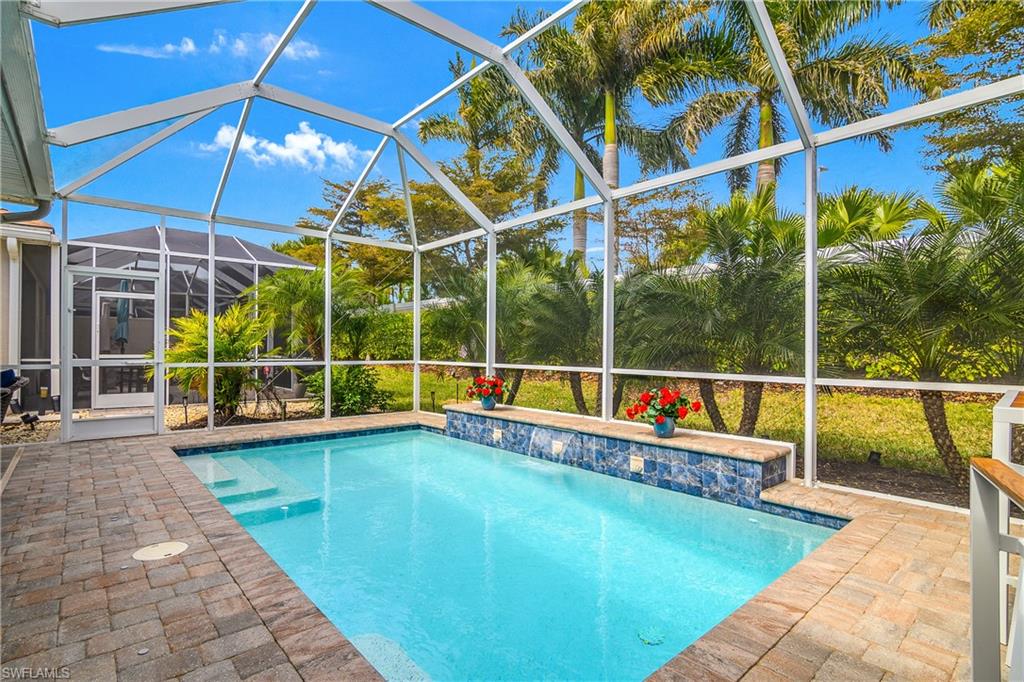 Interior Excellence: Step inside to a bright, open interior featuring **FRESH PAINT, **PLANTATION SHUTTERS(new 2025), and **beautiful LUXURY VINYL PLANK (LVP) (new 2025). The chef-inspired kitchen is a standout, boasting, a gas cooktop, sleek quartz countertops, and premium 42" cabinetry. Your Private Outdoor Oasis: The living space extends seamlessly to a screened lanai with** newly (2025) RESURFACED PAVERS, where you can enjoy legendary Florida evenings. Your private **HEATED POOL (heater 2025) features a tranquil fountain and is accompanied by a fully equipped OUTDOOR KITCHEN - complete with a gas grill and beverage cooler - perfect for alfresco dining and entertaining.