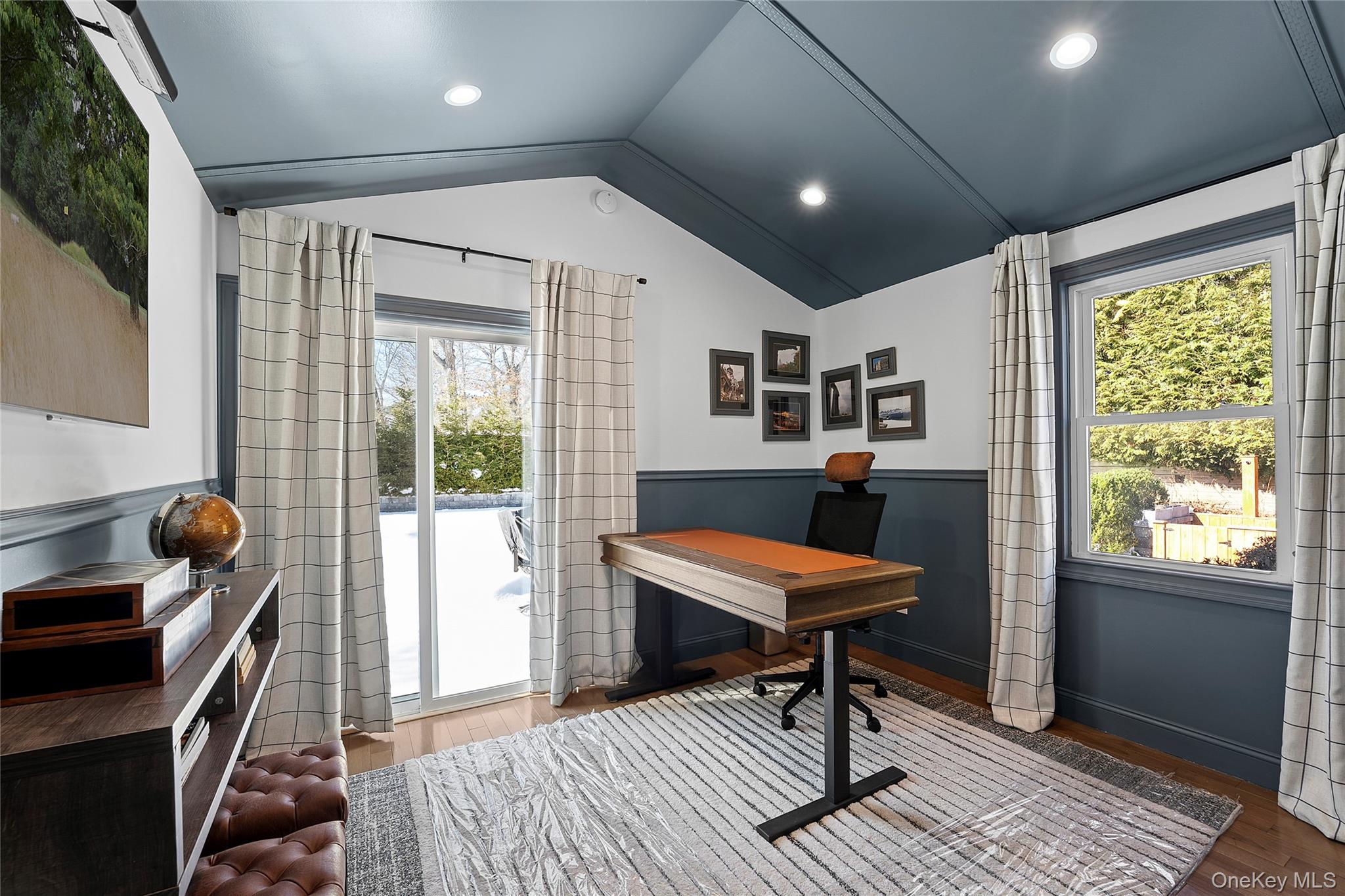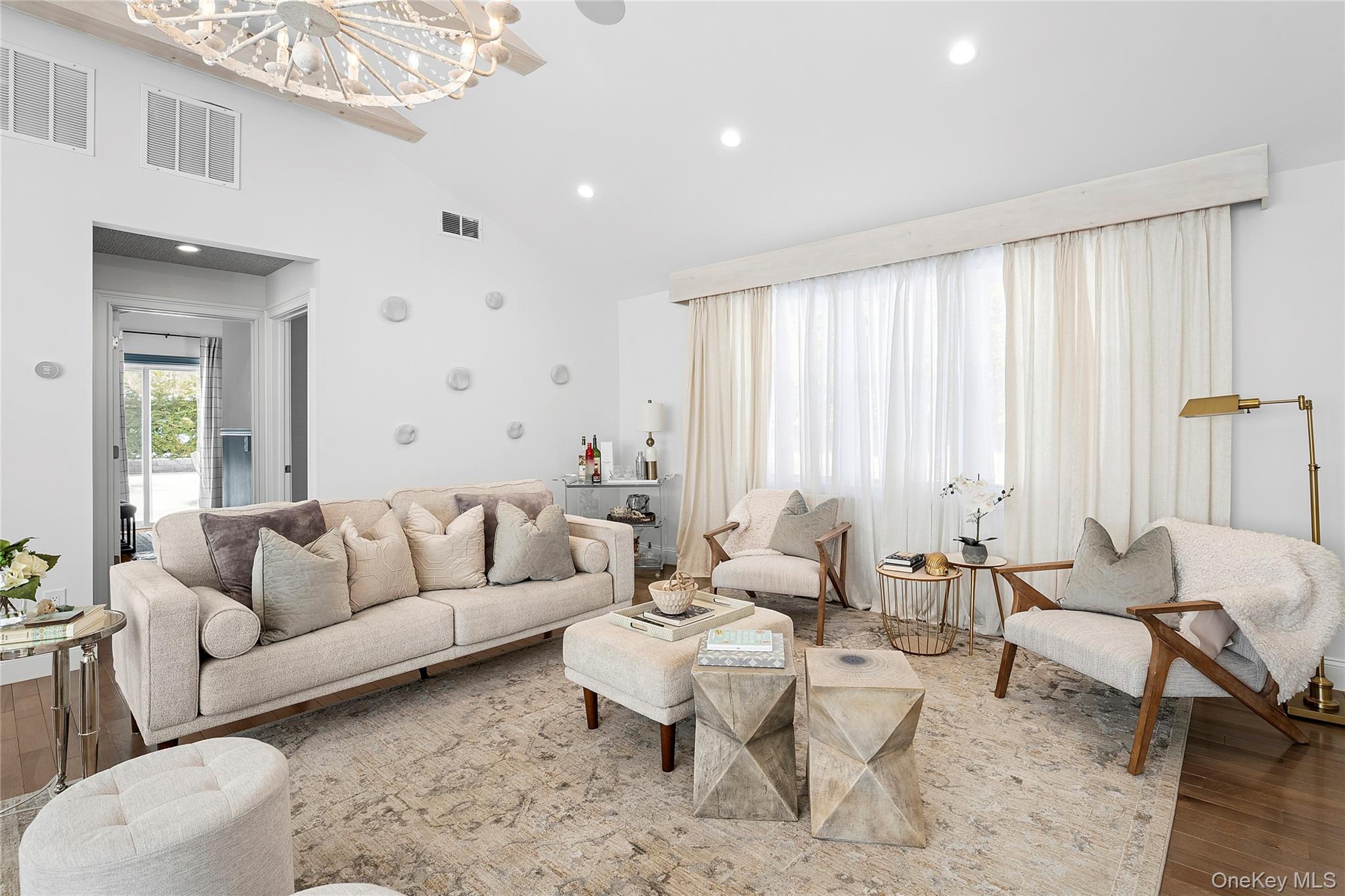 Turnkey fully furnished designers home offered for sale. Rarely available modern home 2021 sited for exceptional privacy, deeded bay access, winter water views, Located near Shinnecock Golf Course, 10 minutes to Southampton Village and world famed beaches. It is approximately 90 minutes to Manhattan. The home is flooded with natural light, features 5 bedrooms 4 baths living room and kitchen have high beamed ceilings. The wood burning fireplace makes for a cozy night. There is a fitness studio with private bath and a bedroom on main level is currently an office. Multiple living and lounging areas provide ideal spaces for gathering or quiet retreat perfect for year round living. The Chefs kitchen is designed for entertaining comlete with stainless steel appliances generous storage and large island with seating. Outdoor living is exceptional featuring a custom heated gunite pool, inground propane tank, outdoor shower, bbq mature landscaping, dining lounging, ideal for summer escapes or entertaining under the stars. The fully finished lower level offers a recreation space with bar, and media area perfect for guests. There are 2 bedrooms and bath. This is a true turnkey opportunity ideal as a primary residence, seasonal retreat, or investment. The home delivers comfort privacy location the best of Southampton living.