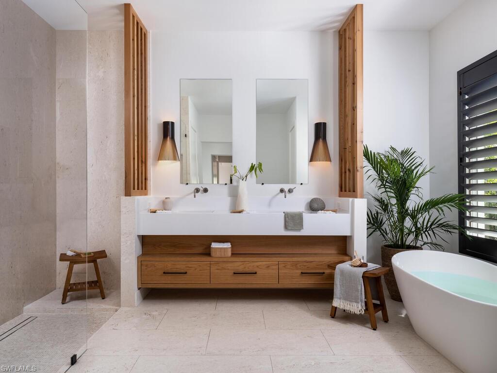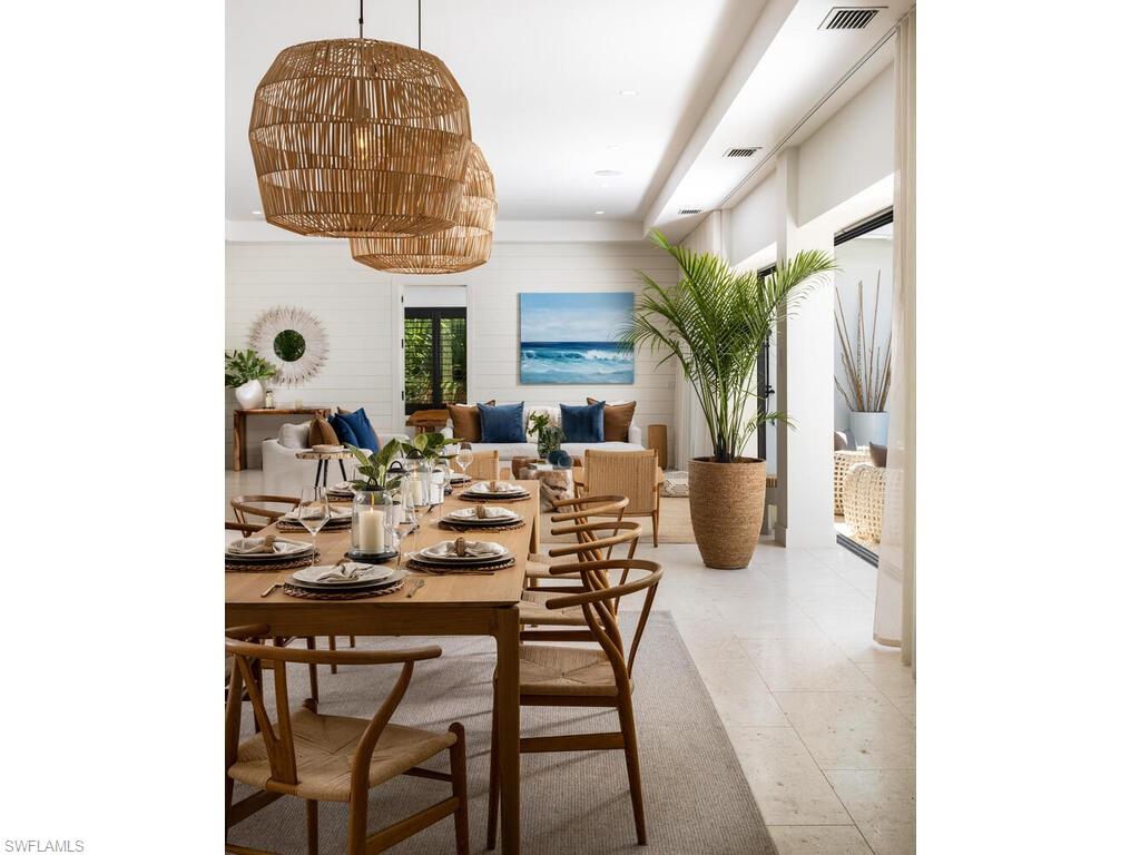 Discover the essence of coastal luxury in this exceptional four-bedroom plus den residence, ideally situated in the exclusive enclave of Sabre Cay, just off South Gordon Drive in the prestigious Port Royal area. Offering an unparalleled lifestyle, this home includes a deeded boat slip with direct, no-bridge access to the inland waterways and the Gulf of America—perfect for boating enthusiasts. A short stroll across Gordon Drive leads to a private beach access easement, granting residents exclusive entry to some of Naples’ most serene and picturesque stretches of sand. Designed with inspiration from the charm of St. Barths, this architecturally striking home features a cedar roof, exposed beams in the kitchen and primary suite, and thoughtfully curated island-inspired details. Inside, the open-concept floor plan is bathed in natural light, where warm wood accents blend seamlessly with light shell stone flooring and contemporary design elements. Expansive sliding glass doors open to a tranquil pool deck, creating an effortless flow between indoor and outdoor living—ideal for entertaining or private relaxation. Lush tropical landscaping surrounds the home, offering a serene and private retreat. This residence is eligible for Associate Membership at the Port Royal Club, enhancing the opportunity for an elite lifestyle in one of Naples' most sought-after waterfront communities. A rare offering in an unbeatable location!