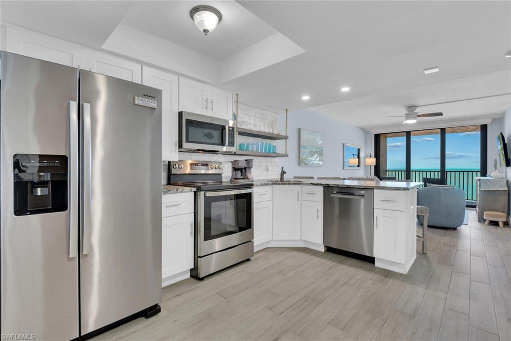 Enjoy unobstructed gulf views from this newly renovated beachfront condo at Sea Winds of Marco Island! Your oversized private balcony offers direct Western exposure over South Marco beach. Enjoy calming gulf breezes as you watch dolphins play in the surf while the sun slowly sinks into the water every afternoon. The condo offers two bedrooms and two renovated bathrooms, an open fully equipped kitchen, dining table and living room with sleeper sofa. The living area and master bedroom have sliders out to the balcony and incredible views to the gulf beyond. On the lanai, listen to the waves roll in as you enjoy dinner alfresco or lounging on the sectional sofa with a great book. Sea Winds is in the prime location on Marco Island's south end - just next door is the Sunset Grille, where you can enjoy beachfront dining and drinks just steps from the Sea Winds pool area and beach access path. Also walking distance, find an abundance of shops and restaurants at Marco Walk Plaza less than a mile to the north. Right on property, you have access to tennis courts, a swimming pool and hot tub, and beach access from the Sea Winds building. For your convenience, the unit is equipped with a washer and dryer in-unit, beach gear including plush towels, beach chairs and umbrella, a beach cart, and a cooler, a fully equipped kitchen with a dishwasher, high speed WiFi, Smart TVs in the living room and both bedrooms with cable service and hotel style linen service including all white bedding and towels.