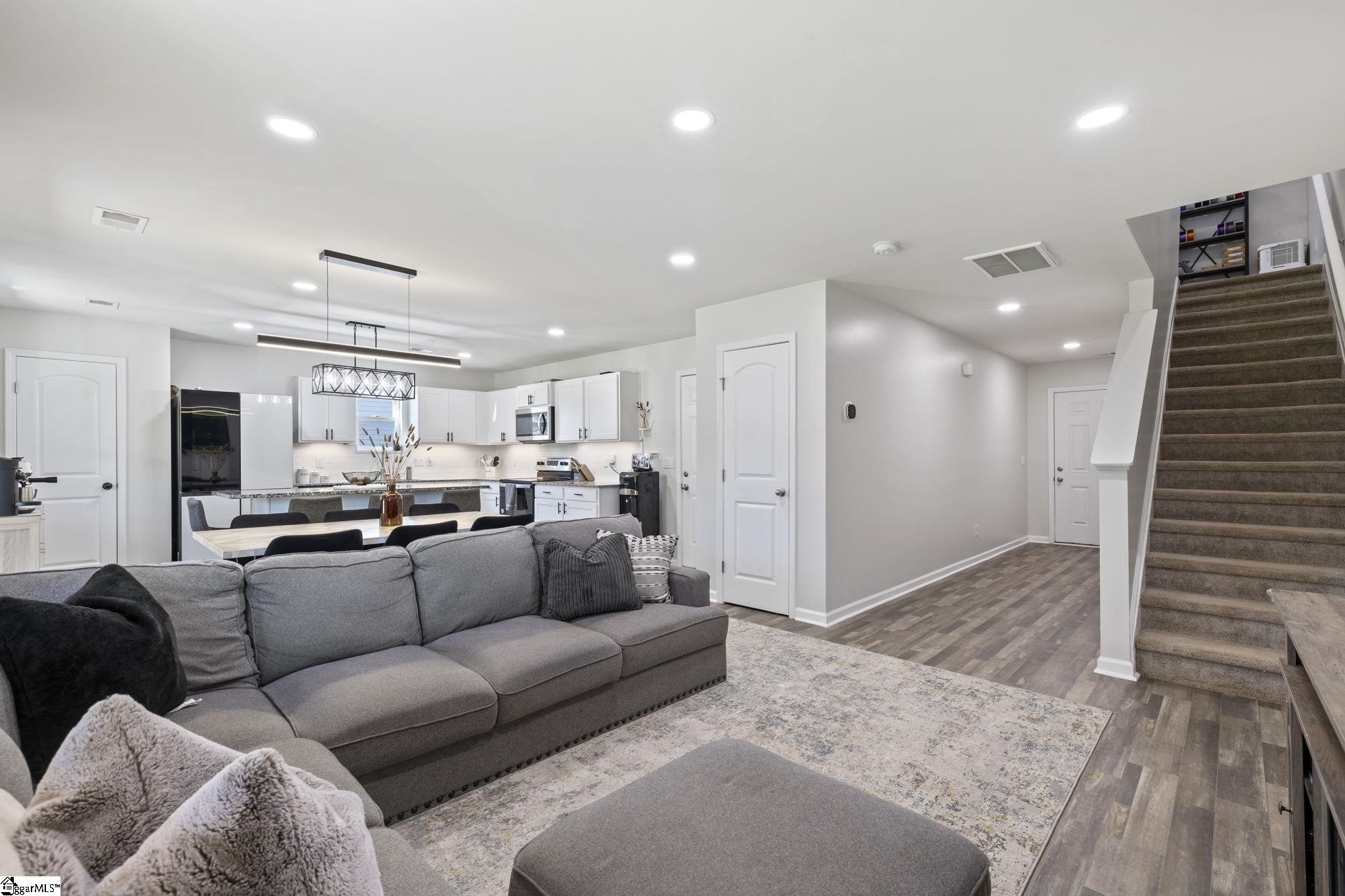 Move-in ready 3BR/2. 5BA home built in 2020, conveniently located in Duncan, SC just minutes from Tiger River Park, BMW Manufacturing, and GSP Airport. Open floor plan with spacious living and dining areas, modern kitchen featuring large island, granite countertops, and stainless steel appliances. Upstairs offers a versatile loft ideal for office, media, or flex space. Primary suite includes walk-in closet and private bath with double vanity and tub/shower combo. Enjoy a covered patio overlooking a tree-line backyard, perfect for relaxing or entertaining. Great opportunity for first-time buyers or anyone seeking modern living in a prime location.