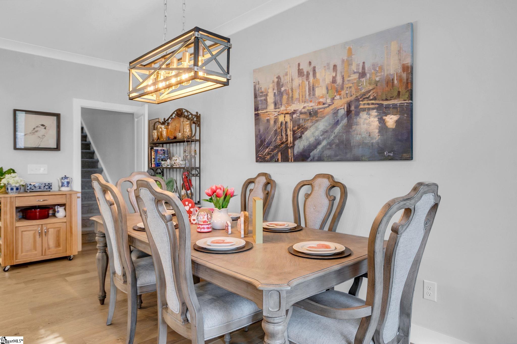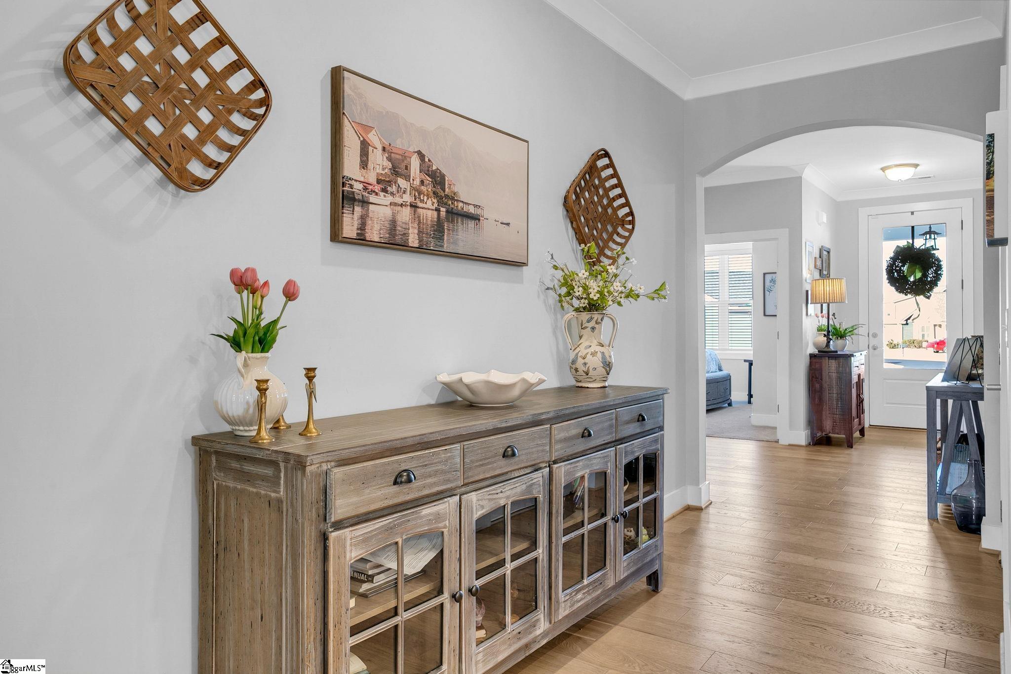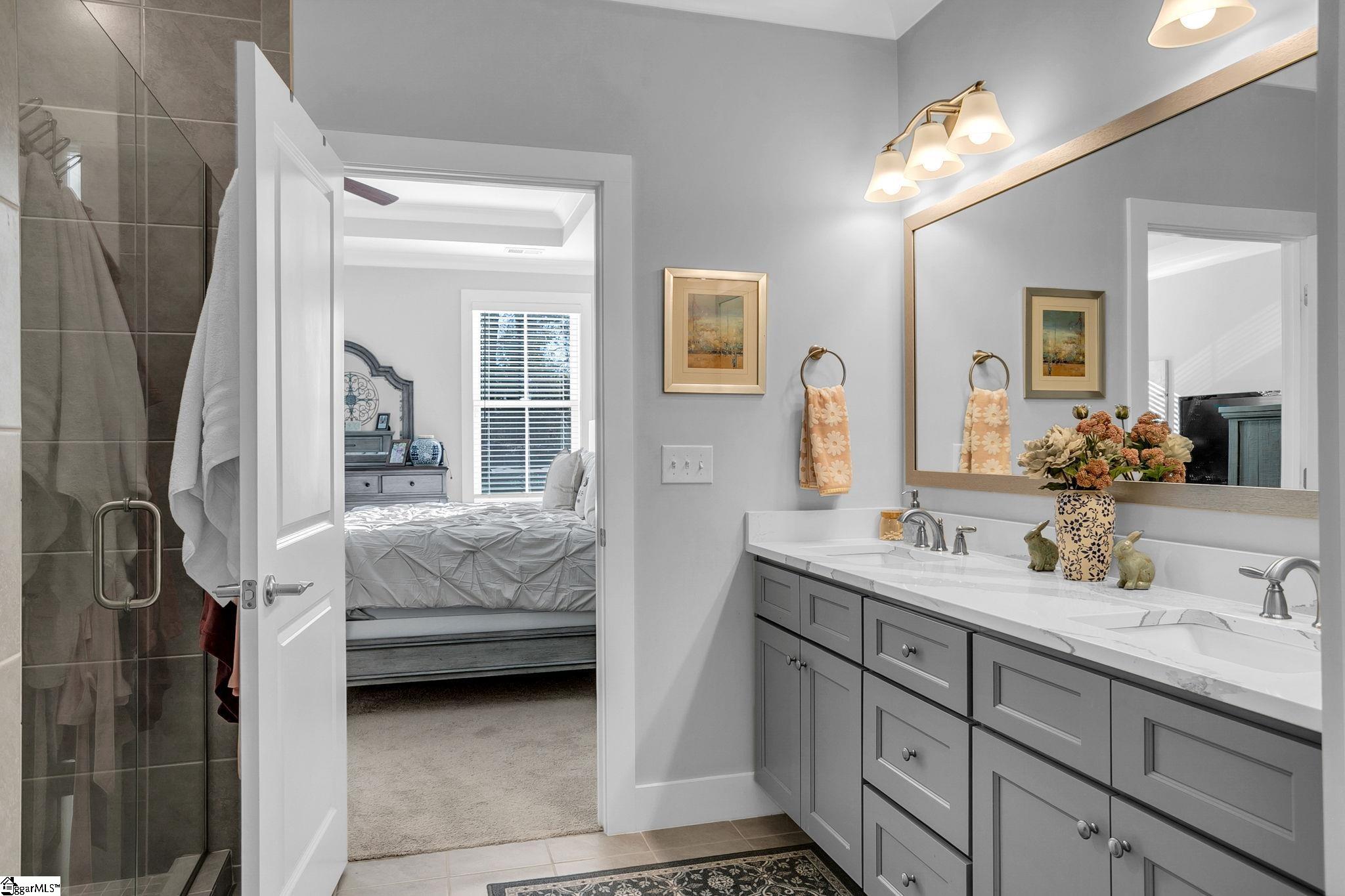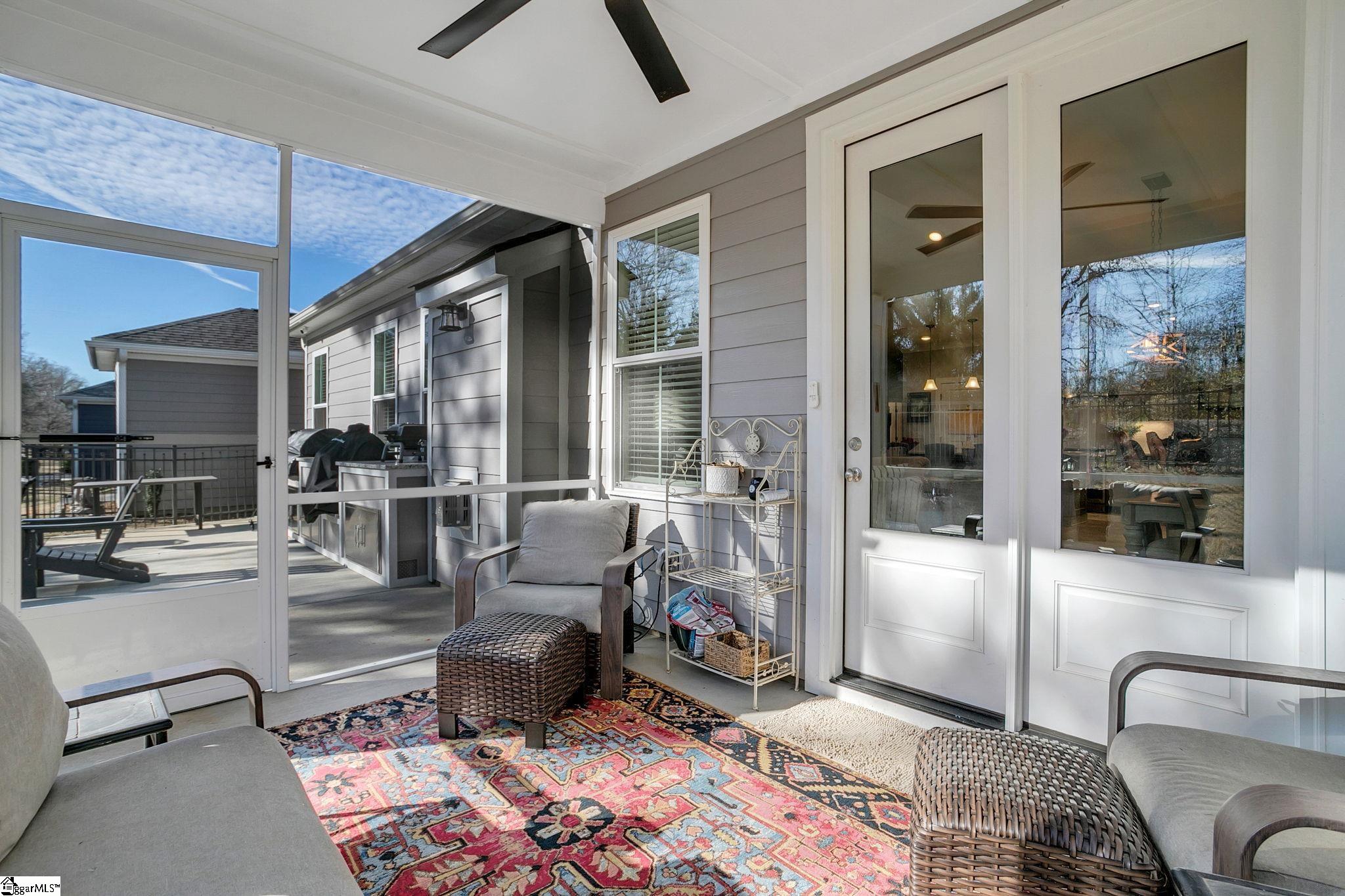 Welcome to 214 Mayfly Way in Simpsonville — a beautifully upgraded 3 bedroom, 3 bathroom home offering over 2, 000 square feet of thoughtfully designed living space in the gated community of Cottages at Harrison Bridge (Section 2). Built in 2023 by Dwelling Group, this nearly new home features an ideal floor plan with two bedrooms on the main level, including a spacious primary suite, and a versatile third bedroom upstairs complete with its own en suite bath — perfect as a private guest retreat, bonus room, or recreation space. The kitchen and all bathrooms showcase upgraded quartz countertops, blending style and durability. The primary closet has been enhanced with upgraded storage solutions for maximum organization. Outdoor living truly sets this home apart. Enjoy a screened-in porch, fully fenced backyard with iron fencing, and a state-of-the-art built-in outdoor kitchen on the back patio — ideal for entertaining year-round. This premium lot backs up to peaceful farmland, offering green space views and a beautiful tree-lined backdrop for added privacy. Residents of this gated community enjoy lawn maintenance and full-yard irrigation, providing low-maintenance living at its finest. Conveniently located just minutes from Fairview Road shopping, dining, and hospital access, and with quick connectivity to I-385, this home combines comfort, convenience, and upscale finishes in one exceptional package. Schedule your showing today and experience the lifestyle this home has to offer!