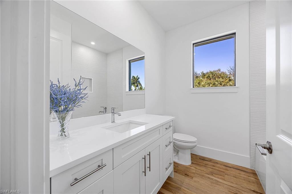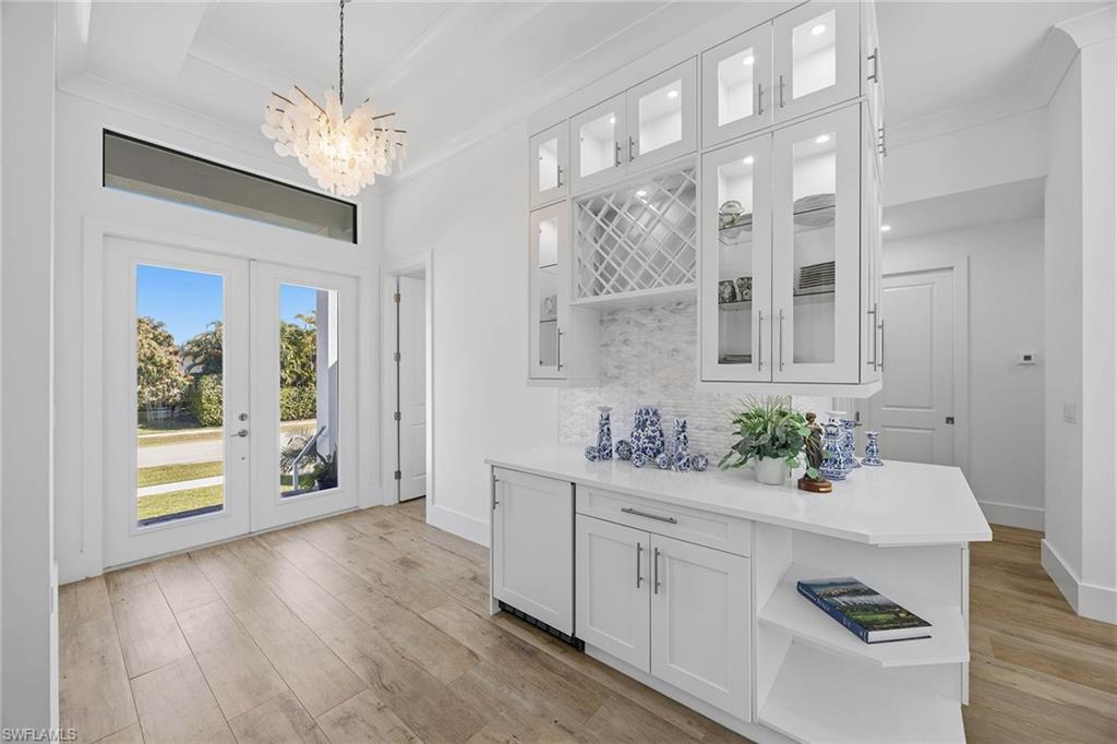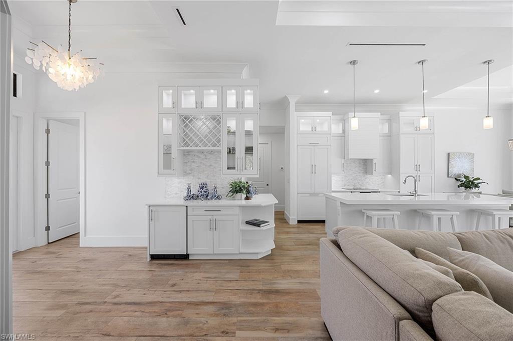 One block to Marco Island’s most prestigious South Beach! This spectacular location is only a couple blocks to Marco Walk Plaza, Hilton Marco Island Beach Resort and Spa, Marriott's Crystal Shores, restaurants/bars, shops, ice cream/gelato, movie theater and access to South Beach. Experience the perfect blend of luxury and coastal living in this stunning 4 bedrooms, 2. 5 bath home by the beach. This coastal contemporary residence offers high-end finishes throughout including porcelain tile floors, quartz countertops, and Bosch kitchen appliances. Expansive great room has open concept: 28 feet of sliding glass doors (three sets, 10 feet tall), 11-foot ceilings with tray ceiling to a peak of 12 feet. In addition, there is a gourmet kitchen with shaker cabinets (solid wood faces), shadow boxes above, 10-foot island, dry bar and crown molding throughout. Hurricane-impact windows and doors. Designed for both relaxation and entertaining, the expansive shell stone tile lanai overlooks a 34’ x 10’ saltwater pool, ideal for laps or lounging. Situated on a desirable corner lot, the home captures beautiful open views and abundant natural light. A rare opportunity to own modern elegance in an unbeatable beachside location. Excellent elevation at 11 feet. Construction completed: April 2024).