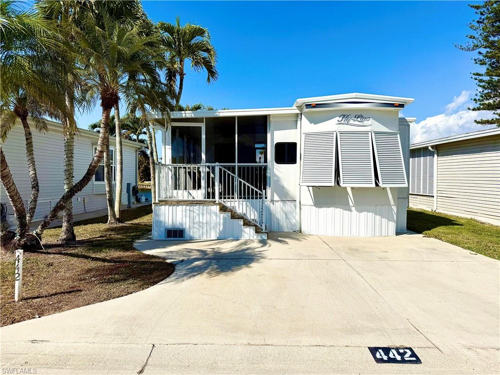 Incredible Water Views and a Screened Lanai— welcome to 442 Cheetah Drive in the Imperial Wilderness Condominium Association of Naples, Florida. This 2017 1Br/1Ba unit, being sold furnished, is exceptionally clean and relaxing. The kitchen contains ample cabinet space, an island, and dishwasher. The dinette overlooks the screened lanai with an interior view of the TV, and the sitting area contains a couch plus two chairs. In the bath area, you will appreciate the curved corner shower and linen storage. If relaxation with tropical views is what you enjoy, the bedroom will meet your expectations. There are views of the lake, plenty of storage areas, and a queen-size bed. Outdoor living at this residence is paramount. There is a spacious screened lanai with attractive tropical furniture and decor; plus, a rear patio overlooking the lake. On top of all of these tremendous features, Imperial Wilderness Condominium Association is a location where you own the land when you purchase your home. It is not leased land or a Co-Op. Making this opportunity even more attractive, IWCA was never flooded or adversely affected by any recent hurricane. Additionally, the location is brilliant. It is approximately 3 miles to shopping and restaurants, 11 miles to the Naples beaches, and 8 miles to the Marco Island beaches. Airport access is easily attainable— a 45-minute drive (RSW). Maximizing the opportunity to affordably own in Naples, FL, the HOA fee of $898. per quarter is exceptionally reasonable. That fee covers many of your needs: the safety of a gated community, water, sewer, lawn care, basic cable, trash, recycling, and community amenities. Community amenities include 2 pools with spas, bocce, pickleball, pétanque, tennis, shuffleboard, billiards, ping pong, a library, clubhouse, 2 dog parks (1 pet, 40lb. max. ), nature trail, and an extremely active events calendar— there are over 100 activities available per week! If you are looking for fun or a chance to relax in paradise, this is for you!