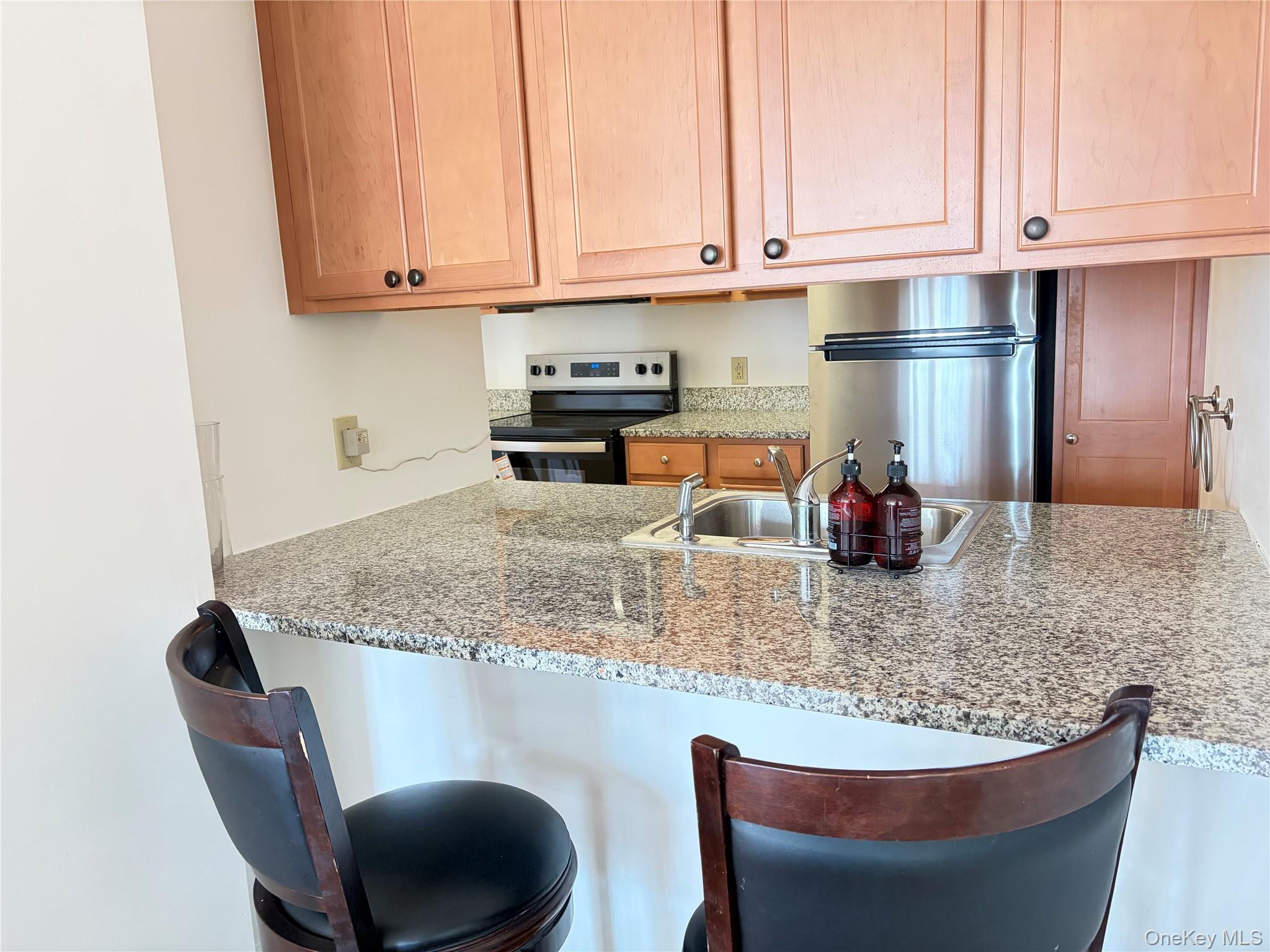 Welcome to Sutton Manor—Mount Kisco’s premier 55+ active adult community. This sun-filled, top-floor residence offers the perfect blend of luxury and convenience. Truly move-in ready, this unit features a brand-new 2025 Whirlpool stainless steel appliance suite, granite countertops, and a fresh coat of designer paint throughout. Enjoy a spacious primary suite with a large walk-in closet and en-suite bath, plus a private balcony. This elevator building offers a low-maintenance lifestyle with a clubhouse, fitness center, and secure heated garage parking. Ideally situated within close proximity to local shops, Target, dining, and the Metro-North train. HOA fee includes heat and hot water. Option to purchase fully furnished for a seamless move-in experience. At least one occupant must be 55+.