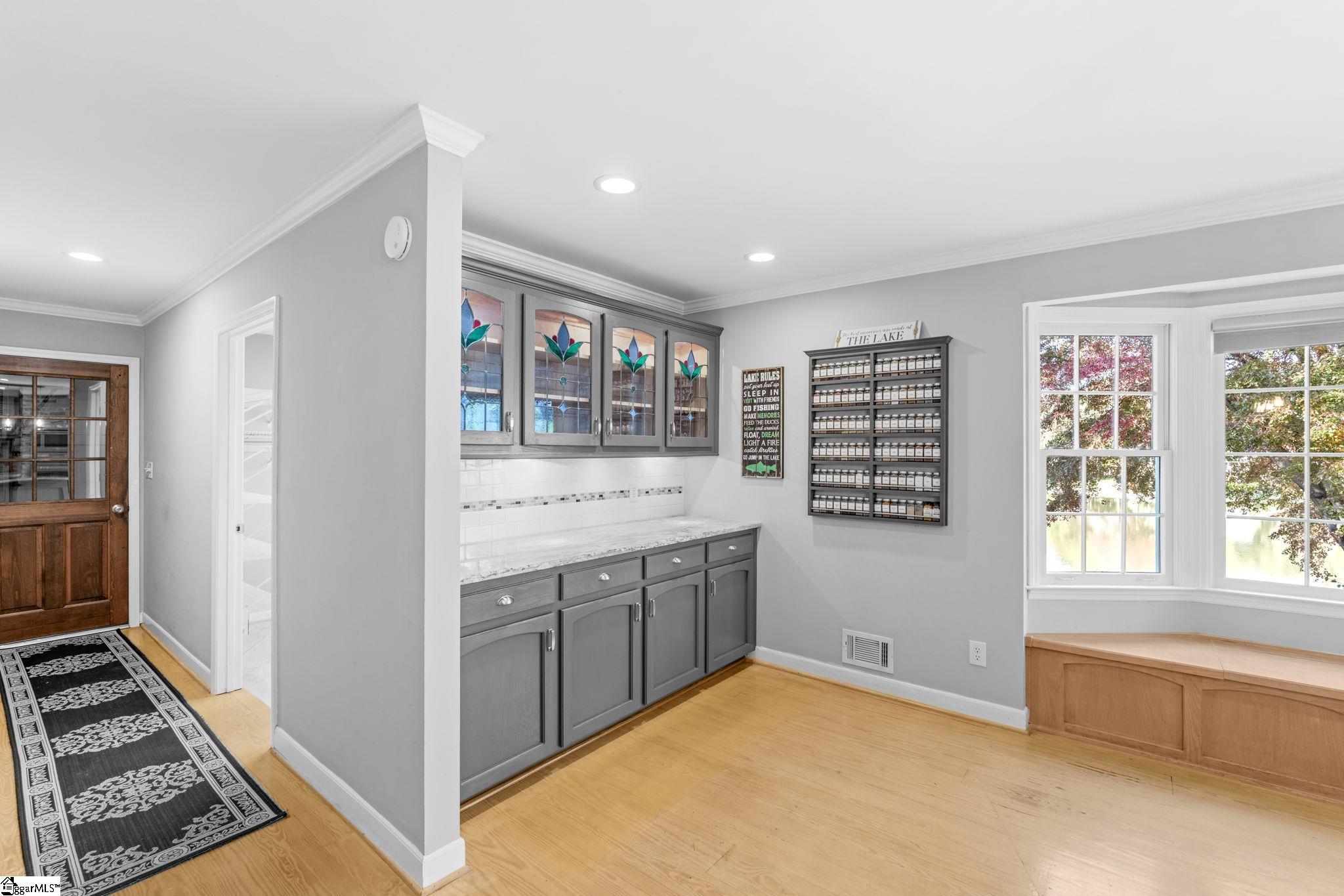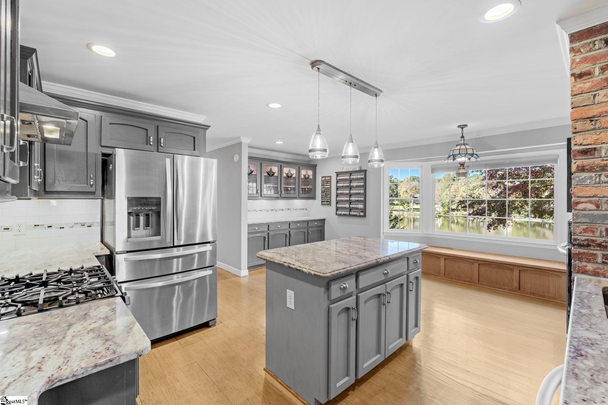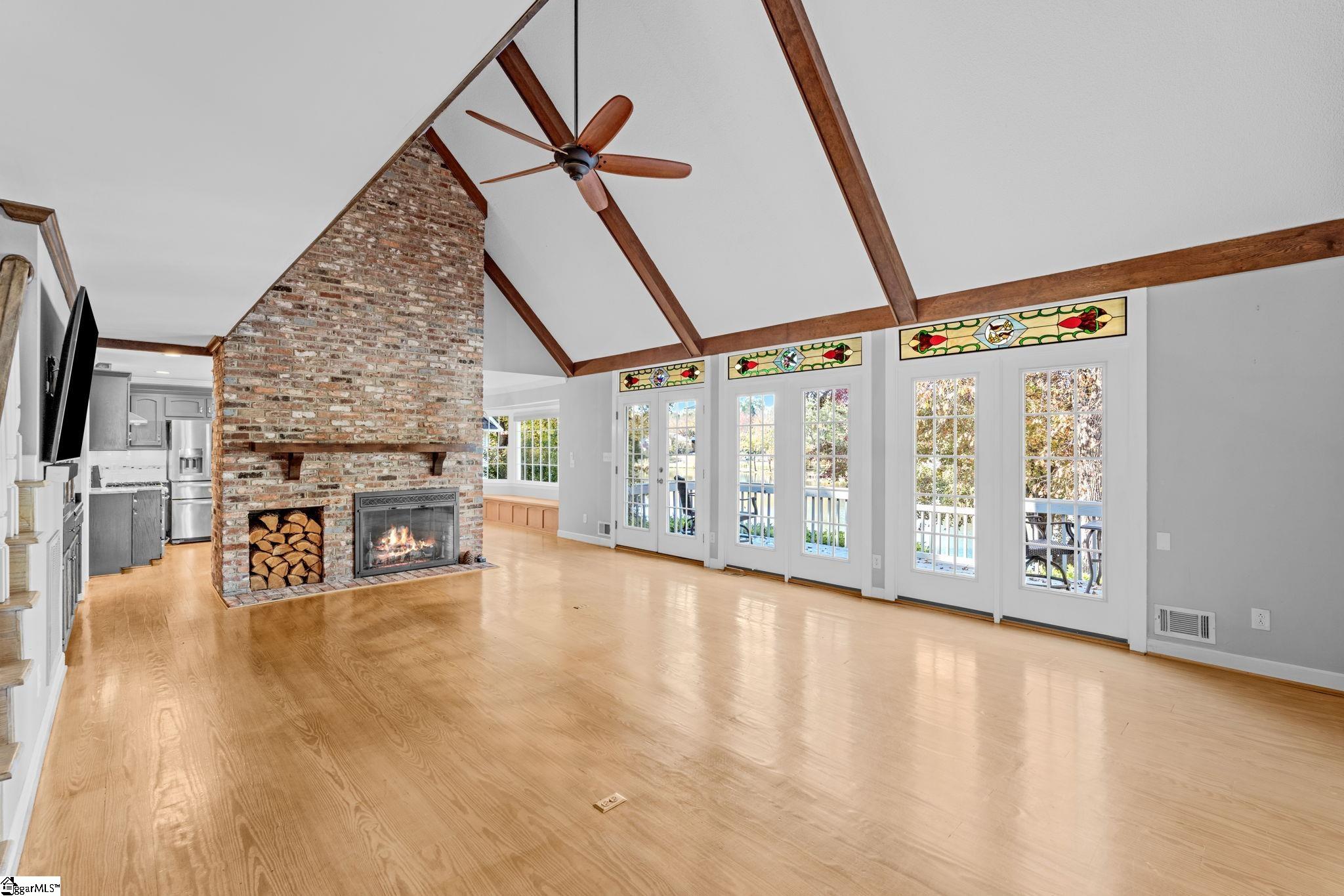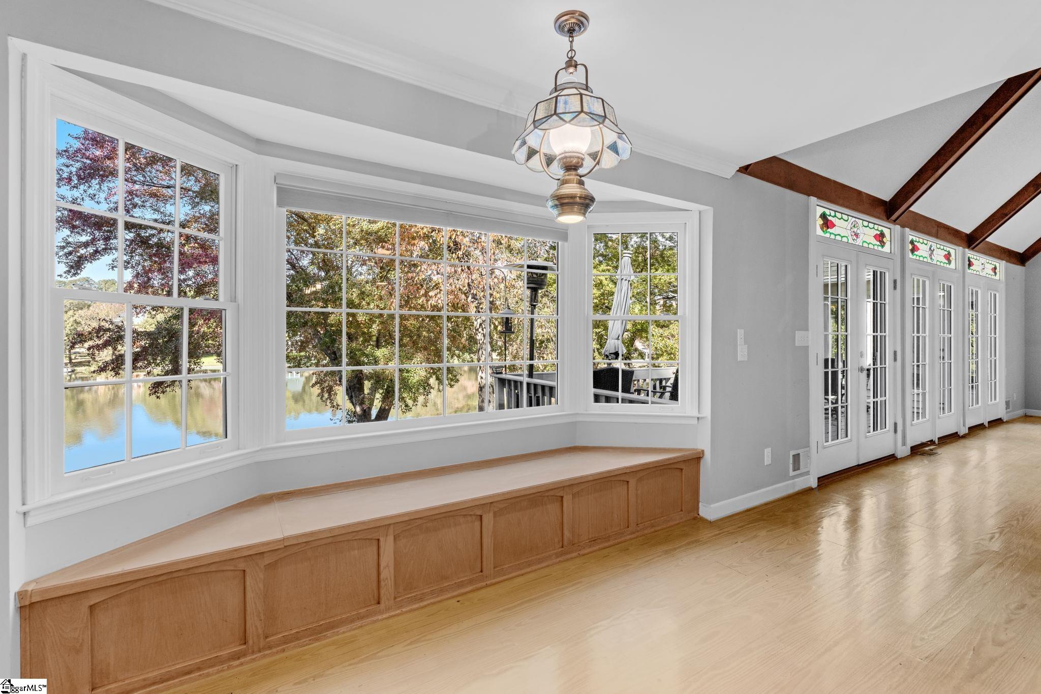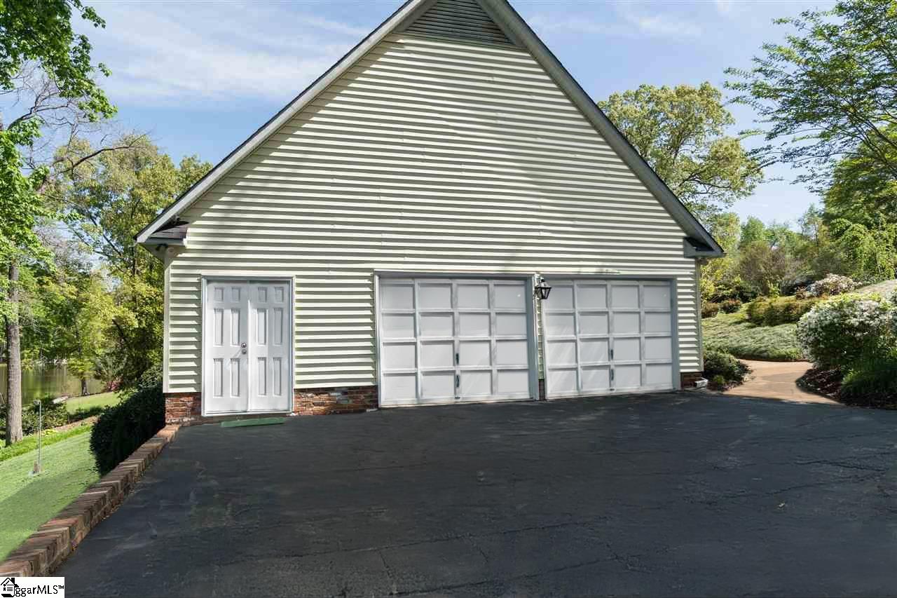 The pine floors are getting refinished and will look amazing for the new purchaser. Please be aware that the home will not be able to be shown starting March 4-8th. Exclusive lakefront living reaches new heights in this stunning Cape Cod residence—an exceptional blend of timeless character, refined craftsmanship, and serene waterfront beauty. Perfectly positioned for privacy, the 4-bedroom, 3-bath home (owner's suite and additional bedroom on the main) offers sweeping lake views from nearly every room and includes its own private dock on the exclusive neighborhood lake, reserved only for 26 lakefront homeowners. The elegant front porch welcomes guests into the foyer, where light-stained, wide-plank pine hardwood floors flow throughout the main level. Just off the entry, a sophisticated home office features custom built-ins, storage closets, dual pocket doors for privacy, and abundant natural light. The formal dining room exudes classic charm with detailed chair molding and a seamless transition into the gourmet kitchen—complete with a gas range and vent hood, built-in oven and microwave, granite countertops, white subway and decorative tile backsplash, and a functional island, a custom spice rack and additional cabinet storage with custom stained glass cabinets. A charming eat-in nook with banquette seating overlooks the tranquil lake, creating the perfect setting for morning coffee or casual gatherings and offering additional storage space found in the built-ins. The impressive living room showcases soaring beamed ceilings, a two-story exposed brick wood-burning fireplace, and a wet bar—opening through stained-glass French doors to an expansive deck that captures breathtaking lake views. The owner’s suite is a true retreat, featuring a private fireplace, a serene sunroom, and a luxurious ensuite with separate dual vanities, a soaking tub, a renovated glass-enclosed shower, and a generous walk-in closet. A main-floor guest suite offers comfort and privacy with multiple closets and a full bath, while upstairs, two additional bedrooms with new carpet share a thoughtfully designed bath with separation from vanity and shower area. Exceptional storage abounds throughout, including two spacious walk-in attics that can easily be converted into additional living areas, a large pantry and laundry room with a built-in drain, and walk-in storage adjacent to the garage. Even the crawlspace and under-deck areas offer ample room for organization. Enjoy the best of outdoor living from your expansive deck or private dock, where you can take in the peaceful beauty of the water each day. With its unmatched setting, meticulous attention to detail, and rarity on the market—available for only the second time since construction—this home delivers the ultimate lakefront lifestyle that defines elegance and exclusivity. Londonderry comprises 330 residences and is designed for community and recreation. Neighborhood amenities include a baseball field for both organized games and casual play, tennis, pickleball, and basketball courts for active lifestyles, a playground and park, and access to the scenic North Tyger River, offering opportunities for fishing, nature walks, and peaceful views. Additional info: Buyers will appreciate that sellers have replaced the downstairs condensing unit in 2024, the Upstairs furnace replaced in 2022, the downstairs furnace in 2020, the gas line and gas logs added to the owner's suite in 2023, gas water heater replaced in 2025. Lawn and yard are irrigated by the lake water and Sellers replaced irrigation pump in 2023!