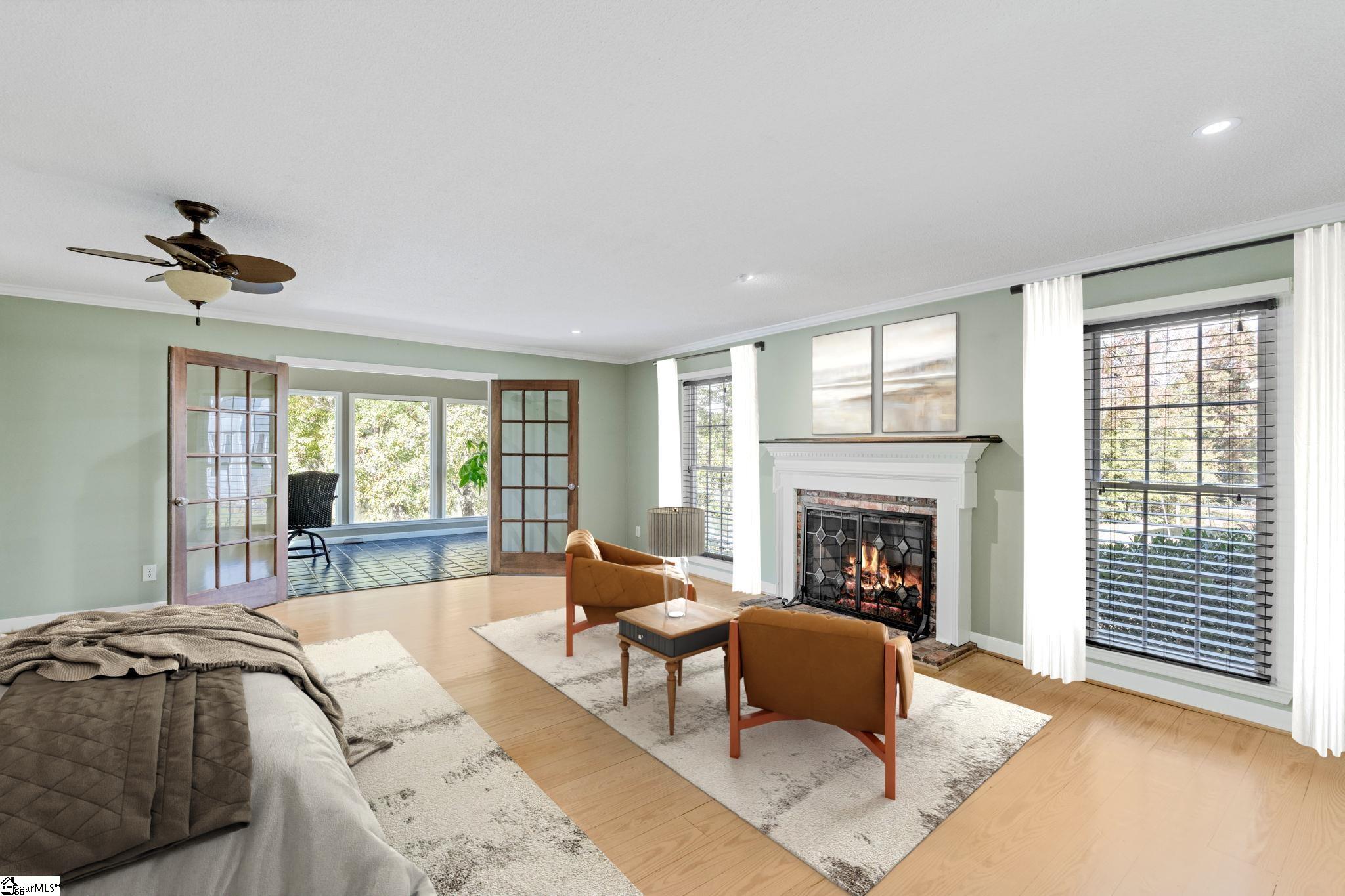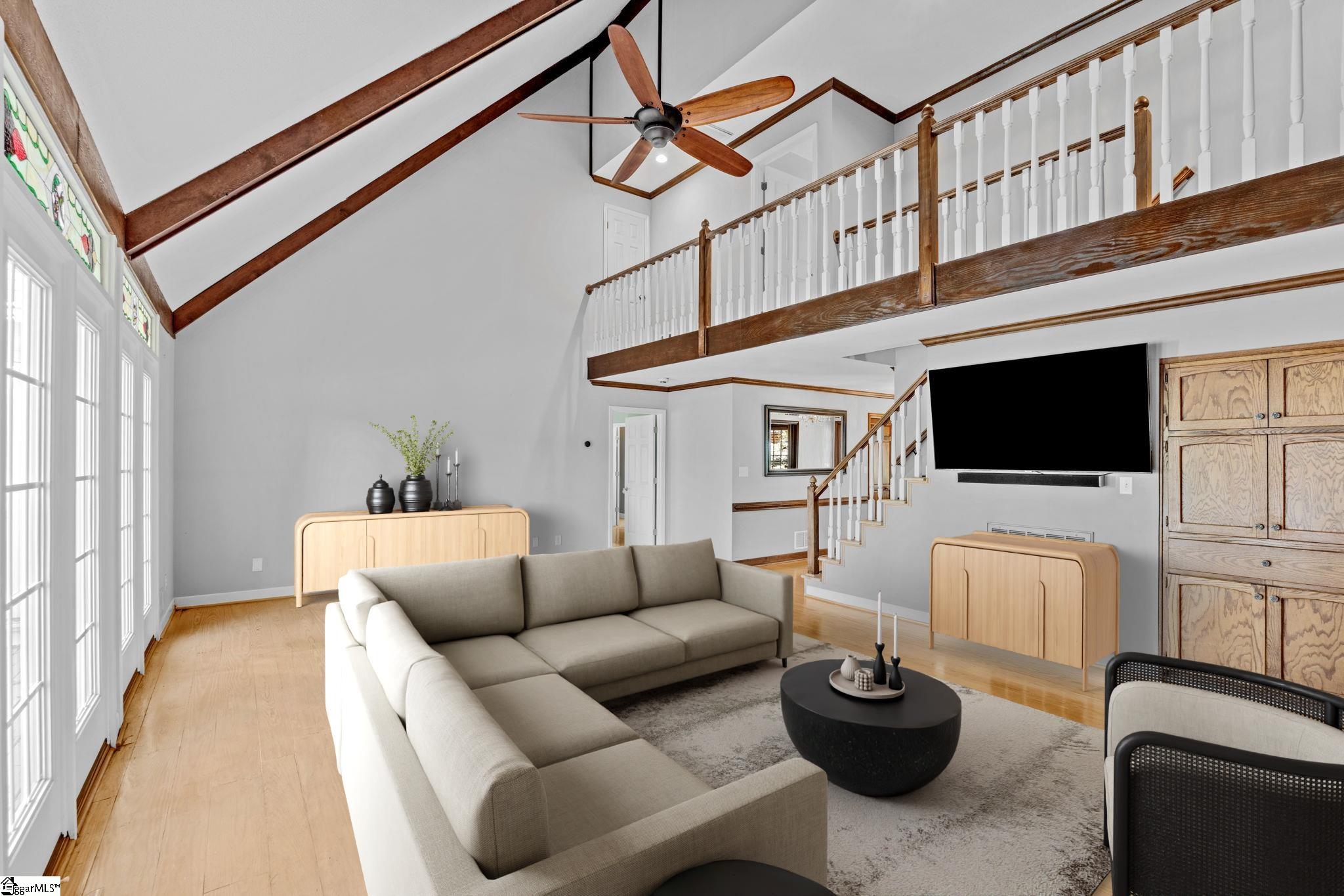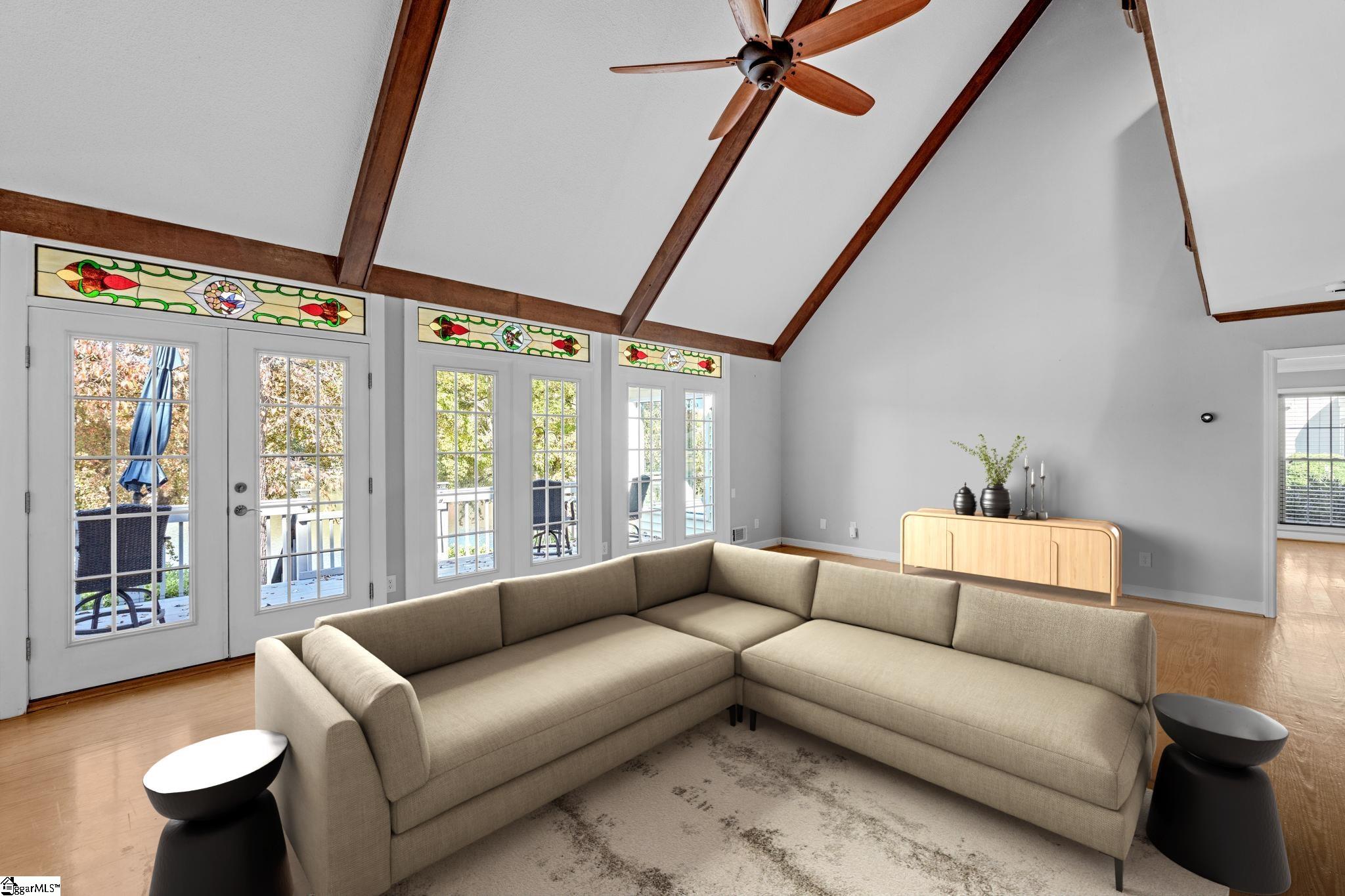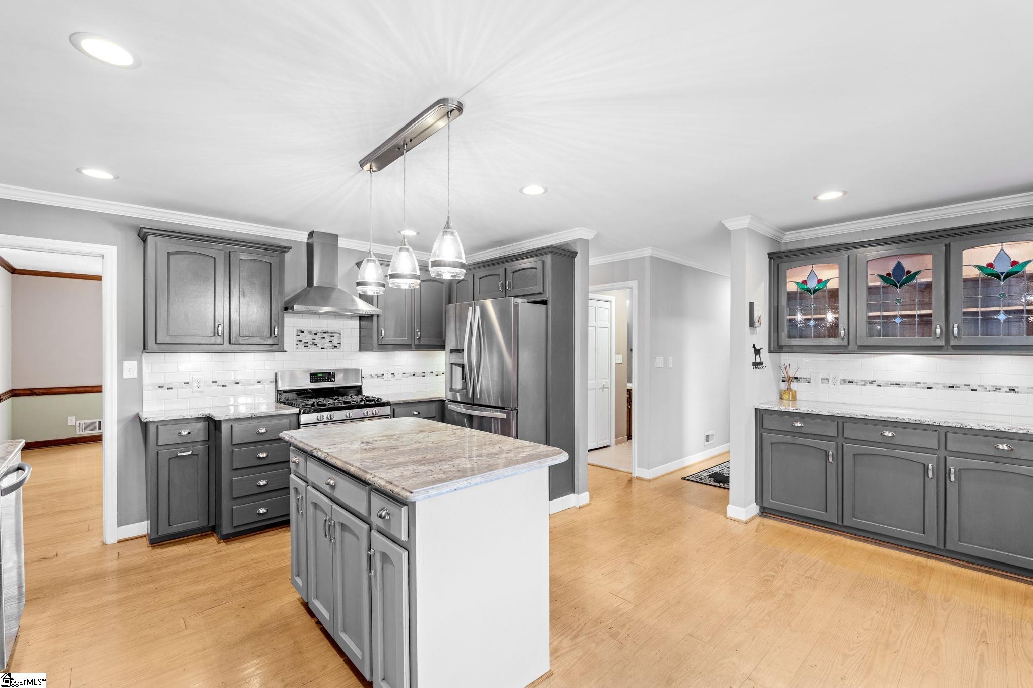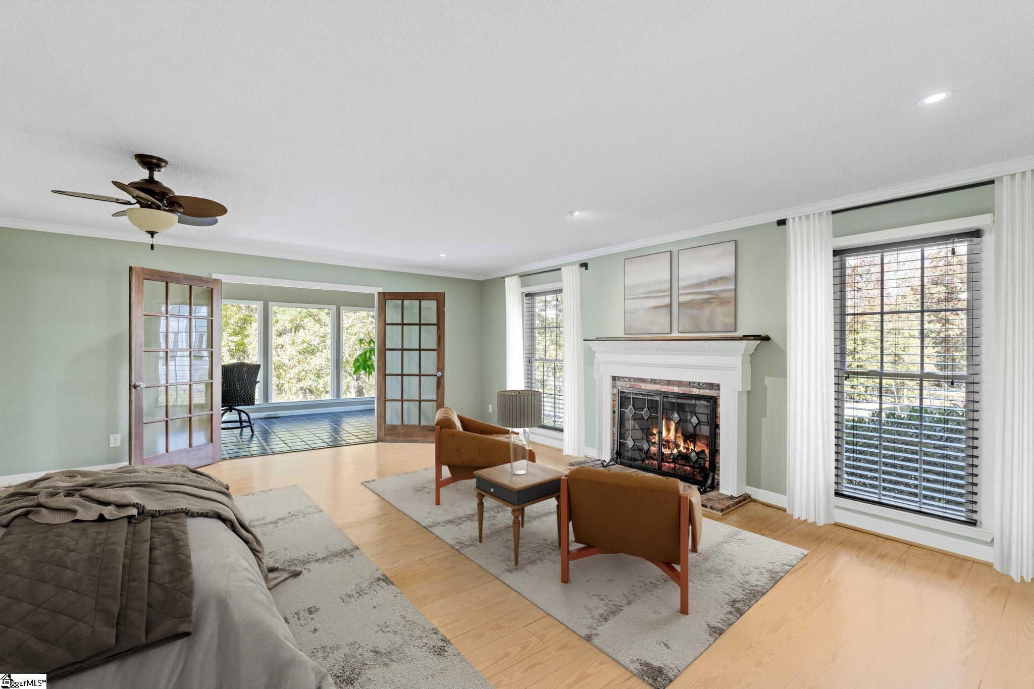 The pine floors are getting refinished and will look amazing for the new purchaser. Please be aware that the home will not be able to be shown starting March 4-8th. Exclusive lakefront living reaches new heights in this stunning Cape Cod residence—an exceptional blend of timeless character, refined craftsmanship, and serene waterfront beauty. Perfectly positioned for privacy, the 4-bedroom, 3-bath home (owner's suite and additional bedroom on the main) offers sweeping lake views from nearly every room and includes its own private dock on the exclusive neighborhood lake, reserved only for 26 lakefront homeowners. The elegant front porch welcomes guests into the foyer, where light-stained, wide-plank pine hardwood floors flow throughout the main level. Just off the entry, a sophisticated home office features custom built-ins, storage closets, dual pocket doors for privacy, and abundant natural light. The formal dining room exudes classic charm with detailed chair molding and a seamless transition into the gourmet kitchen—complete with a gas range and vent hood, built-in oven and microwave, granite countertops, white subway and decorative tile backsplash, and a functional island, a custom spice rack and additional cabinet storage with custom stained glass cabinets. A charming eat-in nook with banquette seating overlooks the tranquil lake, creating the perfect setting for morning coffee or casual gatherings and offering additional storage space found in the built-ins. The impressive living room showcases soaring beamed ceilings, a two-story exposed brick wood-burning fireplace, and a wet bar—opening through stained-glass French doors to an expansive deck that captures breathtaking lake views. The owner’s suite is a true retreat, featuring a private fireplace, a serene sunroom, and a luxurious ensuite with separate dual vanities, a soaking tub, a renovated glass-enclosed shower, and a generous walk-in closet. A main-floor guest suite offers comfort and privacy with multiple closets and a full bath, while upstairs, two additional bedrooms with new carpet share a thoughtfully designed bath with separation from vanity and shower area. Exceptional storage abounds throughout, including two spacious walk-in attics that can easily be converted into additional living areas, a large pantry and laundry room with a built-in drain, and walk-in storage adjacent to the garage. Even the crawlspace and under-deck areas offer ample room for organization. Enjoy the best of outdoor living from your expansive deck or private dock, where you can take in the peaceful beauty of the water each day. With its unmatched setting, meticulous attention to detail, and rarity on the market—available for only the second time since construction—this home delivers the ultimate lakefront lifestyle that defines elegance and exclusivity. Londonderry comprises 330 residences and is designed for community and recreation. Neighborhood amenities include a baseball field for both organized games and casual play, tennis, pickleball, and basketball courts for active lifestyles, a playground and park, and access to the scenic North Tyger River, offering opportunities for fishing, nature walks, and peaceful views. Additional info: Buyers will appreciate that sellers have replaced the downstairs condensing unit in 2024, the Upstairs furnace replaced in 2022, the downstairs furnace in 2020, the gas line and gas logs added to the owner's suite in 2023, gas water heater replaced in 2025. Lawn and yard are irrigated by the lake water and Sellers replaced irrigation pump in 2023!
