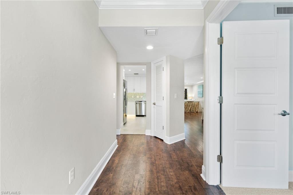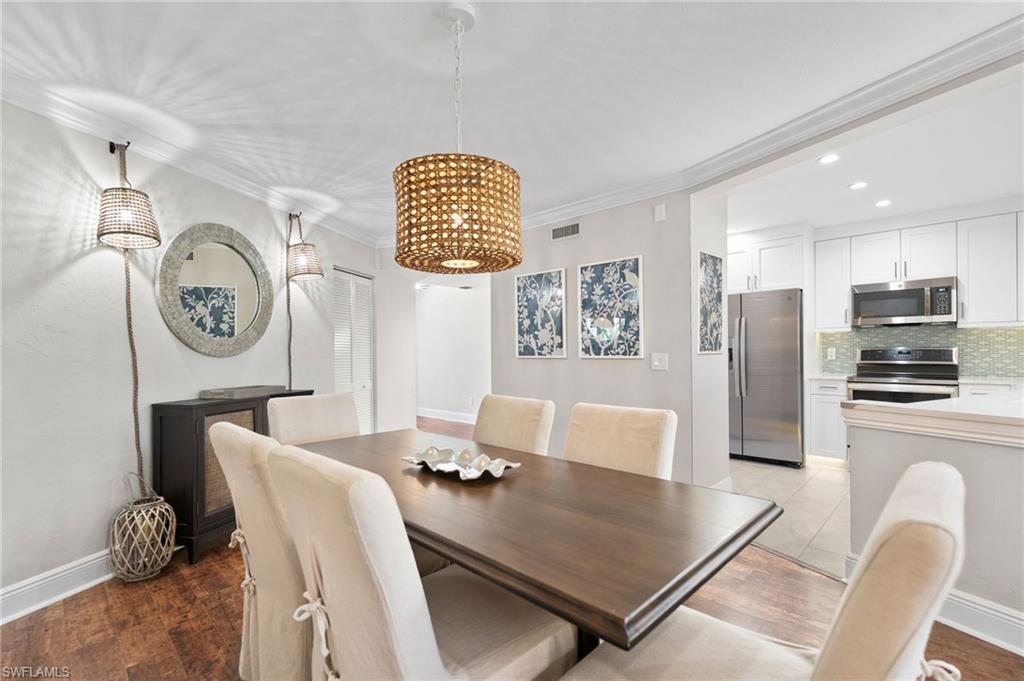 The perfect year-round residence or equally perfect intimate vacation getaway in an AMAZING location! If you have been looking for a simply fantastic, neat as a pin, move-in ready 2nd floor (top floor) residence with 3 bedrooms and 2 full baths in Olde Naples that offers best in class value then look no further. Make an appointment to come to view this pet friendly residence. Lovely mature landscaping. This property is even better in real life than in the photography! Walk to the 5th Ave. S. or the 3rd St. S. districts and more. Terrific floor plan with generously sized screened in balcony that opens into the living area and master suite. Professionally renovated kitchen with new quartz surfaces and total replacement of all former kitchen cabinets and fixtures etc. . Inviting and thoughtfully designed wet bar area with quartz surface that is ideal for entertaining plus custom shelving and below counter wine / beverage fridge. New vanity cabinetry, new quartz vanity surfaces, and new fixtures in both bathrooms … new enclosure in master bath and new tub in guest bath. High and dry residence, and, owner has had no storm damage or water intrusion. Total building roof replacement in May 2022. This residence includes one dedicated carport space for your covered parking, and, has roll down impact rated shutters for the lanai and all windows. There is a heated swimming pool with chaises as well as tables with umbrellas, and a grill for residents. Sidewalks make for outstanding walkability to Crayton Cove, 5th Avenue South and the 3rd Street South shopping and dining districts. Walk or bike to the beach. This property is truly a pleasure to view. Come see for yourself how much incredible value this property delivers as well as how conveniently located it is in the sought after Olde Naples area. You will be glad to did!