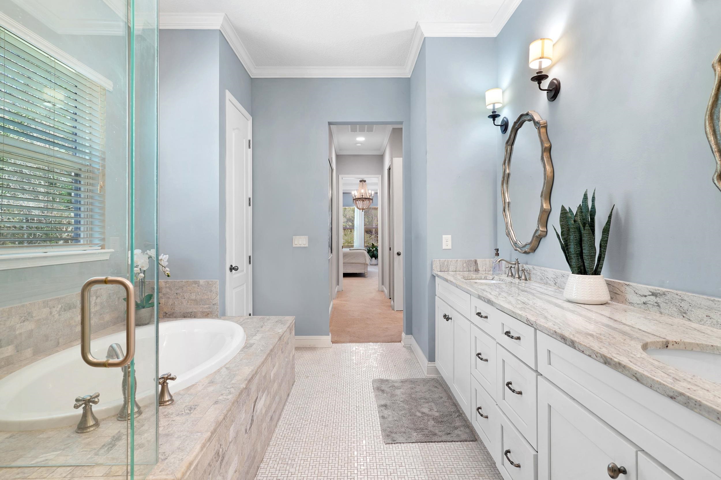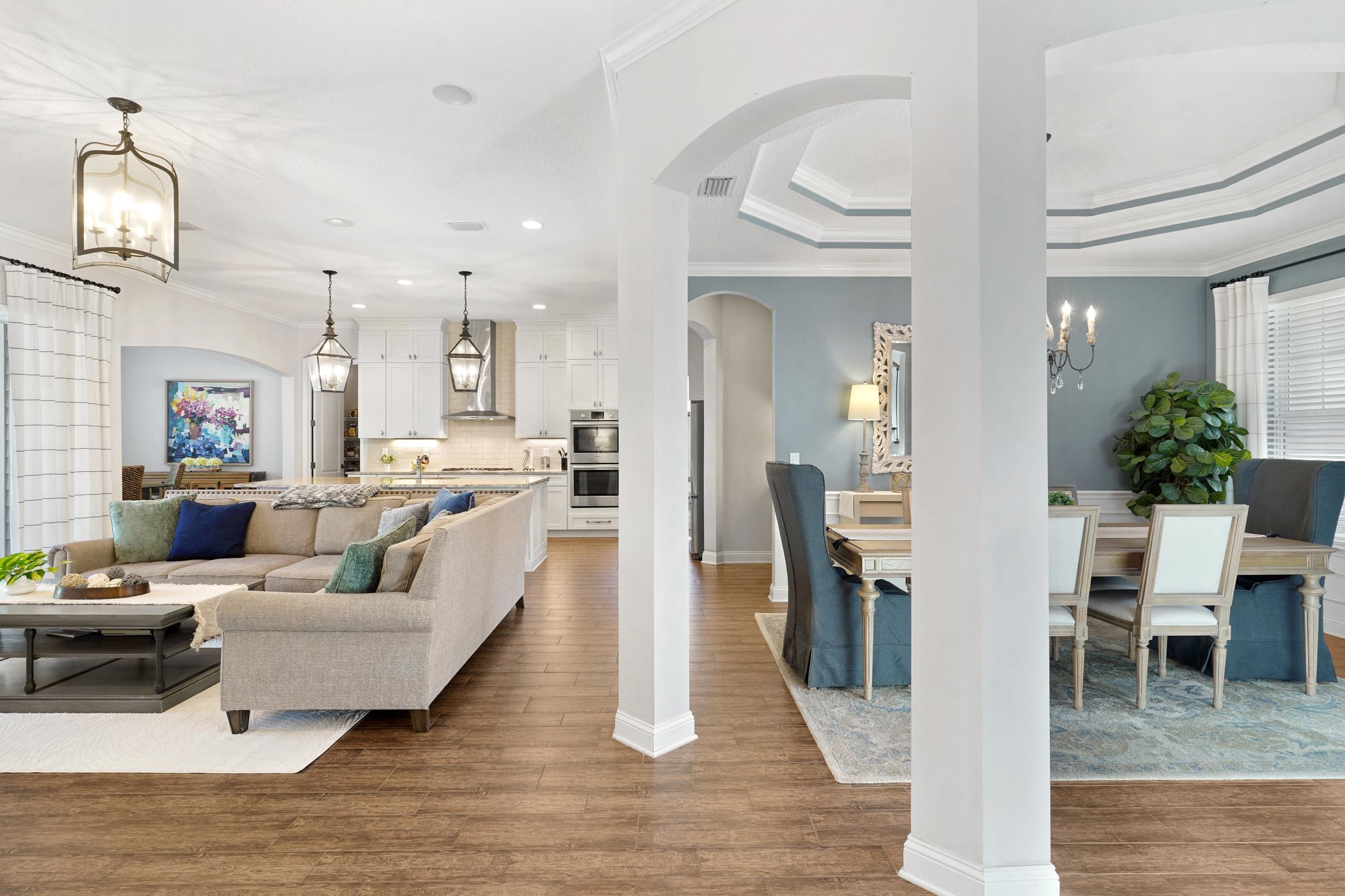 Welcome to 112 Averley Way, a stunning custom-built luxury home located in the highly sought-after Durbin Crossing community. This beautifully maintained two story residence offers an open and airy floor plan with 5 bedrooms, 4 full bathrooms, and a dedicated den/office, providing exceptional space and flexibility for today’s lifestyle. Situated on a generous . 29-acre preserve-backed lot the home delivers privacy and serene views, complemented by a fully fenced backyard that's perfect for entertaining, pets, peaceful outdoor living, and there's plenty of room for a pool. The heart of the home is the gourmet kitchen, featuring Bosch and Wolf appliances, granite countertops, soft-close cabinetry, and a spacious walk-in pantry. Additional highlights include a wood-burning fireplace, an oversized 20x25 pavered screened-in patio, and thoughtful upgrades throughout. Upstairs you'll find a large 15x16 flex space and walk-in closets in every bedroom. Major improvements were completed in 2025, including a new roof, new A/C system, and fresh landscaping, offering peace of mind for years to come. The community of Durbin Crossing offers its residents a plethora of amenities to include tennis, pickleball, multiple community pools, gym / exercise facility, and weekly community sponsored events. The area school zone also includes highly sought after and A-Rated, Patriot Oaks Academy. Conveniently located near 9B allowing for an easy commute to Jacksonville or I-95. This exceptional property blends luxury, functionality, and location—an ideal opportunity to own in one of the area’s most desirable neighborhoods.