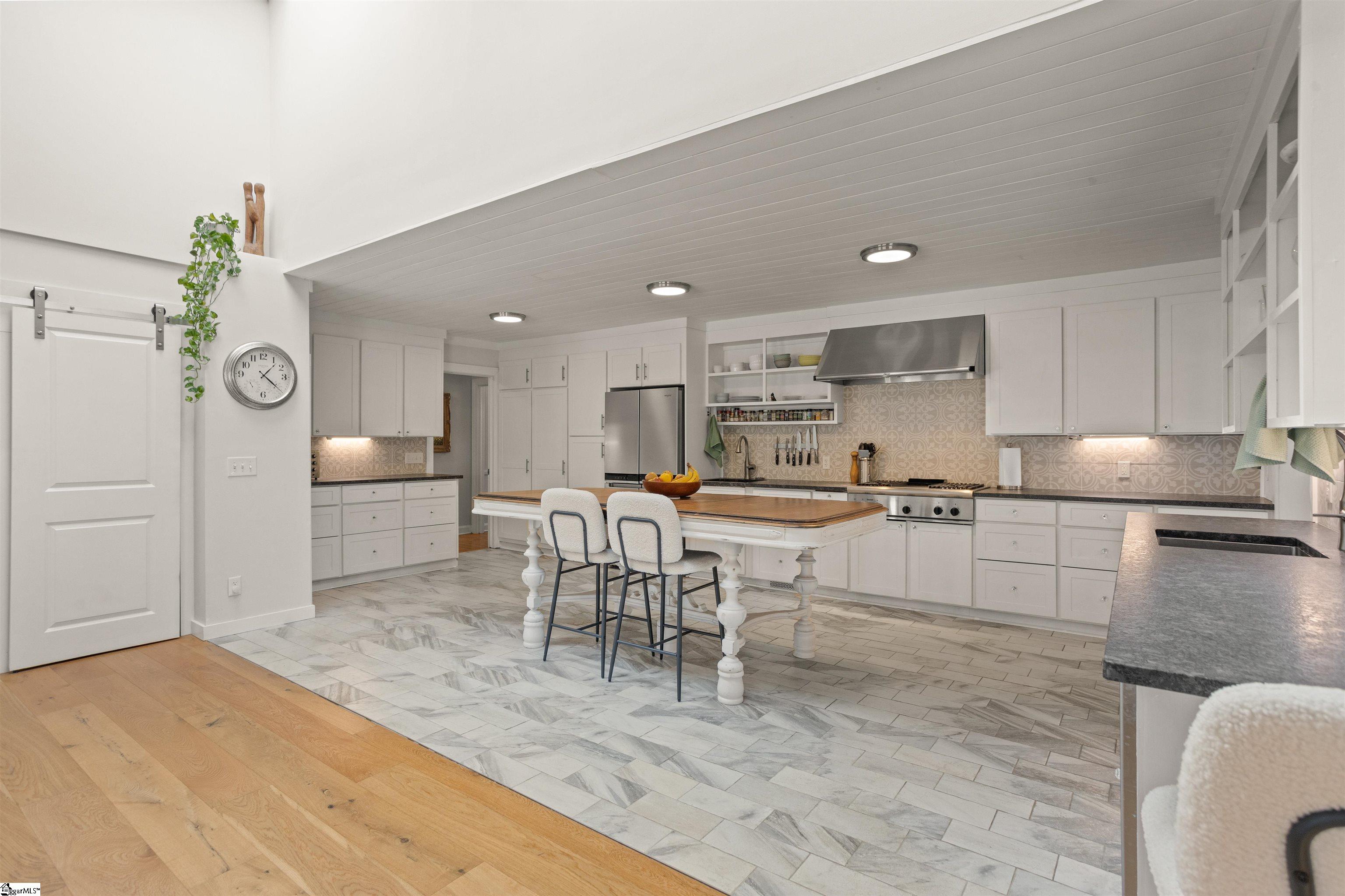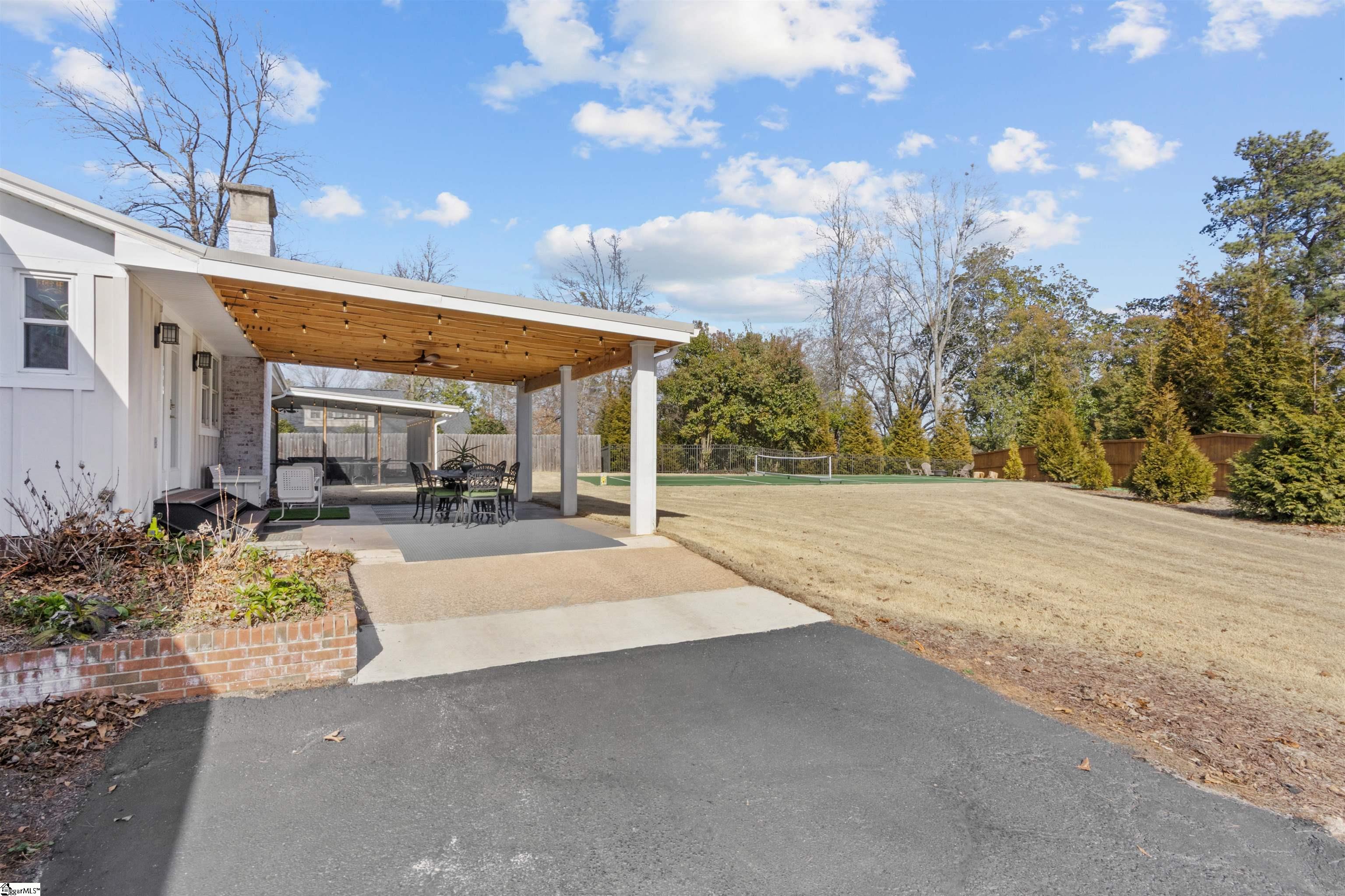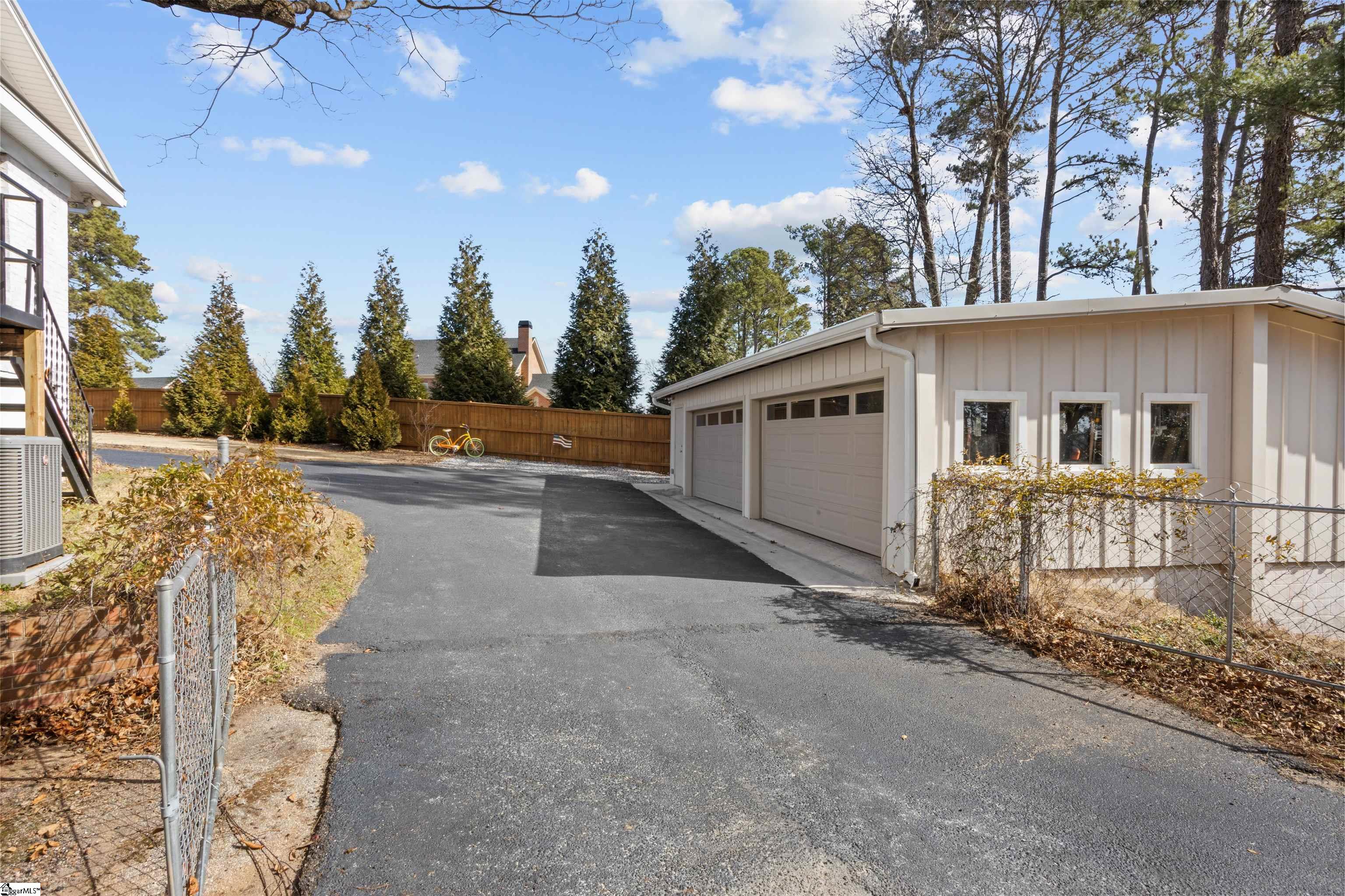 You've found it in Parkins Mill! The one with the NEW PICKLEBALL COURT, new screened porch, huge level fenced back yard & new 4-CAR DETACHED EV-ready GARAGE! 1/4 mile to Swamp Rabbit Trail, walk to Grateful Brew! 1. 11 acre level lot on QUIET STREET. Renovated & expanded, other improvements include: newer HVAC, redone granite kitchen, vaulted ceilings, new windows, encapsulated crawlspace, updated primary suite on main, all updated bathrooms, new interior paint, new Hardiplank siding, new lighting, and redone landscaping. VERSATILE living spaces! Great Room, Home office, Home Gym, Den, Music Room plus Play Room. Primary on main enjoys private sitting area, His/Hers walk in closets and bath with dual vanities, separate soaking tub and glass/tile no-threshold shower. Redone in-law suite upstairs welcomes long term guests with ease! Pre-inspected, repairs done, move-in-ready. SOLD COMPS: 1223 Parkins Mill Rd, 23 Parkins Glen Ct and 23 Stillwood