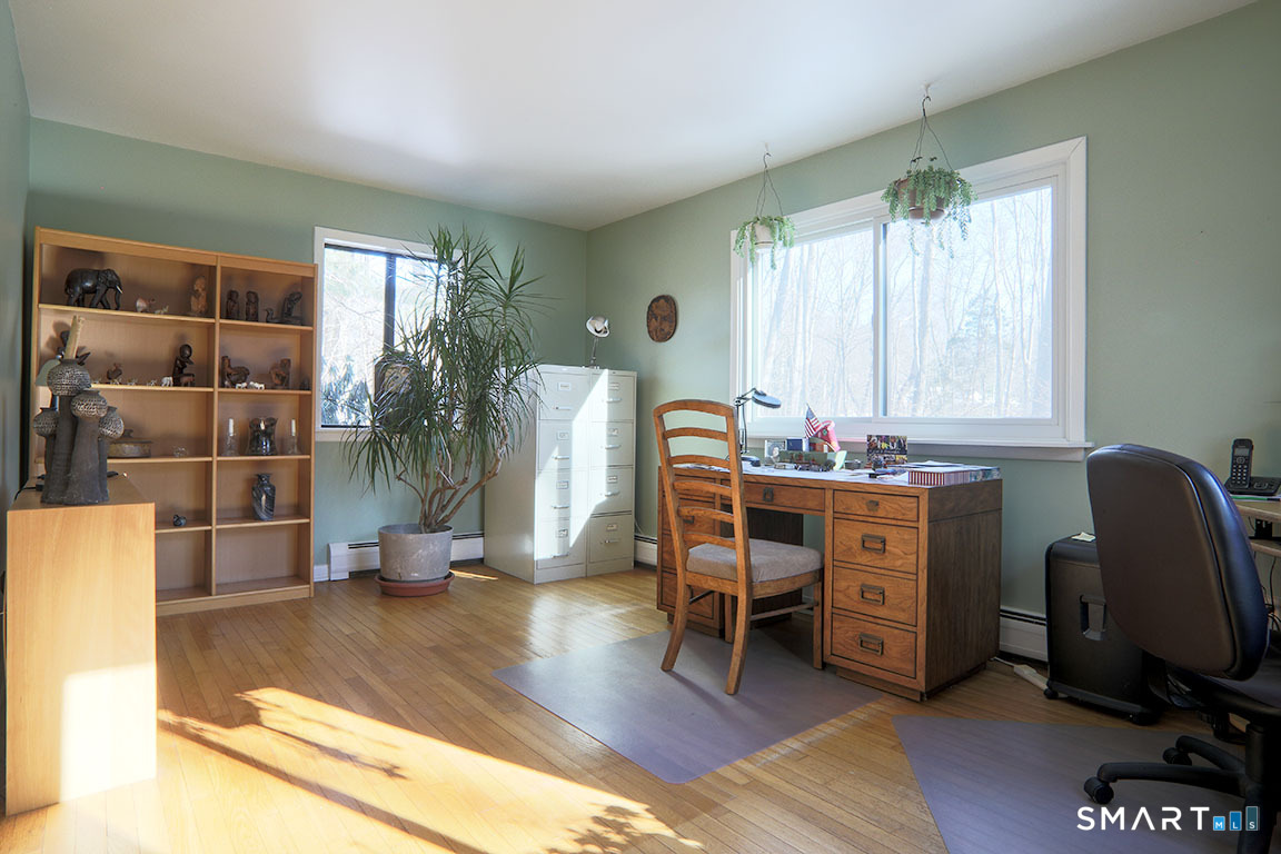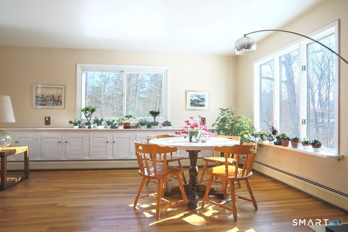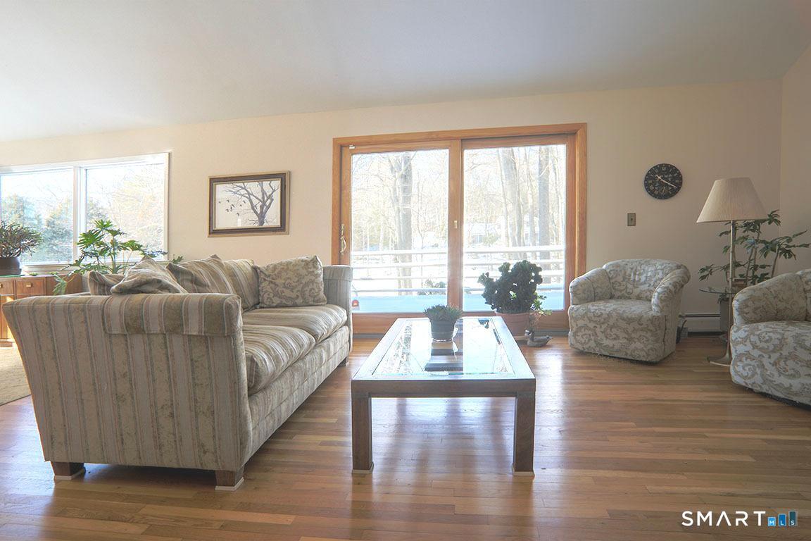 Set on Five Mile River with no flood insurance required! One level living with sunlight and nature views from the large windows in every room. One acre on one of West Norwalk's most sought after streets. Brick fireplace, cathedral ceiling and sliders to deck in the open concept living and dining rooms. Kitchen opens to family room with natural light coming in on three sides. Primary bedroom offers a private bath, walk-in closet and sliders to deck. There are two additonal bedrooms and a second bath. Hardwood floors throughout, wet bar and an oversized two car garage complete this home. The unfinished basement offers storage as well as options for additional living space to fill your needs - playroom, media room, gym, office or guest suite. Take advantage of this beautiful setting and make this house your own.