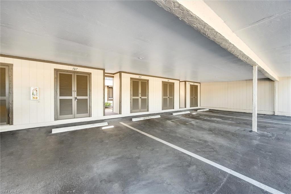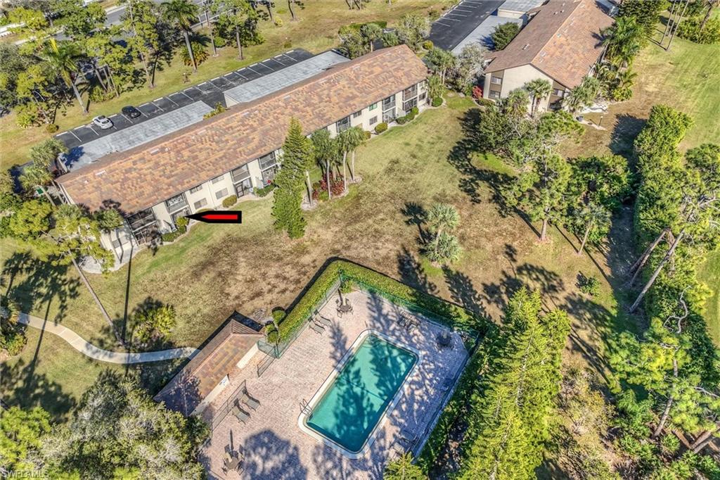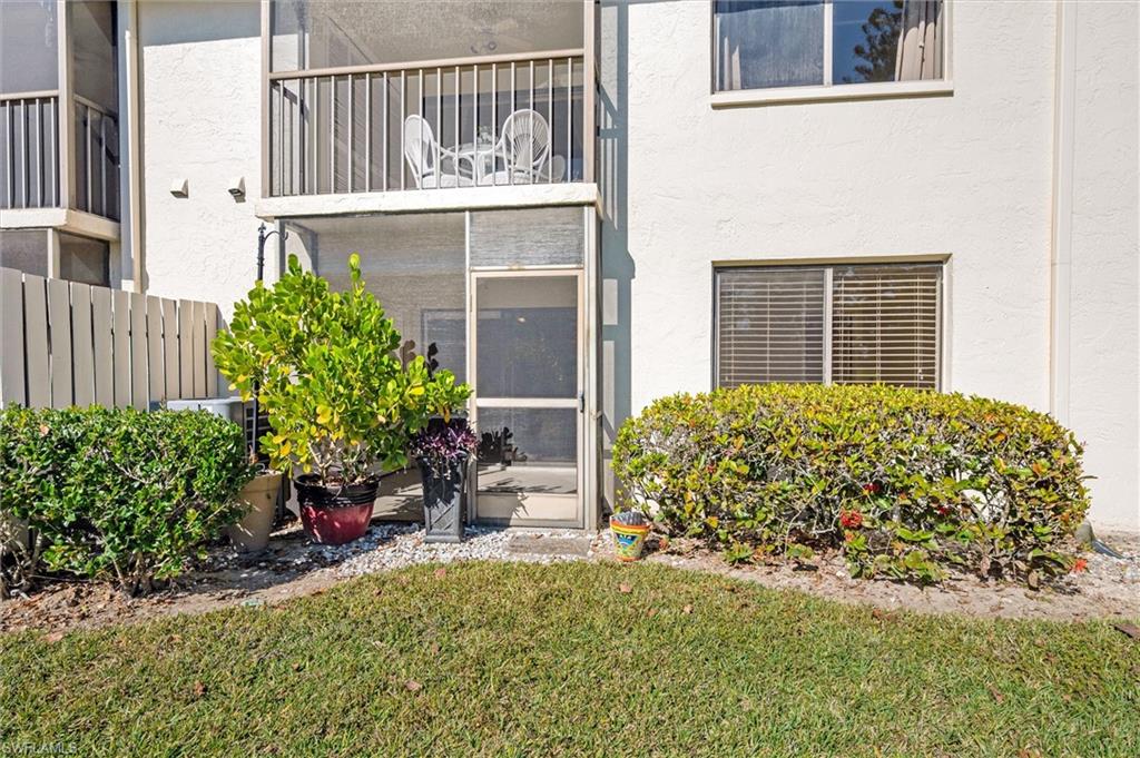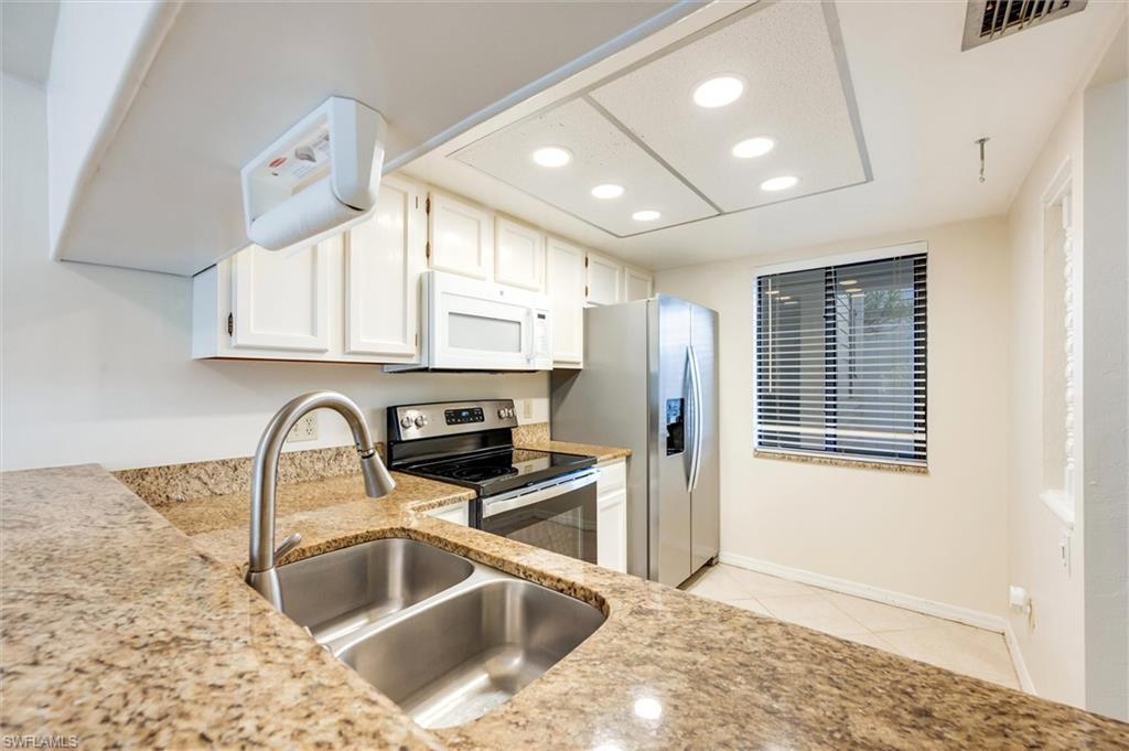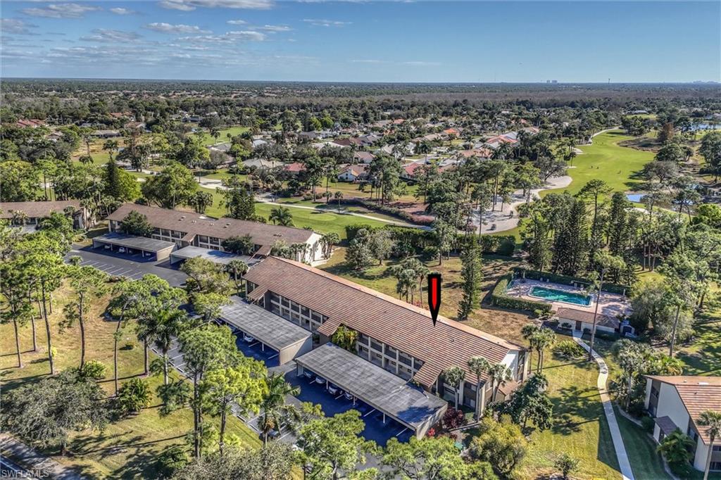 Perfect 1st floor location for easy access from carport to front door! New AC with 10 year warranty. Excellent South Naples location close to so many conveniences. This south facing condo overlooks green space, mature landscaping and is just steps from the pool. Covered carport and extra storage included. Two bedrooms and two baths. Updated master bath with dual vanities. Tile through out and granite kitchen counters. New refrigerator, stove and dishwasher and also NEW AC. Will be freshly painted early January. The buildings have a newer roof and have been freshly painted. Just minutes to downtown Naples, beaches, & Bayshore art district. This condo has never flooded.