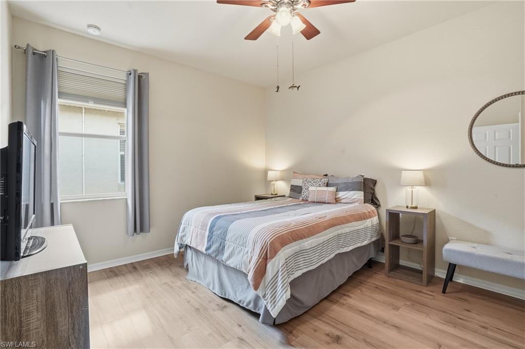 Welcome to 21699 Belvedere Lane in the highly desirable active community of Bella Terra! This completely remodeled 3-bedroom plus den, 2-bath home showcases modern upgrades and stylish finishes throughout. Luxury vinyl tile flooring runs throughout the home, complemented by plantation shutters and thoughtful design details. The fully updated kitchen features granite countertops, a large center island, beautiful tile backsplash, stainless steel appliances including a 2023 refrigerator and 2023 microwave, a wine refrigerator/cooler, and barn doors leading to the pantry. The spacious primary suite offers quartz countertops in the bathroom, updated tile in the walk-in shower, LVT flooring, and an additional custom closet system. Additional improvements include washer and dryer (2023), A/C (2023), hot water heater (2025), and accordion shutters for added storm protection and peace of mind. Enjoy peaceful water views from the screened lanai, perfect for relaxing or entertaining. Bella Terra offers resort-style amenities including a clubhouse, pool and spa, fitness center, tennis, pickleball, basketball, playground, and more. This move-in ready home combines modern luxury, functional living space, and exceptional community amenities.