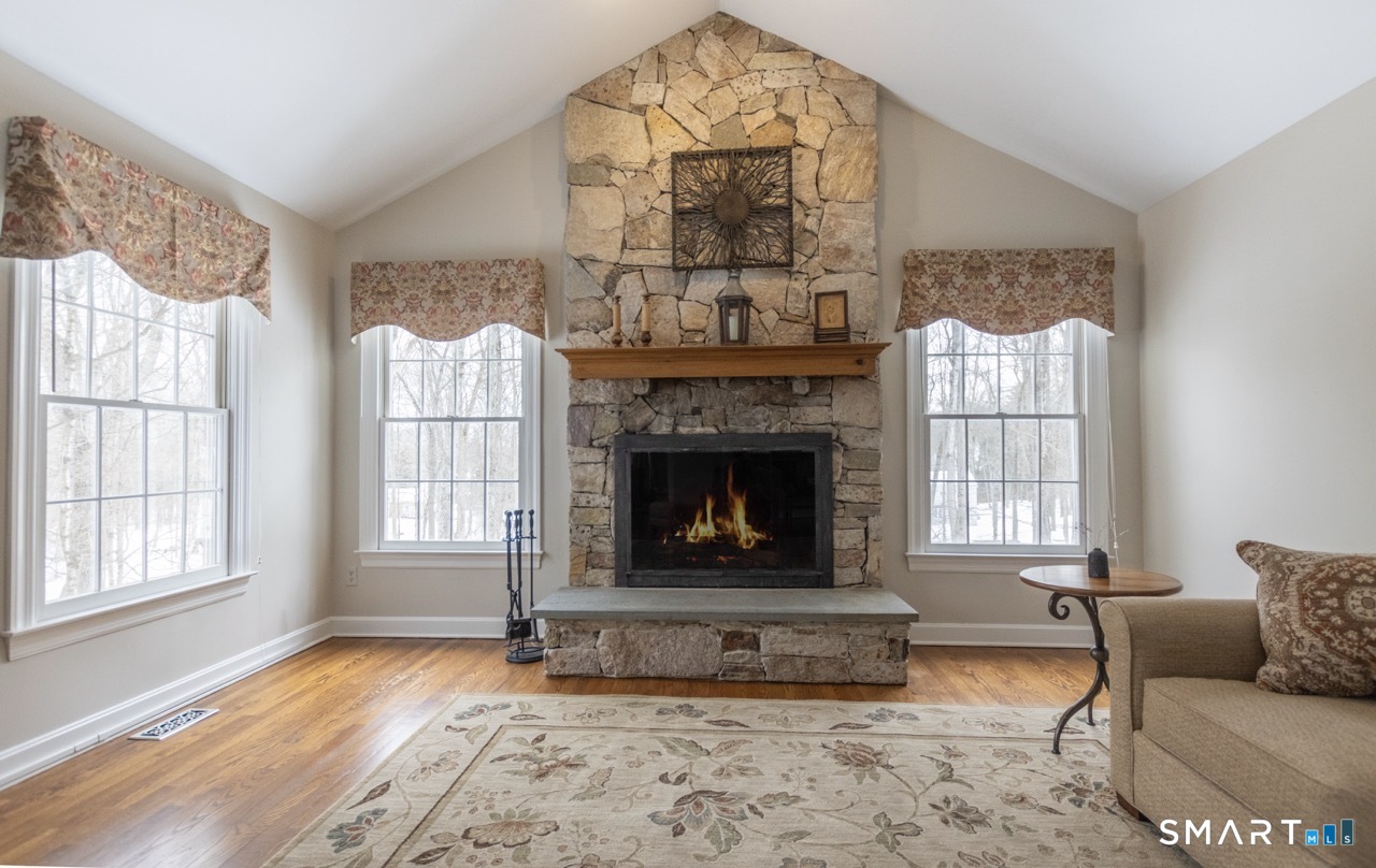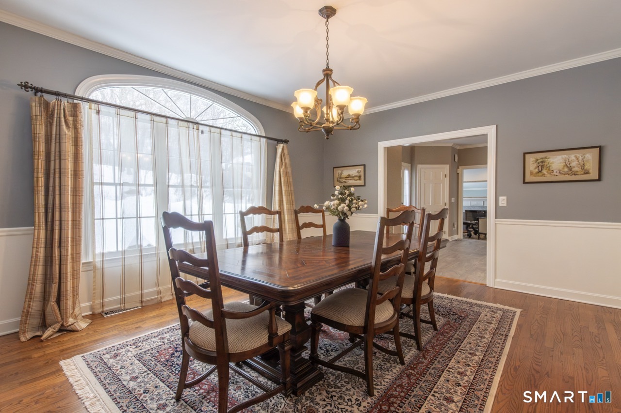 This beautifully updated Munson-built Colonial is set on a fabulous, landscaped acre at the end of a quiet cul-de-sac, just down the road from Tashua Knolls Recreation Center, which offers championship golf, a pool complex with a splash pad, lit basketball, pickleball, tennis, and a playground. A rare blend of expert craftsmanship and high-end updates, this luxurious home is a dream come true in a desirable neighborhood. From the foyer to the 9-foot and vaulted ceilings, solid wood doors, custom moldings, and oversized windows, this elegant home features high-end architecture and gorgeous updates throughout. The expansive, level 1-acre yard is framed by classic stone walls & is ideal for large gatherings and features an irrigation system to keep the lawn lush and green. The beautifully updated kitchen features custom cabinetry, granite counters, and stainless appliances, including a hooded vent over the gas range. The eat-in area provides direct access to the oversized, double Trex-style decks and overlooks the gorgeous backyard. The main level also features a fabulous beverage center connecting the formal living room, great room, and office, creating exceptional flow. Two fireplaces provide warmth and ambiance-a gas fireplace in the sunken living room and a wood-burning fireplace in the vaulted great room off the kitchen. The formal dining room is perfect for hosting, while the office with high ceilings & architectural detailing makes working from home a pleasure. Upstairs, four large bedrooms feature gleaming hardwood floors, wide hallways, a gracious landing, ample walk-in closets, and beautiful moldings. The primary suite includes a spa-like, updated bath with double sinks, granite countertops, an oversized tile shower, and a large walk-in closet designed for easy organization. Additional highlights include a nice mudroom off the garage, zoned natural gas heat and central air, a walk-in attic providing great storage or future expansion, and a sunny finished walk-out lower level offering approximately 1, 363 square feet of versatile living space, complete with a spacious family room, home gym, half bath, rec room with pool table (included), and abundant storage. A home of quality construction, pride of ownership, and thoughtful upgrades, set on a desirable Tashua cul-de-sac, this beauty offers more space, more privacy, and more enjoyment in fabulous Trumbull, with an award-winning GreatSchools rating of 10/10. Don't miss this rare and delightful move-in-ready gem!