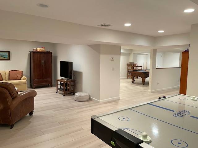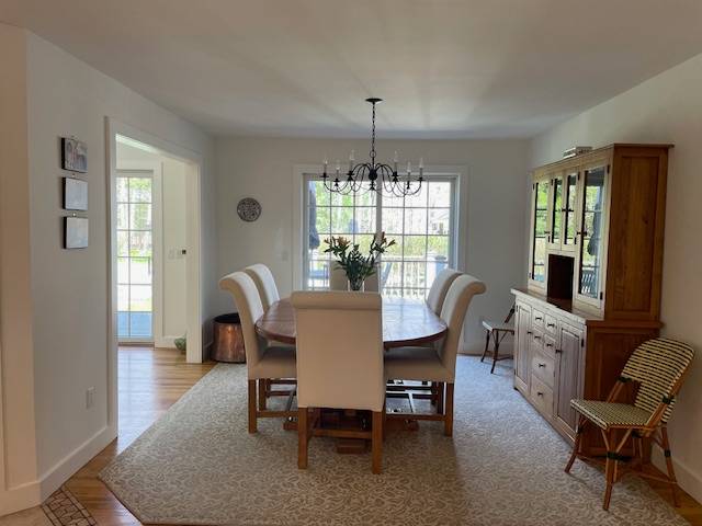 Rental Registration #: 18-617 Great home bordering Amagansett features 2, 800sf of living space with a light filled living room with fireplace, dining area, eat in kitchen and den. In addition there is a ground floor guest bedroom and bath, powder room, and laundry room. Upstairs features two guest bedrooms and shared bath, huge primary bedroom with en-suite bath and office. In addition there is a fully finished lower level with pool table, exercise are and media room. Outside are beautifully landscaped grounds, privacy, gunite heated pool and outdoor shower. Just a short distance from tennis courts, the hamlet of Amagansett and the Atlantic Ocean. .