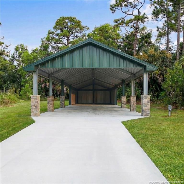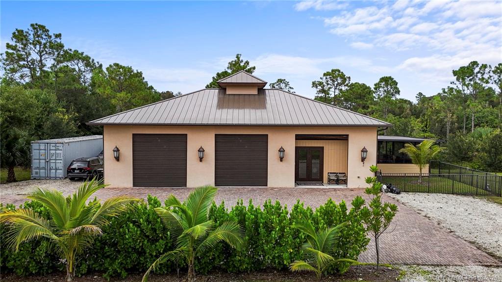 If you are a maverick and think independently, this 5 acres is for YOU! Offering the rare combination of privacy, scale, and unbeatable convenience. Anchoring the property is a 40’x60’ CBS climate controlled fortress featuring 20’ ceilings and three 12’ electric roll-up doors, ideal for luxury vehicles, toys or a dream workshop. Attached is a charming 1-bed 1-bath apartment (approx 865 SF) with kitchen, living area, laundry, plus a screened outdoor sitting area—perfect for guests, extended stays, or on-site living while you build. The entire estate is fully secured with an electronic gate and connected to city water & sewer, plus an additional water/sewer hook-up already in place for a future residence. The seller holds a ready-to-pick-up building permit for a 3, 152 sq ft luxury pool home with a 1, 300 sq ft covered patio and pool, and there is also a site plan allowing for a custom estate up to 6, 900 sq ft—all within your own private oasis. Be a Maverick!