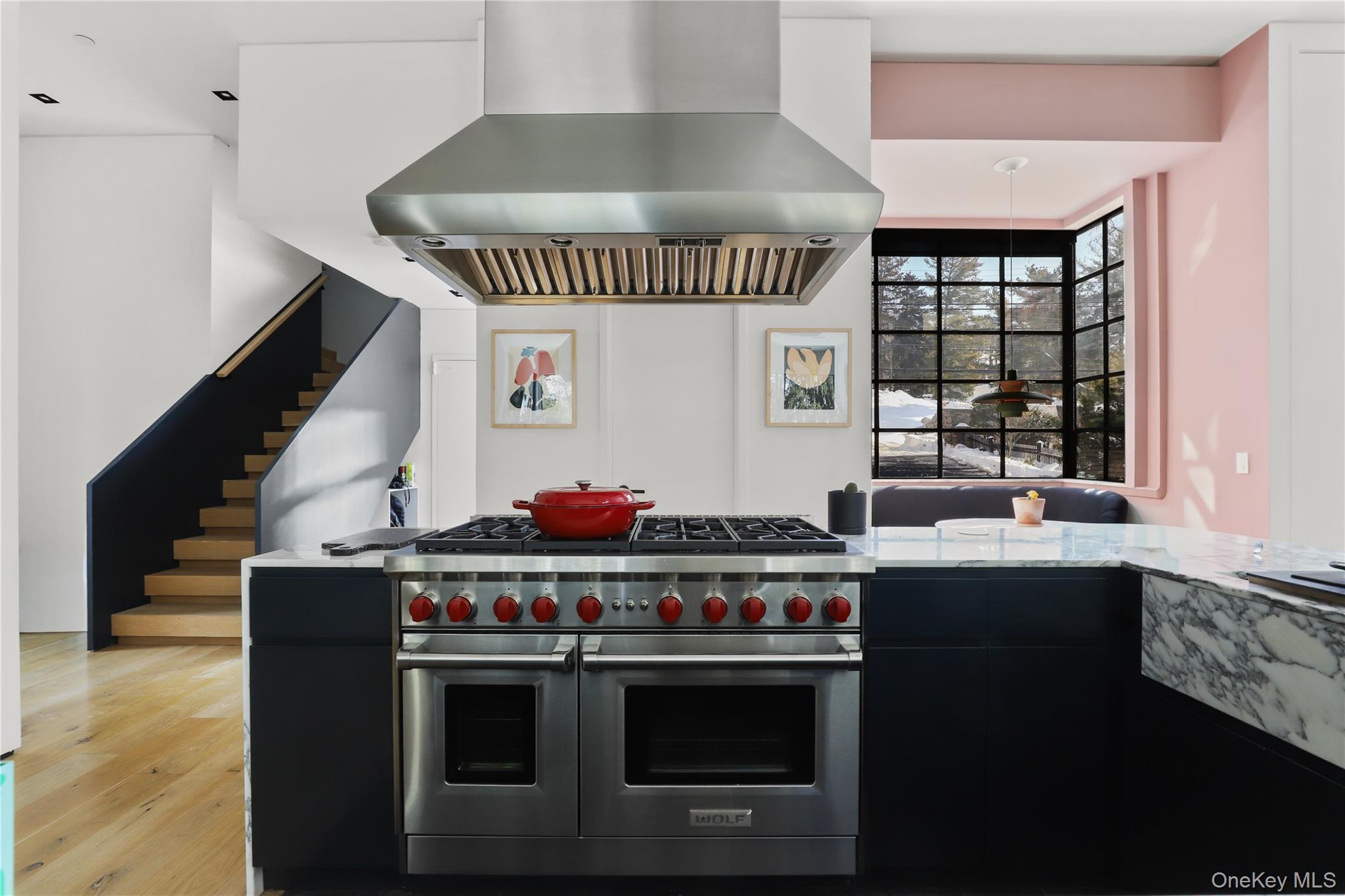 A rare architectural statement in the heart of Irvington village, this custom-built 2020 modern residence blends steel, stone, glass, and warm wood into a private sanctuary just 0. 2 miles from Metro-North and moments from the Hudson River village lifestyle. Set on 0. 31 acres amid mature trees, this 5-bedroom, 5. 5-bath home was thoughtfully designed to maximize light, flow, and privacy. A dramatic double-height entry introduces floating steel-and-oak stairs and expansive sightlines through walls of glass. The open-concept main level is anchored by a high-performance chef’s kitchen featuring custom cabinetry, Arabescato stone counters, professional Wolf and Sub-Zero appliances, and a fully outfitted butler’s pantry. Radiant floors and La Cantina folding doors create seamless indoor-outdoor living, opening to a private terrace ideal for entertaining. Upstairs, the primary suite floats above the treetops, offering exceptional privacy, a fireplace, and serene natural views. The spa-level marble bath includes a steam shower, freestanding soaking tub, double vanity, and a custom-designed dressing room with center island. Two additional bedrooms feature en-suite baths, while a separate guest suite provides flexibility for extended stays, multigenerational living, or a dedicated work-from-home retreat. The expansive walk-out lower level offers exceptional versatility, ideal for a media lounge, wellness studio, gym, creative workspace, or additional guest quarters with direct access to landscaped grounds. Designed for comfort and efficiency, the home includes 14-zone climate control, smart-home integration, heated gutters, ENERGY STAR windows and systems, and an oversized heated garage. Modern homes of this caliber, offering walk-to-train convenience, refined architectural design, and turnkey 2020 construction are rarely available in Irvington. A distinctive opportunity to own a true statement home in Westchester County.