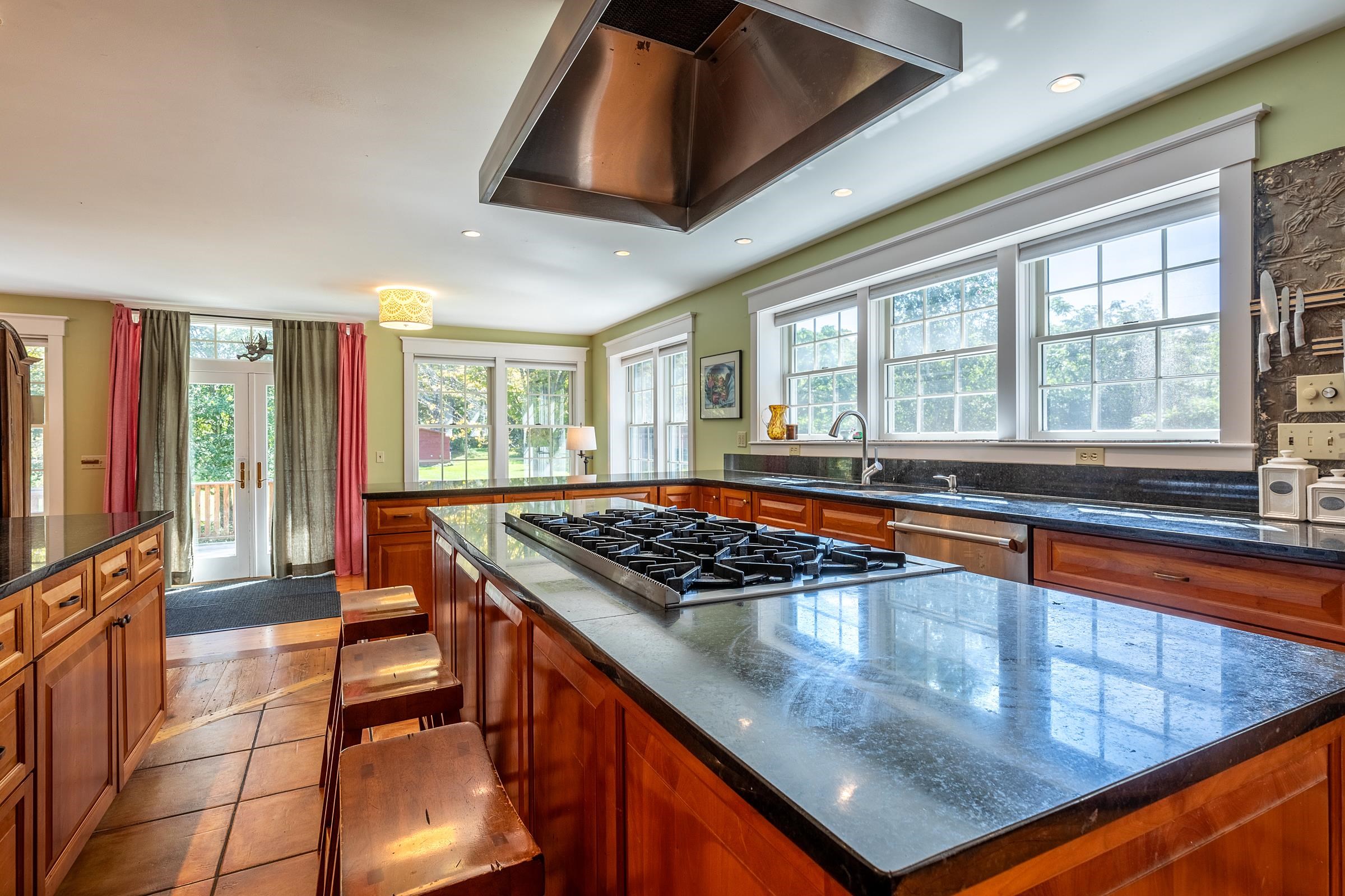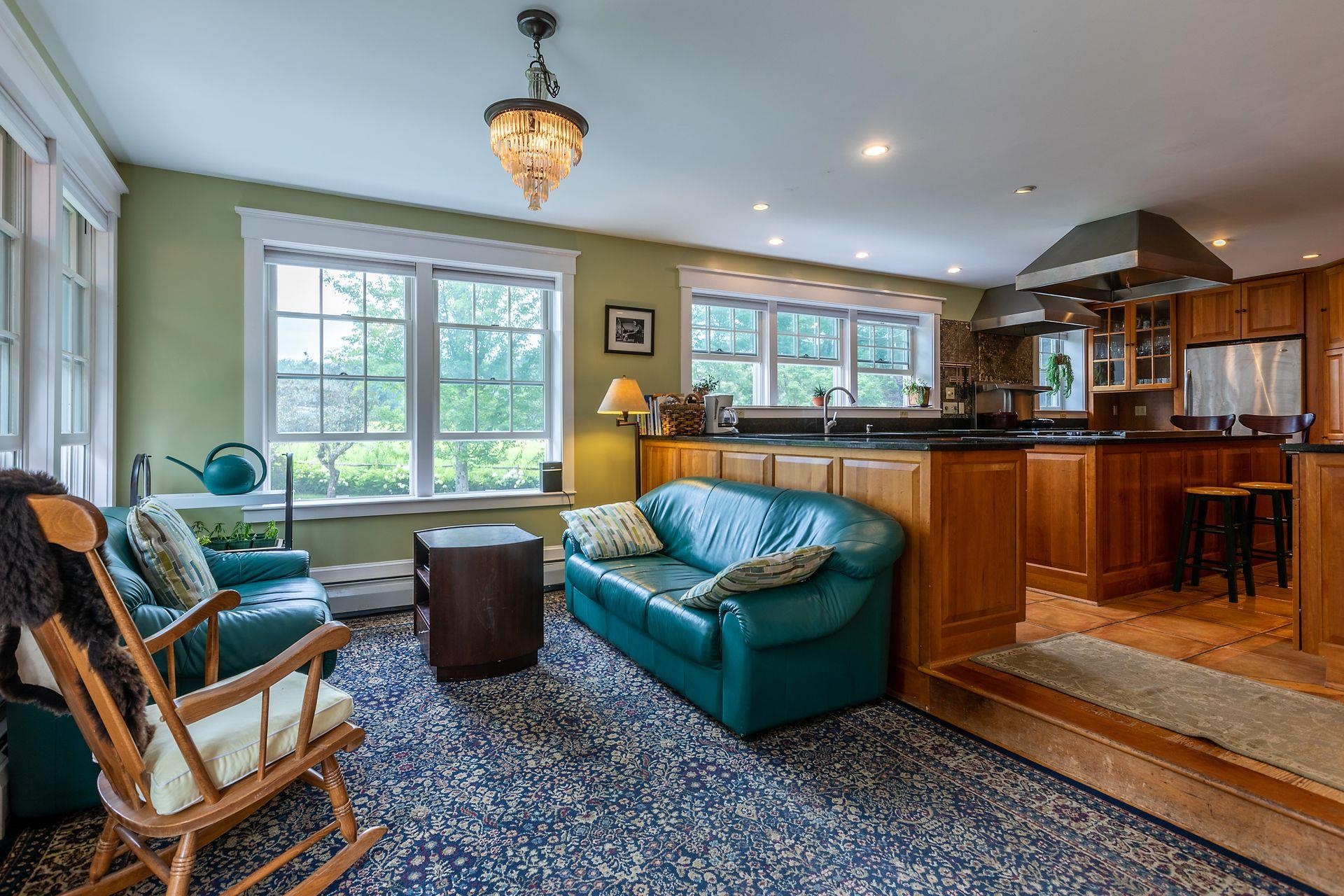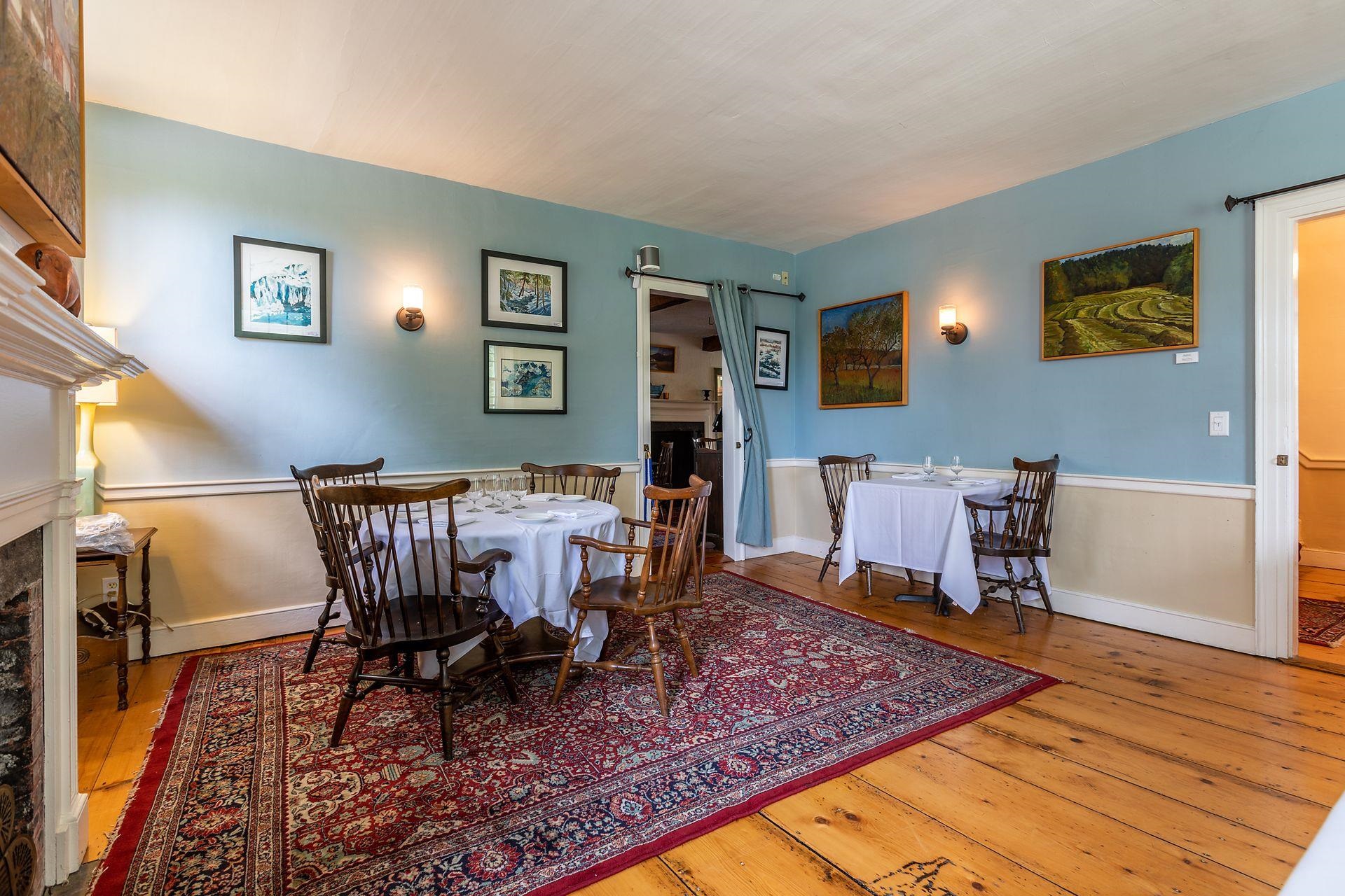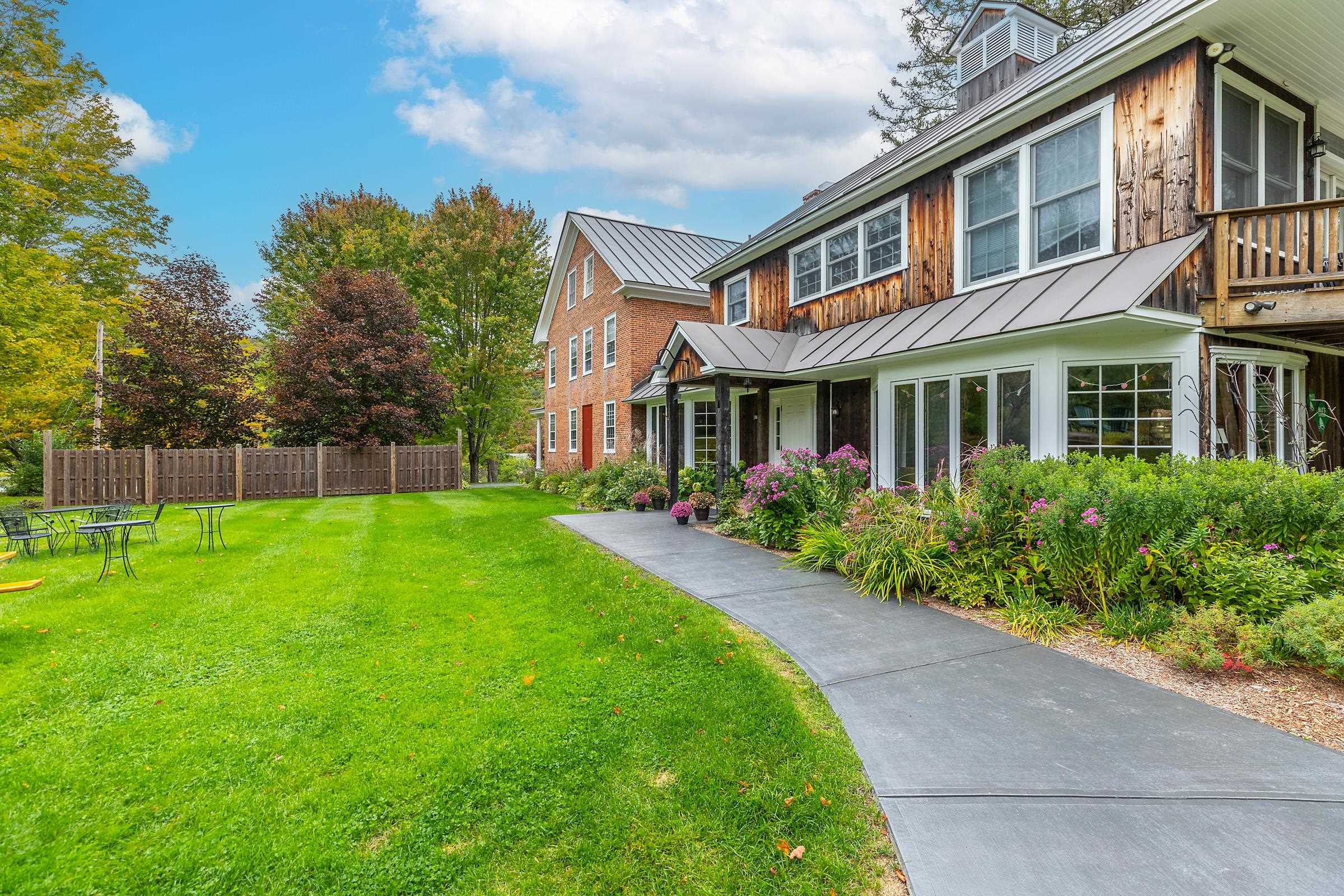 The Barnard Inn has been a cherished destination for gracious hospitality and exquisite dining for generations, housed in the historic 1796 Brick Federal homestead that was transformed into a popular gathering spot over 60 years ago. The Inn, spacious and elegant, is currently operated as an event destination venue by the chef-owner, has thrived under his guidance and that of talented and innovative owners since its establishment. The Inn featured original fireside dining rooms complemented by a rustic tavern that serves both classic and inventive 'pub' cuisine. The professional kitchen has undergone a thorough renovation, enhancing its efficiency and allowing for a diverse range of culinary styles and service requirements. Marketing opportunities abound, including the present use hosting of large weddings and events in both indoor and outdoor settings on the expansive lawns, which are adorned with flowering shrubs, mature shade trees, and natural landscaping. The main floor of the Inn has been reserved for public use, featuring the professional kitchen, tavern, and dining areas. The second and third floors offer private residential accommodations, including 5 bedrooms, 2 bathrooms, and a beautifully designed open-concept country kitchen that leads to a spacious deck with views of the surrounding hills and fields. The early post & beam barn has been repurposed from agricultural use to serve as a venue for events and short-term rentals, including a 'hot' (or not) yoga studio located on one of the three levels. The main level, which features an overlooking hay loft, can host groups of dinner guests or 100 for casual events. A fully permitted 2-bedroom building site overlooking the spring-fed pond has been approved with additional sites potentially available through the reallocation of the existing septic system. The location is ideal for ‘glamping’ with nearby Silver Lake, miles of trails and outdoor recreational activities drawing tourists throughout the year.
