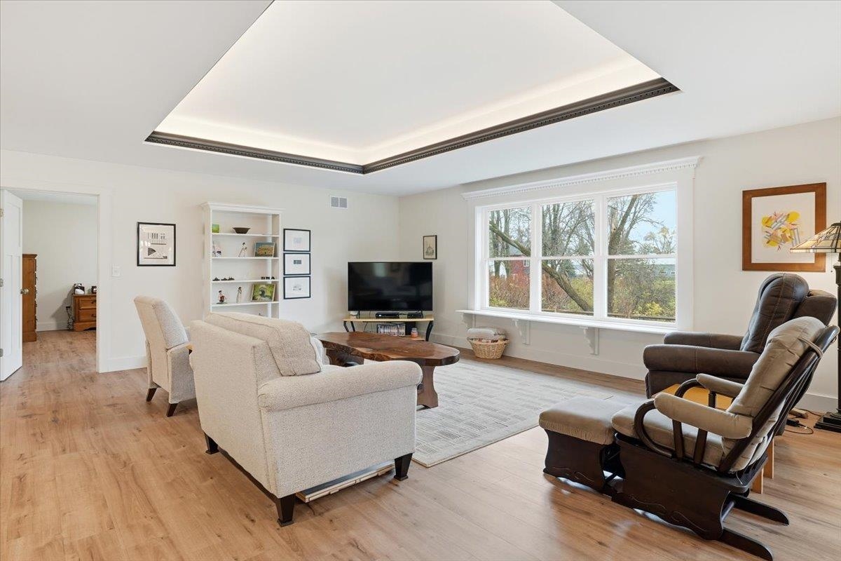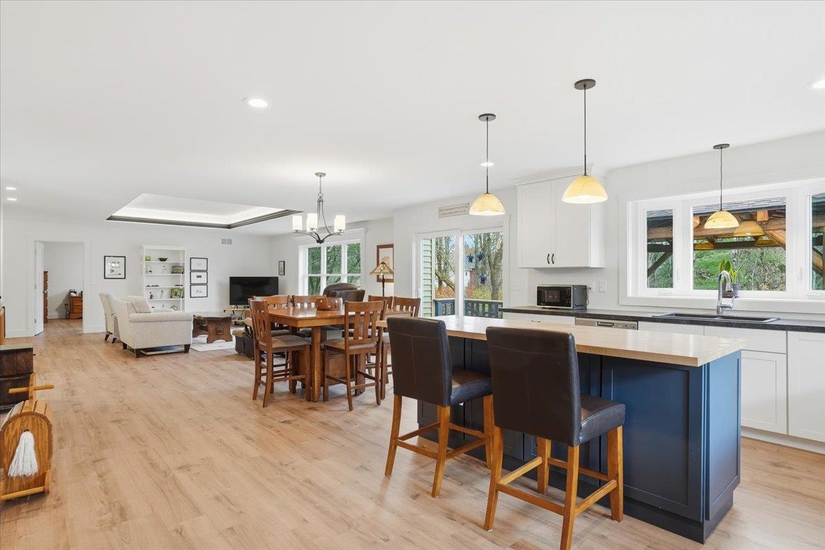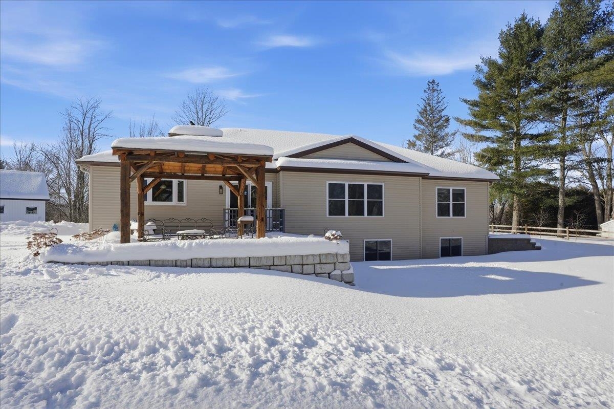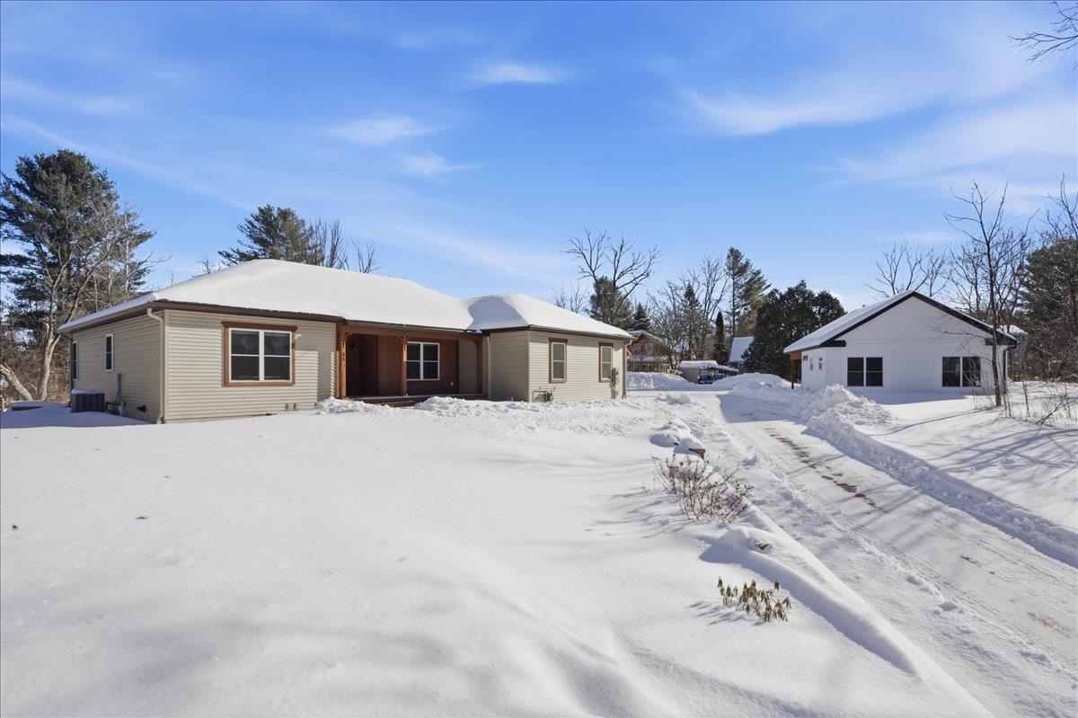 Unique opportunity to own this wonderful one-level home offering over 3, 800 sq. ft. , plus a detached 1, 000 sq. ft. ranch-style ADU guest house with separate utilities. The guest home features one bedroom, one bath and an oversized one-car garage—perfect for extended family, guests, rental income, or Airbnb. The main house boasts a sunny, open floor plan with a spacious kitchen featuring custom cabinetry, stainless appliances, and an oversized center island. The kitchen opens to a stunning great room with a decorative tray ceiling, accent lighting, and large windows that fill the space with natural light. The bright primary suite includes a private tiled bath with a walk-in shower, walk-in closet, and convenient washer and dryer hookups. Two additional guest bedrooms—one with French doors—offer flexibility for use as an office or den. The finished lower level with garden windows includes a bedroom, ¾ bath, oversized family room, theater room, and two storage areas. Adding to the charm, you’ll find an 1860 reclaimed post-and-beam barn (22'×32') relocated from Jericho, featuring a second floor and lean-to for additional storage. Enjoy a peaceful country feel—sip your morning coffee on the front porch while admiring the church steeple and surrounding trees, or entertain on the back patio with extensive stonework, a post & beam pergola, and beautiful landscaping. You’ll love the convenience of being just minutes to Williston Village, bike path and schools