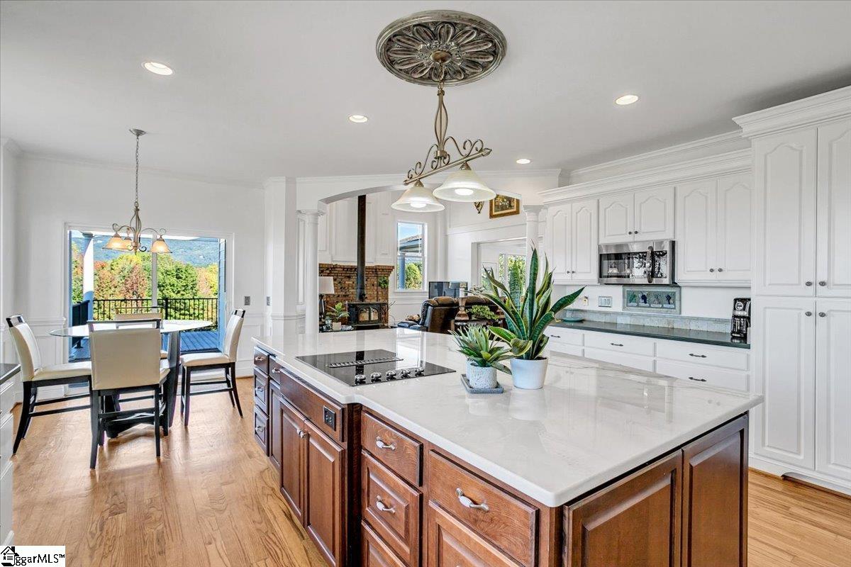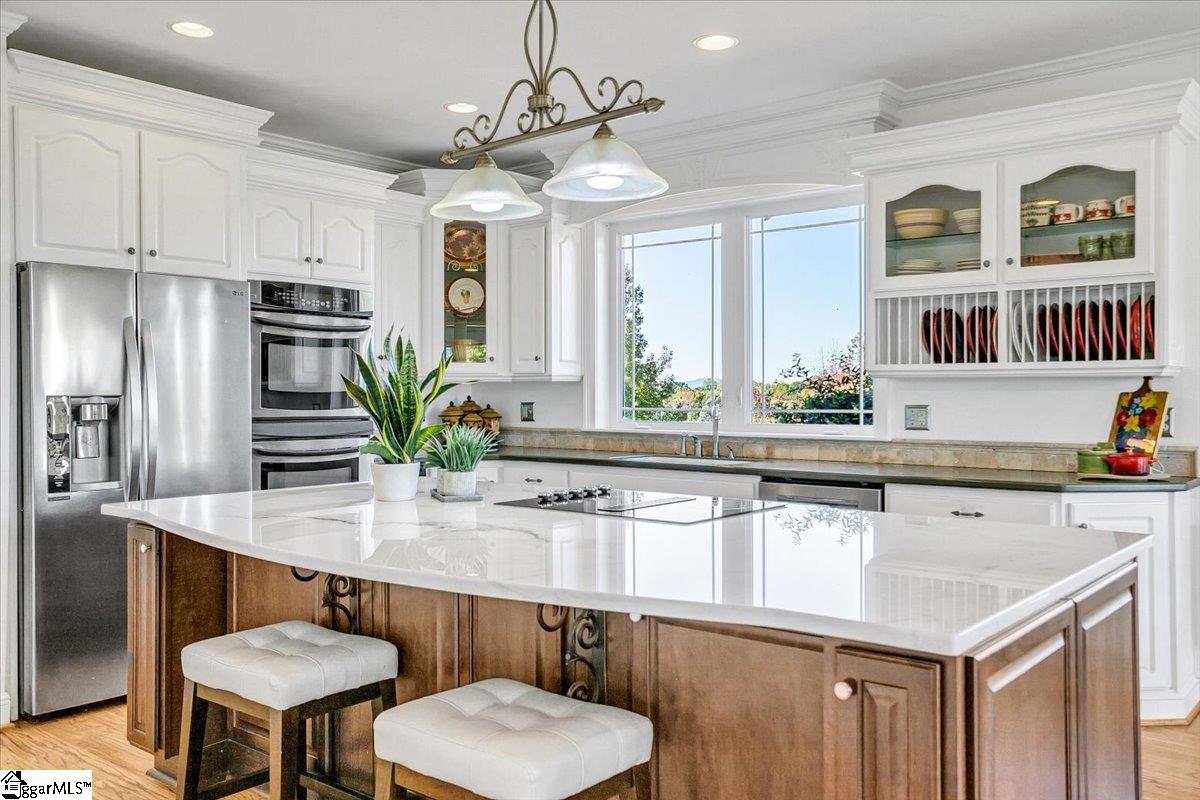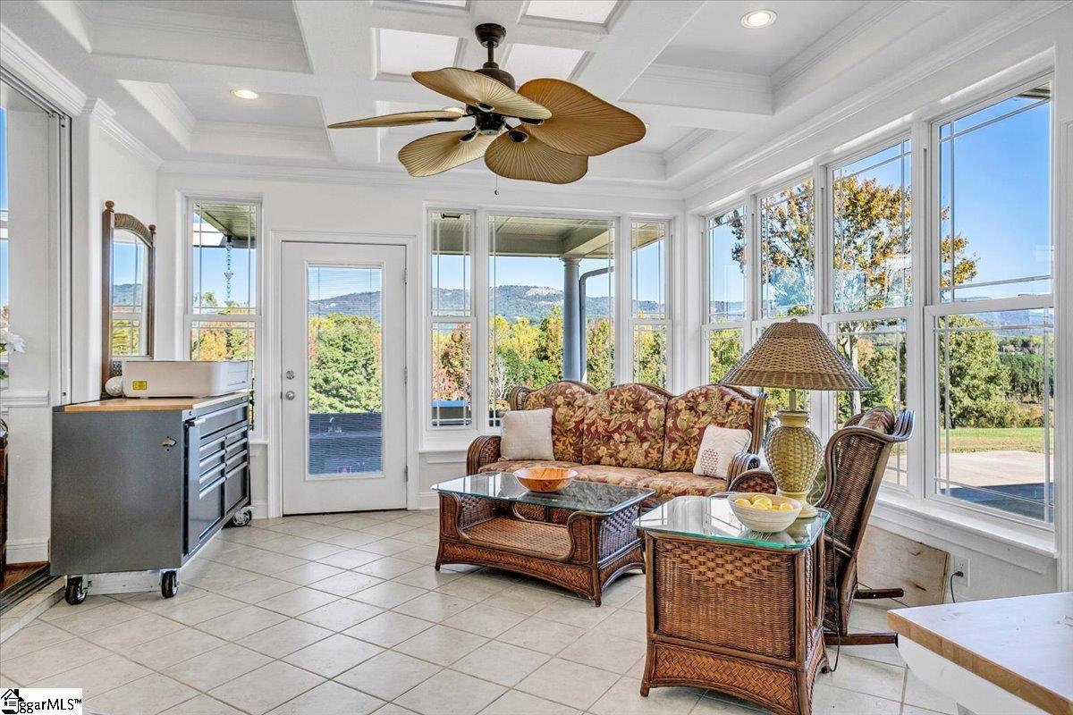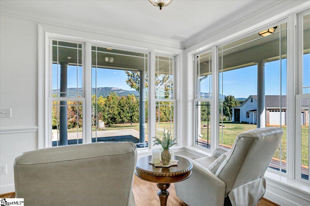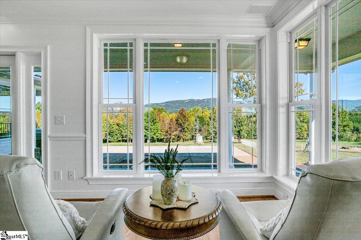 Welcome to 158 Glassy Road – A Rare Mountain View Estate in Landrum, South Carolina With over 15 years in the real estate industry, few properties have left such a lasting impression as this remarkable private estate nestled in the foothills of the Blue Ridge Mountains. Located in the scenic town of Landrum, SC, this gated 16-acre property delivers some of the most breathtaking and peaceful mountain views you’ll ever experience — visible from nearly every room in the home, including the laundry room. As you enter the residence from the expansive 95-foot wraparound porch, you're immediately greeted by beautifully refinished hardwood floors and an elegant curved staircase, with a second staircase located near the kitchen and great room for added functionality. The attention to craftsmanship is evident throughout the home, from the rich wood textures to the thoughtfully designed living spaces. The heart of the home is a spacious custom kitchen featuring a striking quartz-topped center island, wall ovens, and a downdraft cooktop. It flows seamlessly into a light-filled breakfast nook and an adjacent casual dining space under a vaulted, timber-framed ceiling — ideal for relaxed meals with stunning mountain backdrops. Nearby, the two-story great room showcases a real wood-burning stove with a brick hearth, providing both rustic charm and practical use during winter months or power outages. Entertain guests in the formal dining room or gather around the Tuscan-inspired wet bar, complete with wine storage, a beverage refrigerator, and a convenient drawer-style dishwasher. Every element has been designed to blend comfort with sophistication. The main-level primary suite spans the depth of the home and includes a cozy sitting area with panoramic views, a fireplace, and direct access to the porch — a peaceful retreat after a long day. Upstairs, you’ll find a private guest suite featuring a kitchenette, dining area, and ensuite bath — ideal for multi-generational living or long-term guests. In total, the home includes five bedrooms. One is currently used as a home gym, another features a charming playhouse loft, and yet another has direct access to a hobby room. A loft-style office sits at the top of the secondary staircase, while one of the upstairs bedrooms enjoys its own private covered balcony overlooking the grounds. Additional highlights include: A spacious sunroom filled with natural light An outdoor kitchen (15’x12’) with built-in grill and sink A custom firepit with adjacent brick firewood cribs A massive 60’x48’ detached garage with electricity and a large workshop area A 40’x15. 6’ RV garage with a 12’ tall RV entry access A peaceful barn area perfect for keeping goats or creating your dream hobby farm This extraordinary estate blends refined living with natural beauty, offering peace, privacy, and the kind of scenic grandeur rarely found. Whether you're sipping coffee on the porch, enjoying the fall foliage, or stargazing by the fire, life at 158 Glassy Road is nothing short of exceptional.