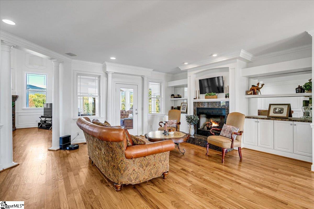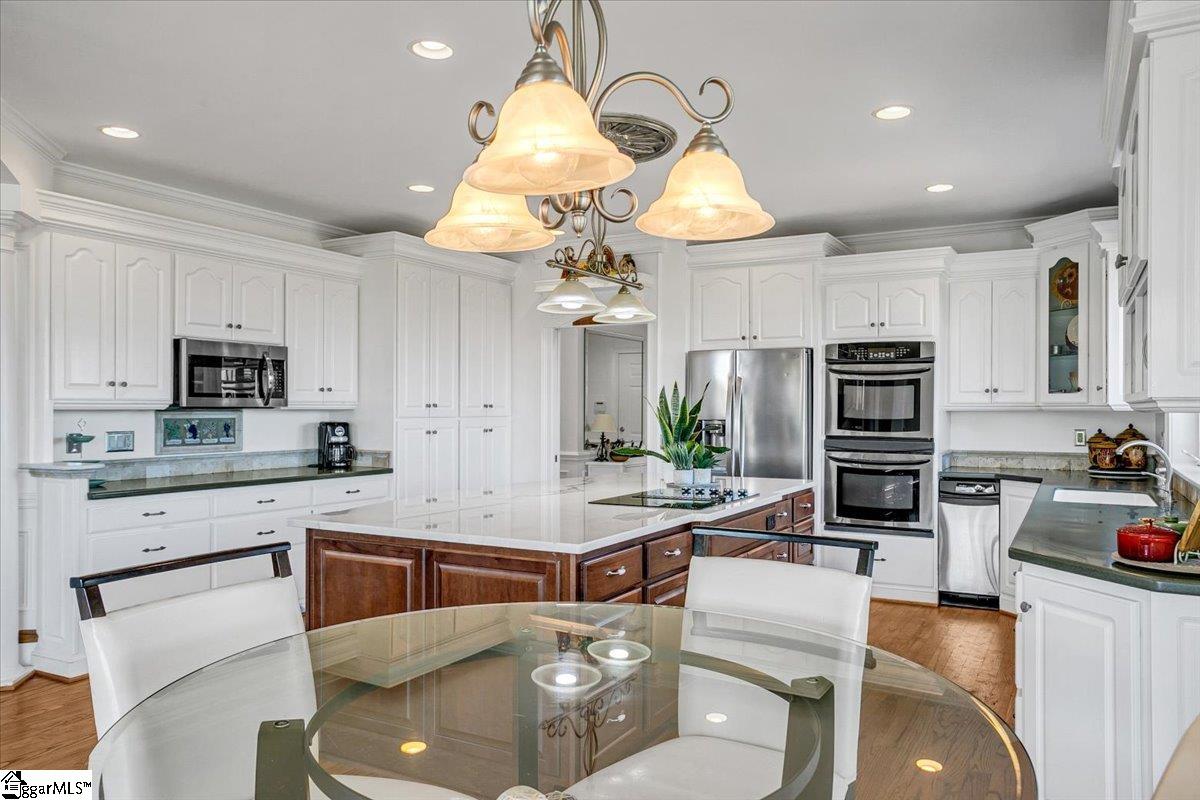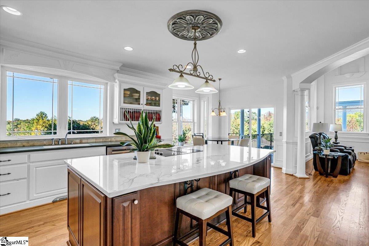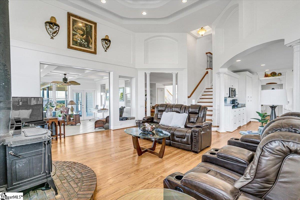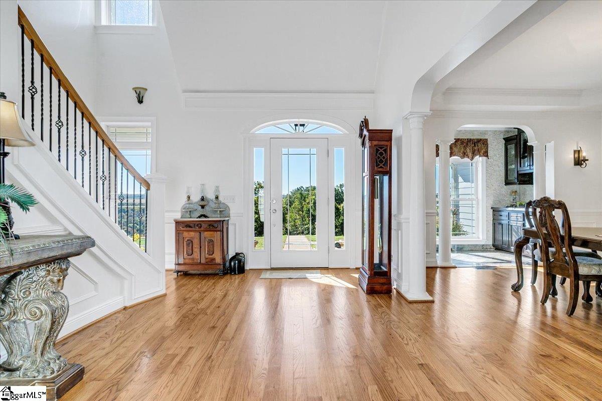 Welcome to 158 Glassy Road – A Rare Mountain View Estate in Landrum, South Carolina With over 15 years in the real estate industry, few properties have left such a lasting impression as this remarkable private estate nestled in the foothills of the Blue Ridge Mountains. Located in the scenic town of Landrum, SC, this gated 16-acre property delivers some of the most breathtaking and peaceful mountain views you’ll ever experience — visible from nearly every room in the home, including the laundry room. As you enter the residence from the expansive 95-foot wraparound porch, you're immediately greeted by beautifully refinished hardwood floors and an elegant curved staircase, with a second staircase located near the kitchen and great room for added functionality. The attention to craftsmanship is evident throughout the home, from the rich wood textures to the thoughtfully designed living spaces. The heart of the home is a spacious custom kitchen featuring a striking quartz-topped center island, wall ovens, and a downdraft cooktop. It flows seamlessly into a light-filled breakfast nook and an adjacent casual dining space under a vaulted, timber-framed ceiling — ideal for relaxed meals with stunning mountain backdrops. Nearby, the two-story great room showcases a real wood-burning stove with a brick hearth, providing both rustic charm and practical use during winter months or power outages. Entertain guests in the formal dining room or gather around the Tuscan-inspired wet bar, complete with wine storage, a beverage refrigerator, and a convenient drawer-style dishwasher. Every element has been designed to blend comfort with sophistication. The main-level primary suite spans the depth of the home and includes a cozy sitting area with panoramic views, a fireplace, and direct access to the porch — a peaceful retreat after a long day. Upstairs, you’ll find a private guest suite featuring a kitchenette, dining area, and ensuite bath — ideal for multi-generational living or long-term guests. In total, the home includes five bedrooms. One is currently used as a home gym, another features a charming playhouse loft, and yet another has direct access to a hobby room. A loft-style office sits at the top of the secondary staircase, while one of the upstairs bedrooms enjoys its own private covered balcony overlooking the grounds. Additional highlights include: A spacious sunroom filled with natural light An outdoor kitchen (15’x12’) with built-in grill and sink A custom firepit with adjacent brick firewood cribs A massive 60’x48’ detached garage with electricity and a large workshop area A 40’x15. 6’ RV garage with a 12’ tall RV entry access A peaceful barn area perfect for keeping goats or creating your dream hobby farm This extraordinary estate blends refined living with natural beauty, offering peace, privacy, and the kind of scenic grandeur rarely found. Whether you're sipping coffee on the porch, enjoying the fall foliage, or stargazing by the fire, life at 158 Glassy Road is nothing short of exceptional.