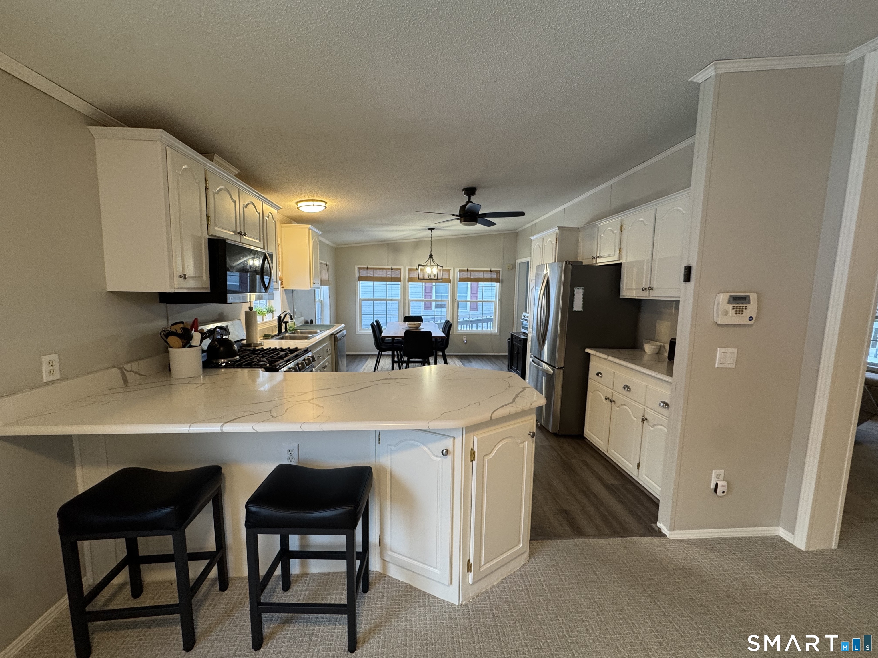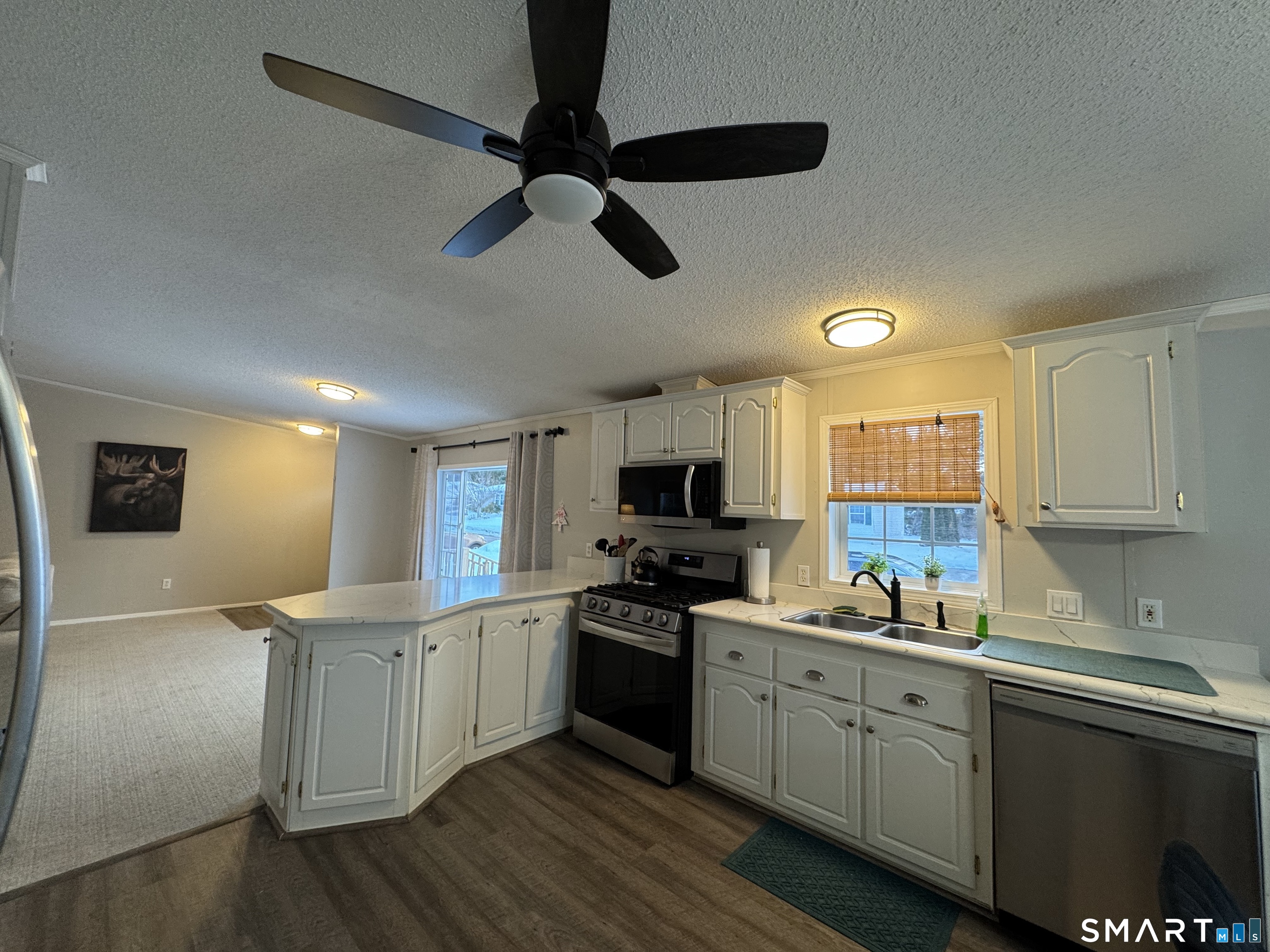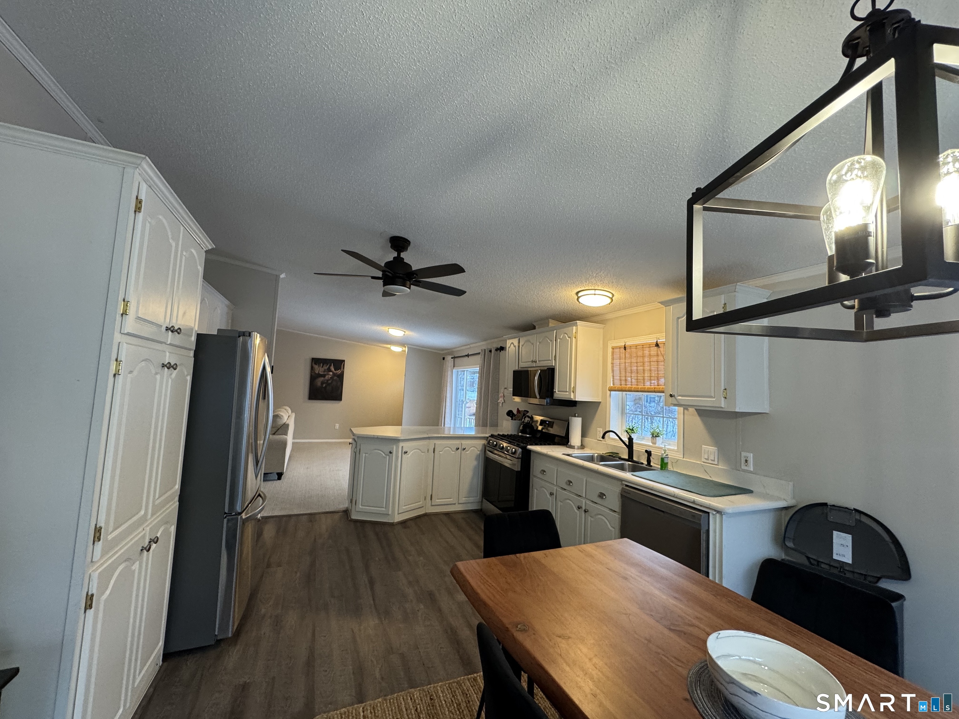 Welcome to this beautifully updated and impeccably maintained double-wide home offering 1, 620 square feet of modern, comfortable living. With about $35, 000 in thoughtful upgrades since purchase, this home is truly move-in ready and designed for both style and convenience. Step inside to a spacious, open layout that feels airy, welcoming, and immaculate throughout. The updated kitchen features quartz countertops, stainless steel appliances, new lighting fixtures, and fresh paint - creating a clean, contemporary space perfect for everyday living or entertaining. The primary suite offers comfort and functionality with a walk-in closet and a private en suite bath complete with washer and dryer for ultimate convenience. Built-ins add character and smart storage, while central air and a new hot water heater provide peace of mind year-round. Outside, enjoy a deck ideal for grilling or hosting guests, complete with a ramp for easy accessibility. A storage shed offers additional space for tools, hobbies, or seasonal items. Perfectly located near shopping, restaurants, parks, Windham golf course, and with easy highway access - this home combines modern updates, generous living space, and everyday convenience in one welcoming package.