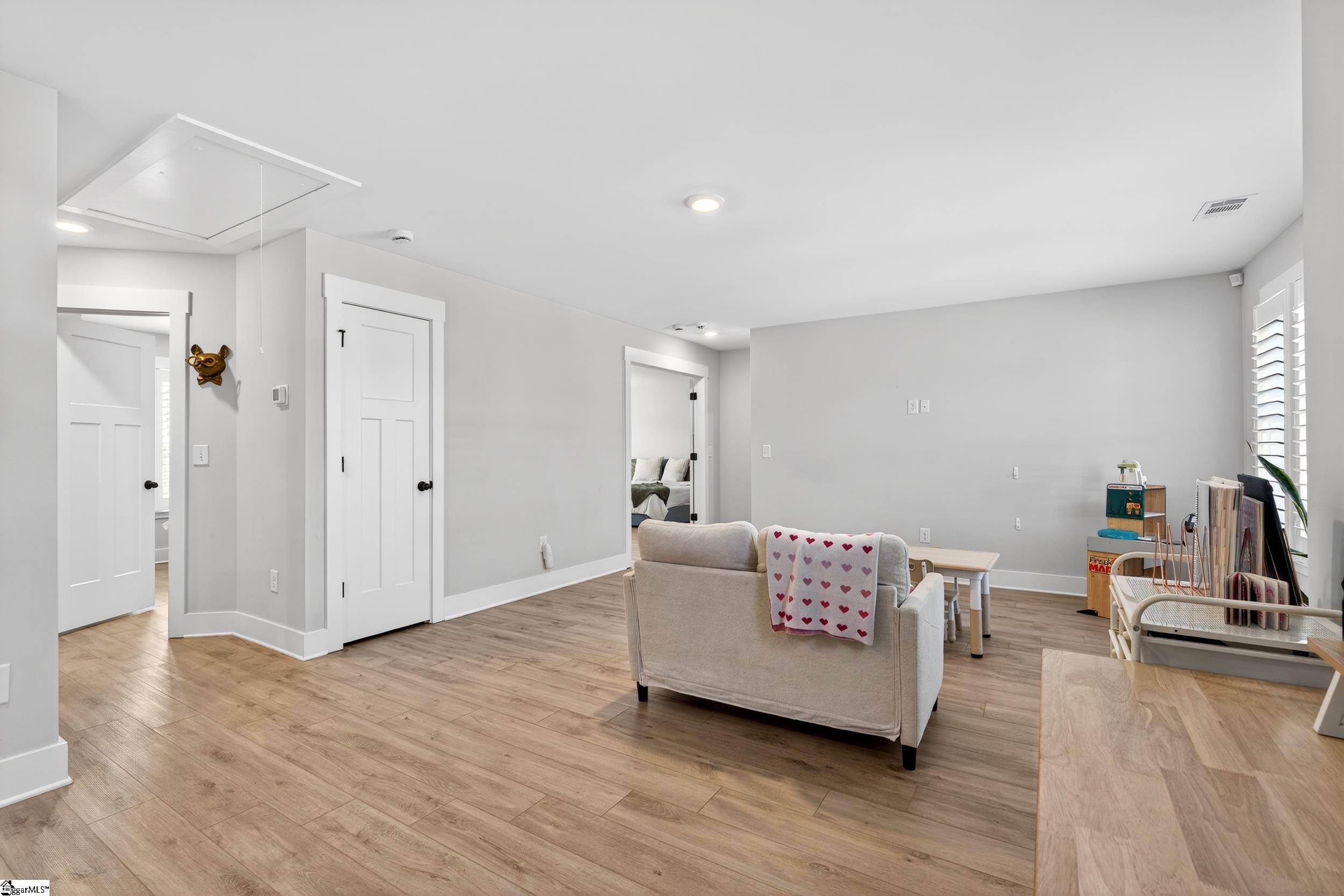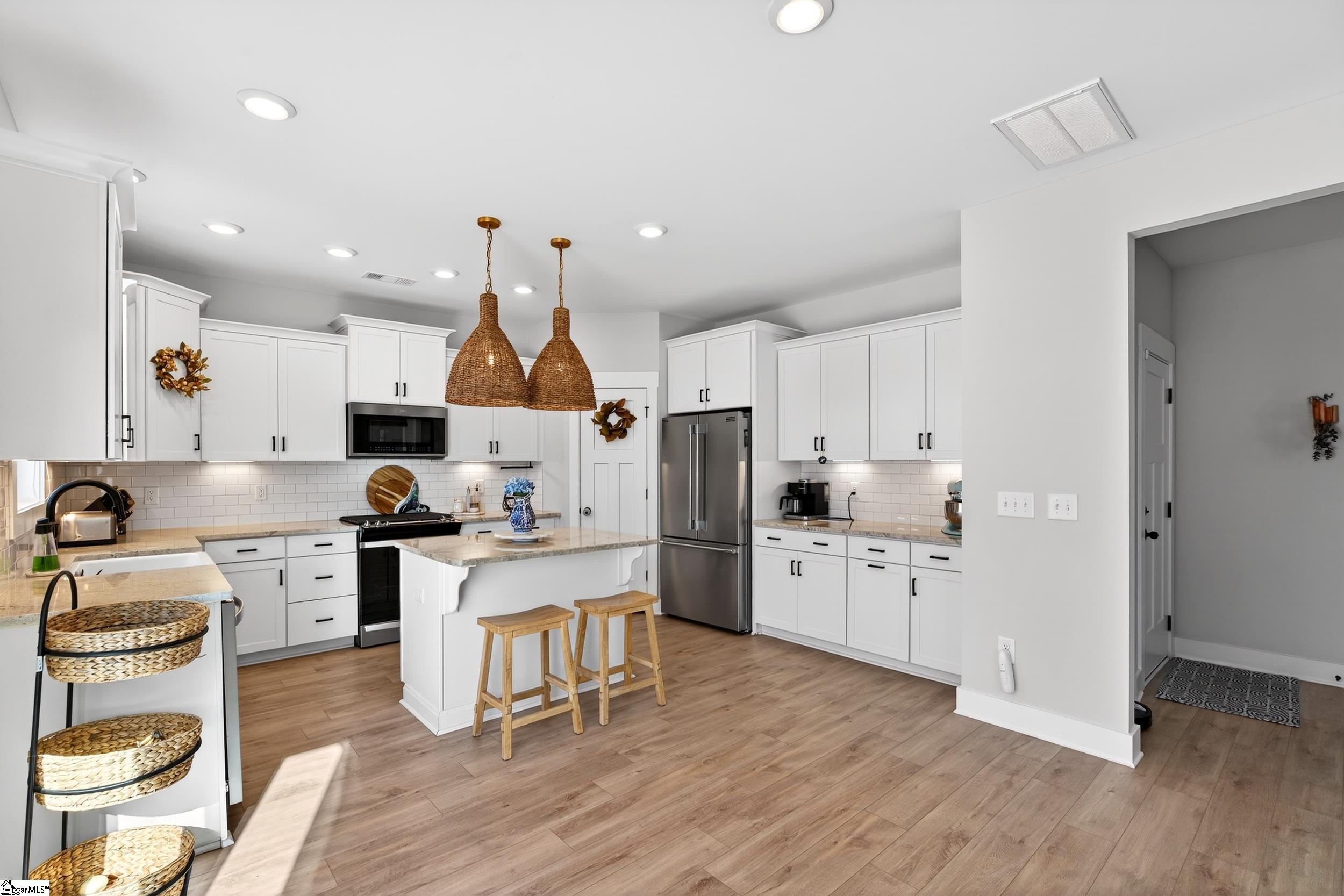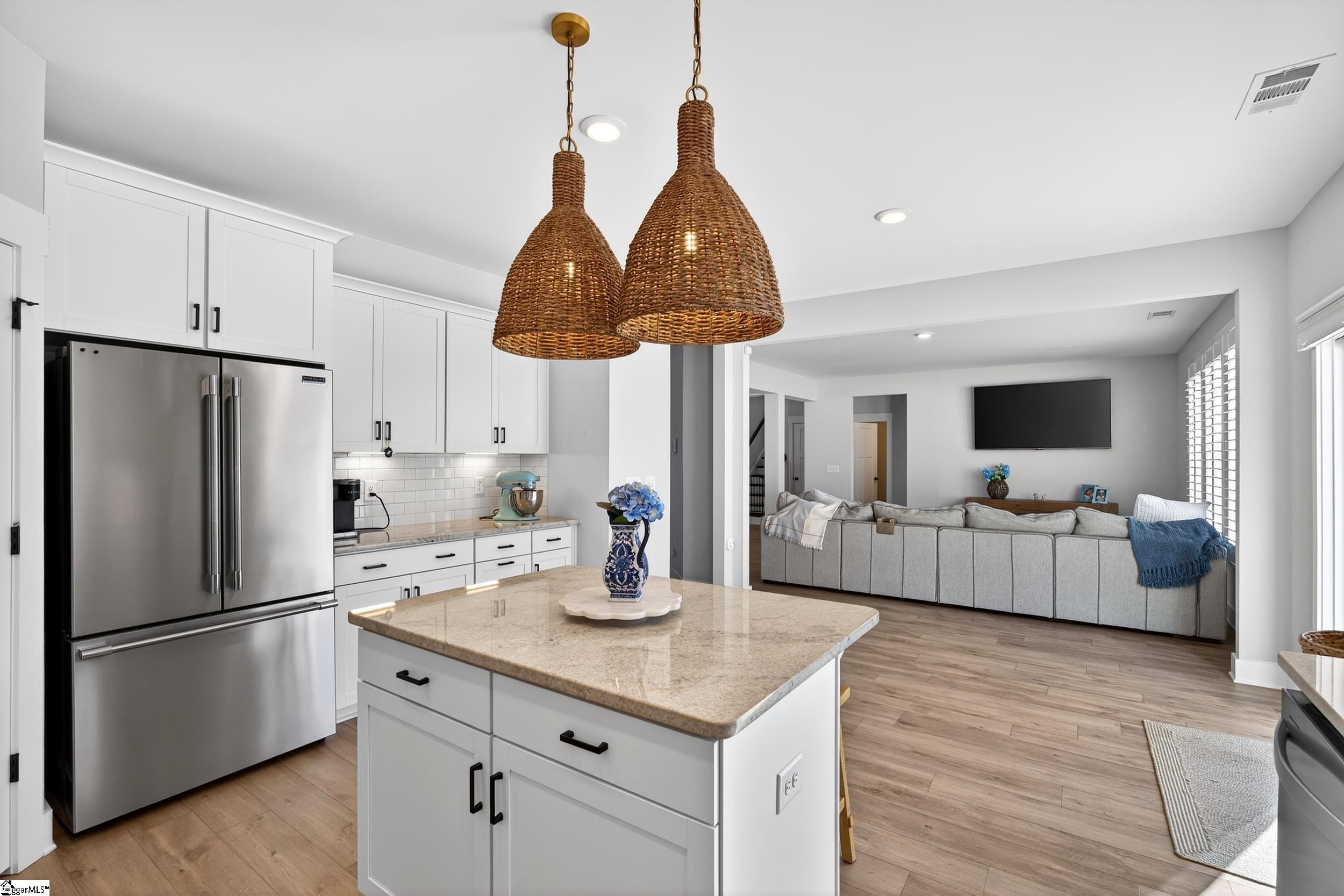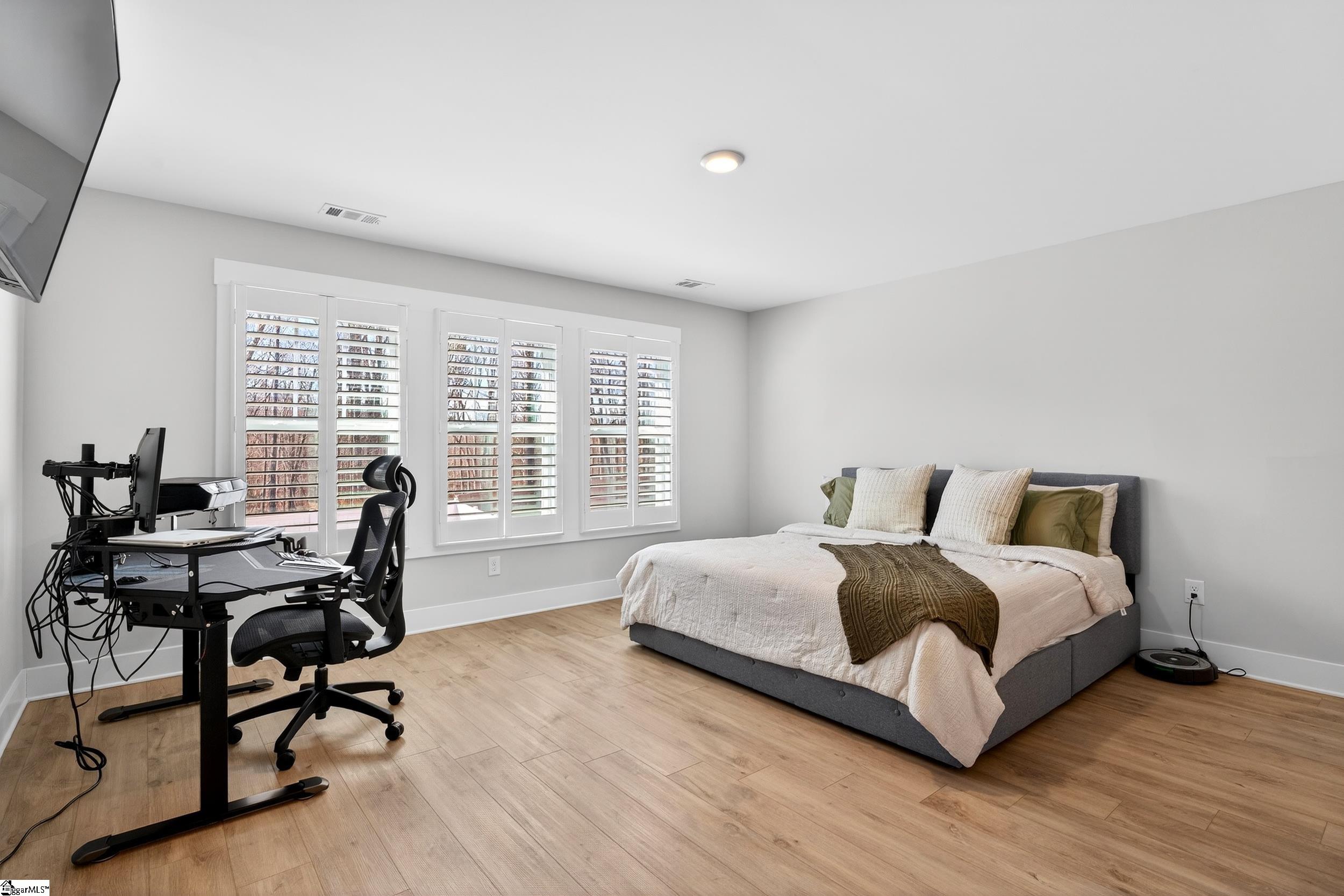 PRICE IMPROVEMENT: Built in 2023, this DRB Homes "Arlington" plan in Anderson Grant feels better than new with over $20, 000 in upgrades that today's buyers value. A covered front porch welcomes you into a formal dining room with coffered ceilings, setting the tone for the thoughtful layout. The main level opens into a spacious great room that flows seamlessly to the covered rear porch, creating an easy indoor-outdoor connection for relaxing or entertaining. At the heart of the home, the kitchen shines with granite countertops, beautiful cabinetry, pantry, stainless-steel appliances, and a gas range, along with a breakfast area for everyday meals. A flex space just off the living area adds versatility—ideal for a home office, playroom, or second sitting room. Upstairs, a generous loft creates a second living zone, while the owner’s suite serves as a private retreat with double vanities, a walk-in closet, and a Roman-tiled shower with dual shower heads and a built-in seat. Two additional bedrooms, a full bath with double sinks, and a convenient upstairs laundry room complete the second level. Throughout the home, you’ll appreciate thoughtful finishes including tilt-out thermal windows paired with custom plantation shutters. Outside, enjoy a level, low-maintenance yard with a 6' white vinyl privacy fence and both covered front and rear porches—and the real standout is the setting: the HOA-owned green space behind the home creates a natural buffer, adding a premium sense of privacy and breathing room you don’t always find in newer neighborhoods. Anderson Grant residents also enjoy neighborhood amenities including a pool and pavilion, pickleball courts, playground, dog park, and fire-pit area. Conveniently located between downtown Greenville and downtown Spartanburg with quick access to Five Forks, Greer, I-26, and I-85, plus proximity to major Upstate employers.