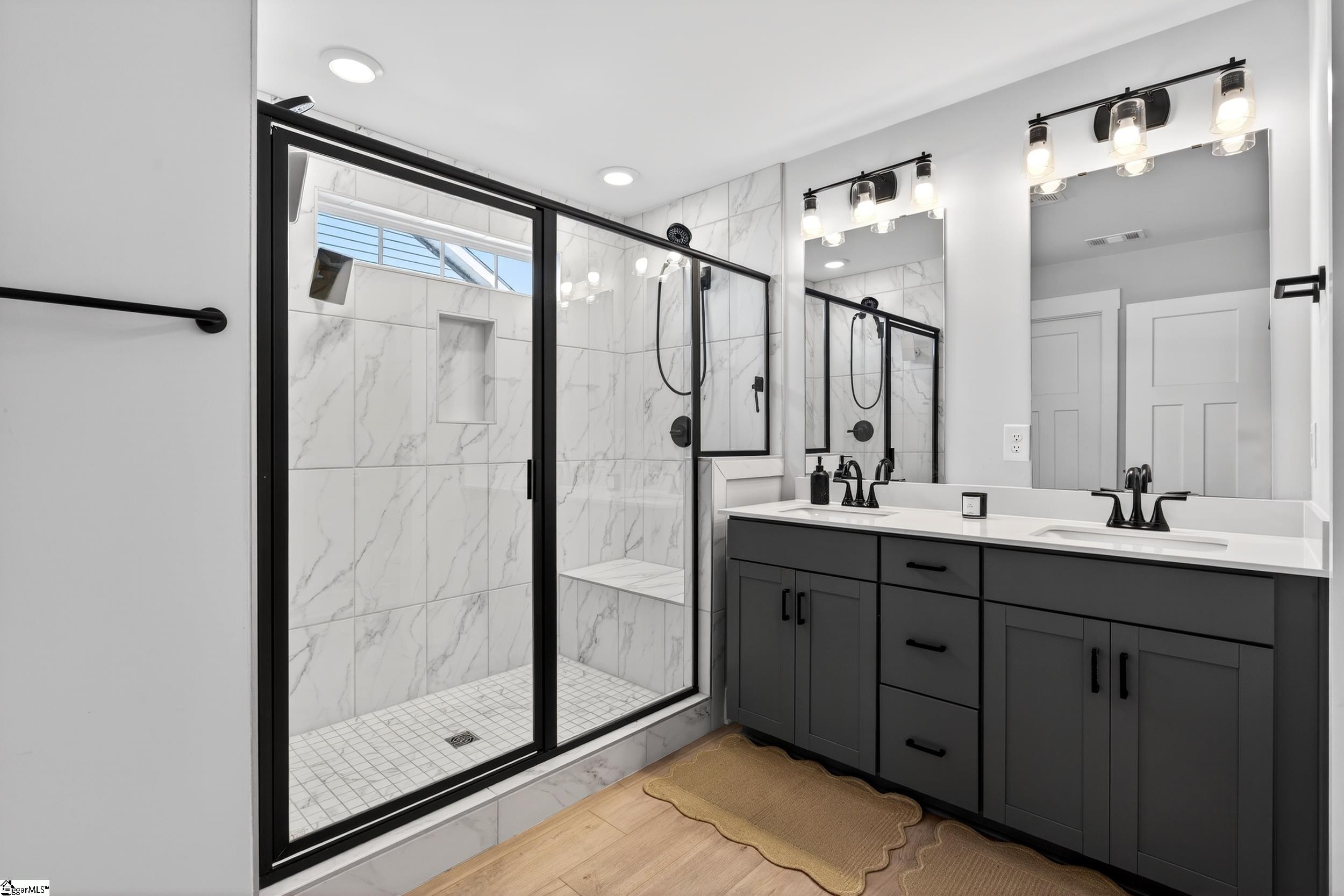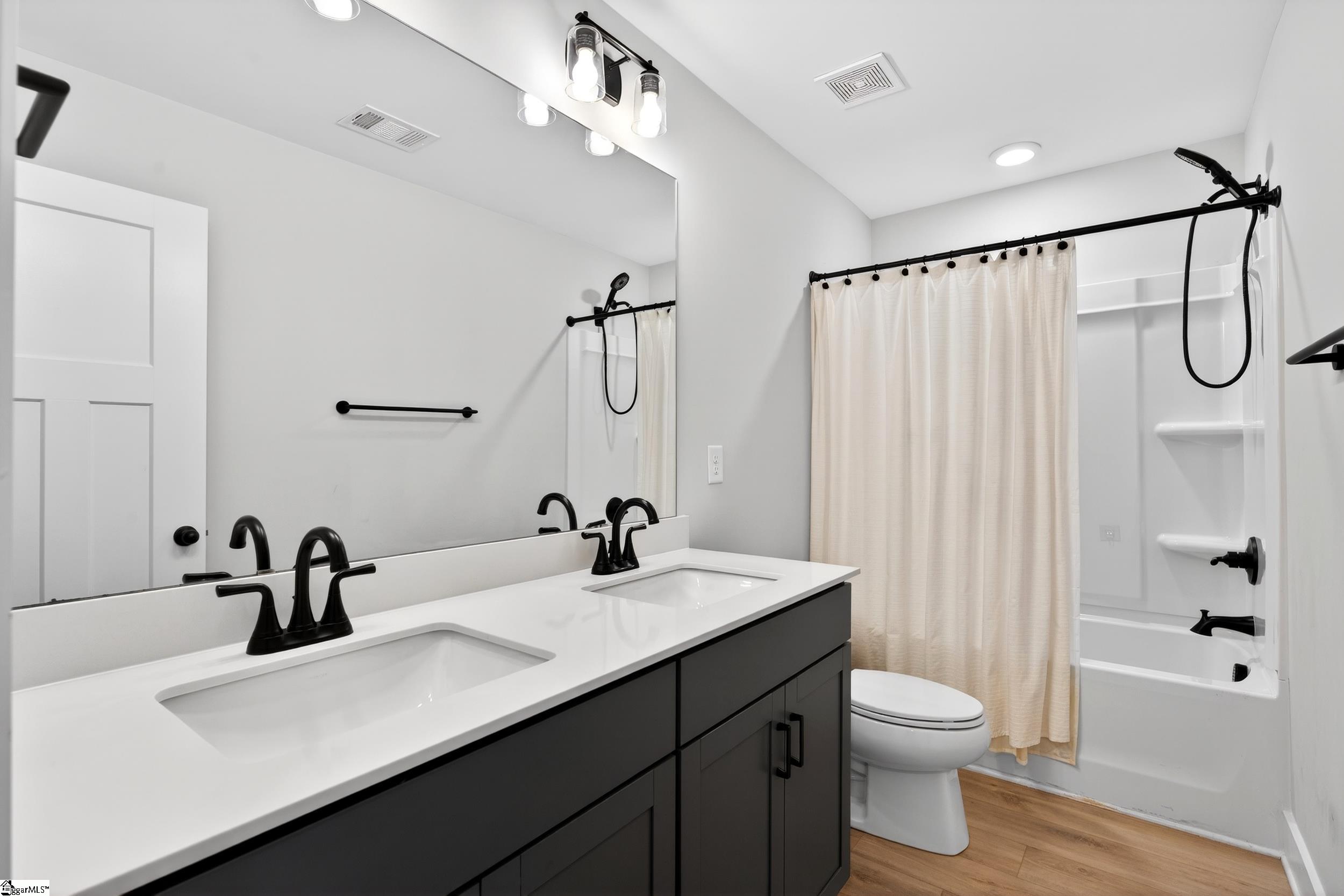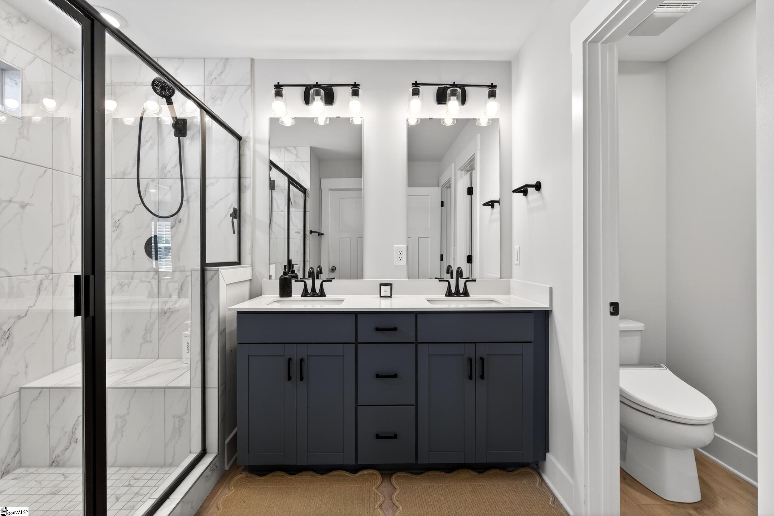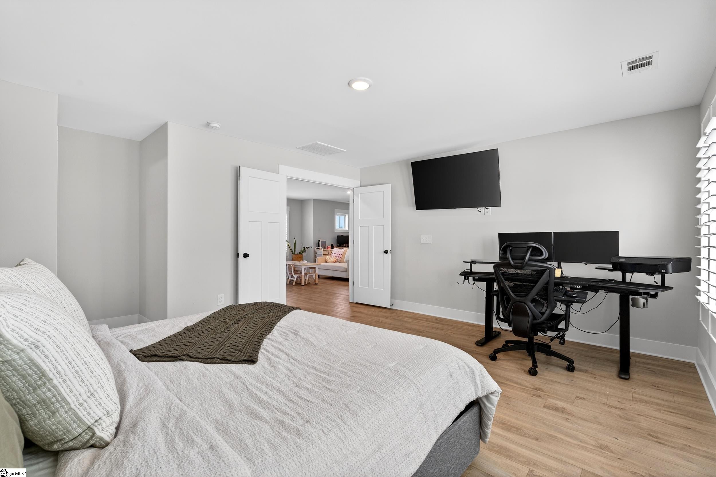 PRICE IMPROVEMENT: Built in 2023, this DRB Homes "Arlington" plan in Anderson Grant feels better than new with over $20, 000 in upgrades that today's buyers value. A covered front porch welcomes you into a formal dining room with coffered ceilings, setting the tone for the thoughtful layout. The main level opens into a spacious great room that flows seamlessly to the covered rear porch, creating an easy indoor-outdoor connection for relaxing or entertaining. At the heart of the home, the kitchen shines with granite countertops, beautiful cabinetry, pantry, stainless-steel appliances, and a gas range, along with a breakfast area for everyday meals. A flex space just off the living area adds versatility—ideal for a home office, playroom, or second sitting room. Upstairs, a generous loft creates a second living zone, while the owner’s suite serves as a private retreat with double vanities, a walk-in closet, and a Roman-tiled shower with dual shower heads and a built-in seat. Two additional bedrooms, a full bath with double sinks, and a convenient upstairs laundry room complete the second level. Throughout the home, you’ll appreciate thoughtful finishes including tilt-out thermal windows paired with custom plantation shutters. Outside, enjoy a level, low-maintenance yard with a 6' white vinyl privacy fence and both covered front and rear porches—and the real standout is the setting: the HOA-owned green space behind the home creates a natural buffer, adding a premium sense of privacy and breathing room you don’t always find in newer neighborhoods. Anderson Grant residents also enjoy neighborhood amenities including a pool and pavilion, pickleball courts, playground, dog park, and fire-pit area. Conveniently located between downtown Greenville and downtown Spartanburg with quick access to Five Forks, Greer, I-26, and I-85, plus proximity to major Upstate employers.