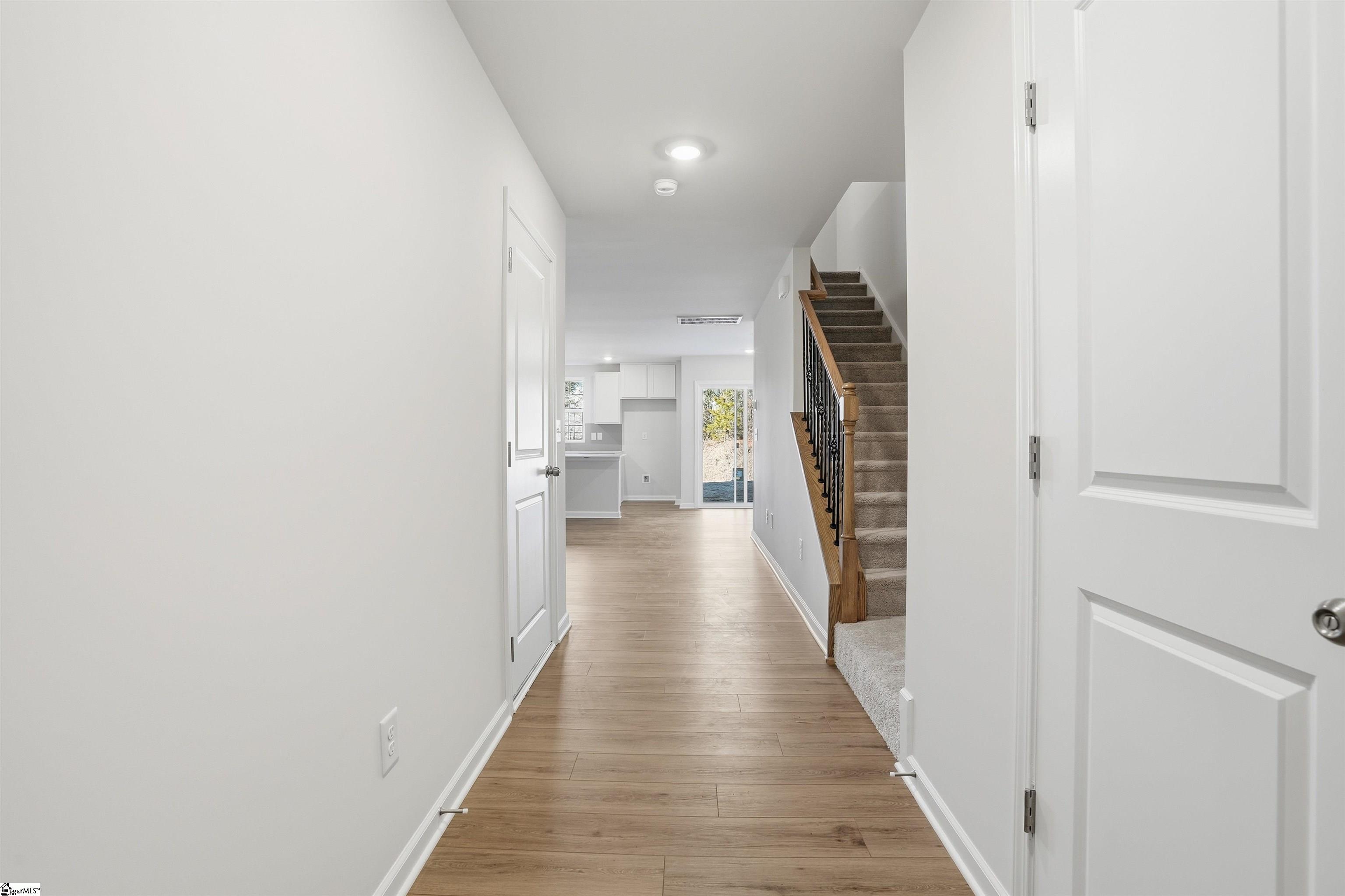The Chestnut floorplan at The Maple in Inman, SC. We are excited to introduce you to the Chestnut Floorplan – a delightful 3-bedroom, 2. 5-bathroom, 1423 square foot, 2-story townhouse that epitomizes modern craftsman style living. Upon entering, you'll be greeted by beautiful crisp white shaker cabinets, a stylish tile backsplash, and stainless steel appliances, including a gas stove. The large smooth surface island is perfect for gathering with family and friends, making it an ideal spot for food, fun, and lively interaction. The open concept design ensures that entertaining is a breeze, as the kitchen seamlessly flows into the breakfast room and spacious great room. Imagine sipping your morning coffee on your back covered patio, enjoying the tranquility of your new home. Upstairs, you'll find a generous master bedroom with a walk-in shower en suite and a tankless gas water heater. Additionally, this charming home offers two other bedrooms, a full bath, and a convenient laundry room. It's ideal for families seeking a peaceful neighborhood with convenient connections to Greenville and Spartanburg.