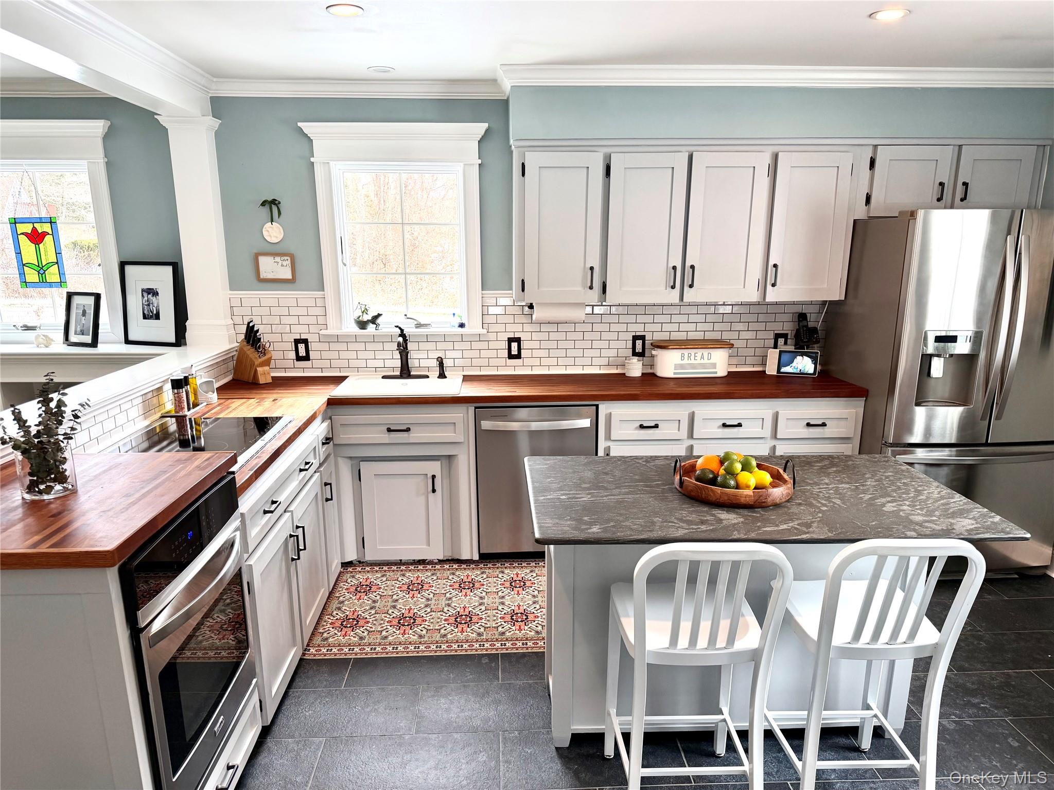 **Professional Photographs Coming Soon**Classic, Stylish & Sophisticated With Understated Elegance Throughout, This Stunning True Four Bedroom Ranch Offers 2100 Square Feet Of Living Space With Endless Upgrades & Updates, A Premier Location North Of North Country Road & Just A Few Blocks From The Shoreham Shore Club Private Beach (Corporate Membership With Two Parking Spots), And A Resort Backyard With A Magnificent Saltwater In Ground Pool & Extensive Entertaining Spaces. . . With The Attention To Detail, Features & Upgrades That This Home Has, There Is Nothing Else Like It In This Price Range. Charm, Character & Elegance Abounds. . . Stunning Box Paneled Wainscoted Walls & Custom Moldings Greet You In The Formal Entrance Foyer, A Magnificent Columned Half wall Entry Into The Inviting Formal Living Room Offering A Large Andersen Bay Window With High End Moldings/Details (All Windows & Doors Have Beautiful Details/Trims) Box Paneled Walls, Custom Moldings & Hardwood Floors, Another Stunning Set Of Columns & Half Wall With Built In Bookshelves Opens Into The Elegant Formal Dining Room With Beautiful Details, Double Andersen Window For Natural Light, Ample Room For A Large Dining Table, Chairs & China Cabinet/Hutch, Custom Moldings, Beautiful Hardwood Floors, And The Dining Room Opens Into The Beautiful Upgraded Kitchen. The Tastefully Upgraded, Stunning Eat In Kitchen Offers Walls Of Hand Painted Shaker Style Cabinetry, Cherrywood Butcherblock Countertops, Subway Tiled Backsplash, Andersen Window Over The Sink For Natural Light, Stainless Steel Appliances (Including A Built In Convection Oven & Induction Cooktop), Custom Moldings, Recessed Lighting, Beautiful Details, And A Center Island With Soapstone Countertop & Barstool Area. A Columned Half Wall Opens Into The Den/Family Room Offering A Feel Of A New England Manor Home With It's Wraparound Built In Shelving, Moldings/Details, Brick Fireplace With Custom Mantel & Built In Bookshelves Above, Custom Moldings, Beautiful Hardwood Floors, Ample Room For Furniture & Sliding Doors To A Large Trex Deck & The Backyard. The First Guest Bedroom Is Well Sized With Two Double Windows For Natural Light, Hardwood Floors, A Walk In Closet & Ample Room For Furniture, The Second Guest Bedroom Is Well Sized With Two Double Windows For Natural Light, Double Sized Closet, Hardwood Floors & Ample Room For Furniture, The Third Guest Bedroom Is Also Large With A Double Window For Natural Light, Crown Moldings, Hardwood Floors & A Good Sized Closet, And The Beautifully Renovated Hallway/Guest Bathroom Offers A Stone Topped Shaker Style Vanity & Upgraded Fixtures, Full Bathtub/Shower With All Beautiful Tilework/Trims, And A Beautiful Accent Tiled Floor. The Elegant, Inviting Primary Bedroom Offers A Perfect Escape With Beautiful Hardwood Floors, Custom Moldings, Ample Room For A Large Bedroom Set/Furniture, Sliding Doors To The Trex Deck & Backyard, And A Walk In Closet With Built In Shelving/Storage, And The Stunning Completely Upgraded Primary Bathroom Offers A Pocket Door, Oversized Custom Shower With Floor To Ceiling Fully Subway Tiled Walls, Glass Wall, Halfway Ceramic Tiled Walls Throughout, Stone Topped Vanity, Crown Moldings & Accent Tiled Floor. The Expansive Full Basement Offers Soooo Many Possibilities For Creating Additional Living Space & The Two Car Side Entry Garage, And The Spectacular Entertainer's Resort Backyard Offers A Saltwater Mountain Lake In Ground Pool, Expansive Paver Patios & Entertaining Spaces, Large Trex Deck, Custom Outdoor Bar, And The Property Is Wrapped In Tall Privacy/Shade Trees, Cherry & Magnolia Trees, Japanese Umbrella Tree, Crepe Myrtle, Butterfly Bushes, Rose Of Sharon, Sea Grasses Flowering Perennials, And Is Very Private Backing A Recharge Basin. This One Of A Kind Stunning, Sprawling Ranch & Top Location Make This An Extremely Rare Opportunity For The Discerning Buyer, And Not To Be Missed!