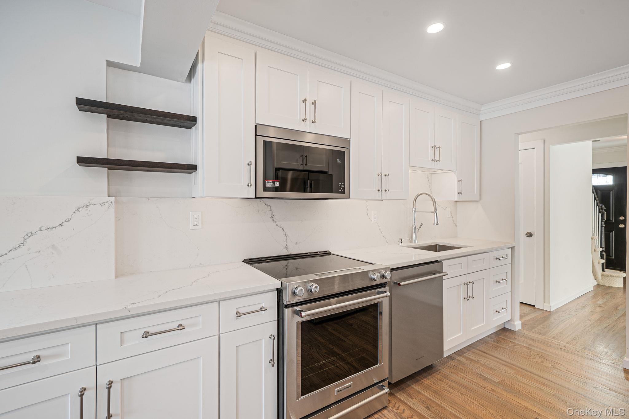 Stunning renovated expanded cape in 2026. This Gorgeous 4 bedroom 2 full bath expanded-cape features a custom Eat-in-kitchen with Quartz counter tops Quartz back splash, crown moldings and High-End Kitchen Aid SS Appliances. Beautiful hardwood floors. New Solid Wood interior doors. Updated bathrooms, Stylish Vanities, Mosaic marble, porcelain floors and Tile with a beautiful soak-in-tub. Open spacious floor plan, living rm, formal dining rm, eat-in-kitchen, open to a family rm. Enjoy your new back deck for entertaining and private yard with lush landscaping and specimen plantings! Full basement- half finished brand new for your enjoyment! One car attached garage. Brand new oil tank, updated roof and 200 amp electric service. Don't miss this Spectacular Home!