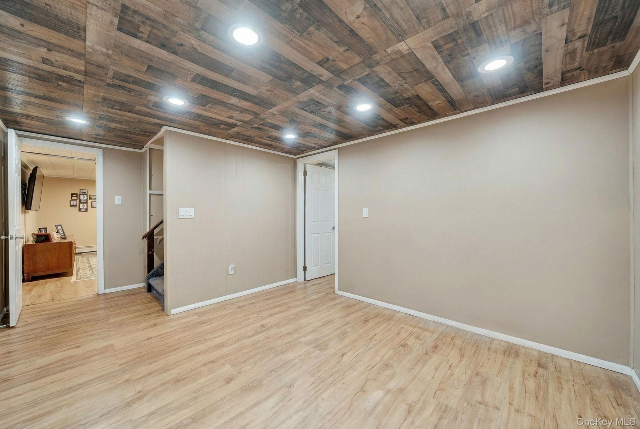 Welcome home to this beautifully maintained ranch offering the perfect blend of comfort and space. Step into the inviting entry foyer that opens seamlessly into a spacious living room, formal dining area, and an open-concept kitchen complete with a center island—ideal for everyday living and entertaining alike. The first floor features three generously sized bedrooms, including a private primary suite with its own en-suite bath, providing a peaceful retreat at the end of the day. This home has been meticulously cared for from top to bottom, offering true move-in-ready condition. Major updates include a brand-new roof and a new sewer line, giving added peace of mind for years to come. The fully finished basement significantly expands your living space, featuring a large entertainment area perfect for gatherings, movie nights, or a home gym, along with a dedicated laundry room for added convenience. Step outside to a spacious backyard designed for both relaxation and entertaining. Enjoy beautiful landscaping and the ease of in-ground sprinklers throughout the property, making maintenance effortless while keeping the grounds lush and green. This exceptional ranch offers comfort, functionality, and valuable updates—all in one incredible package. Don’t miss the opportunity to make it yours! Call for your private tour today!