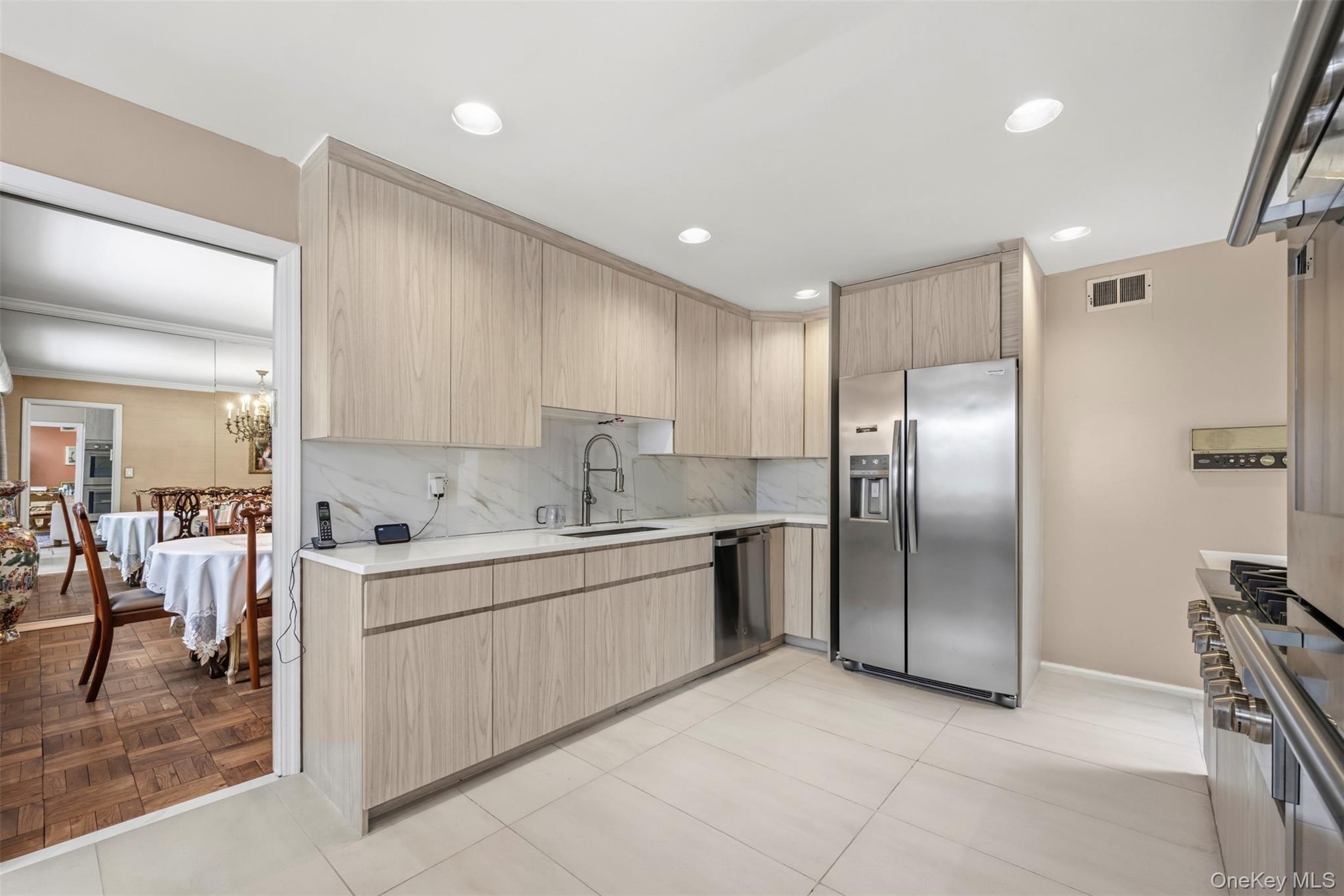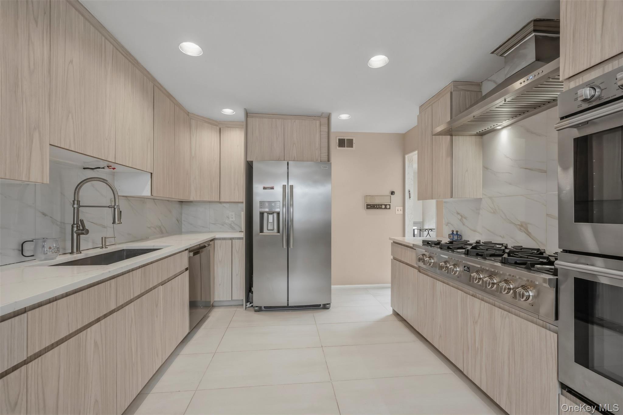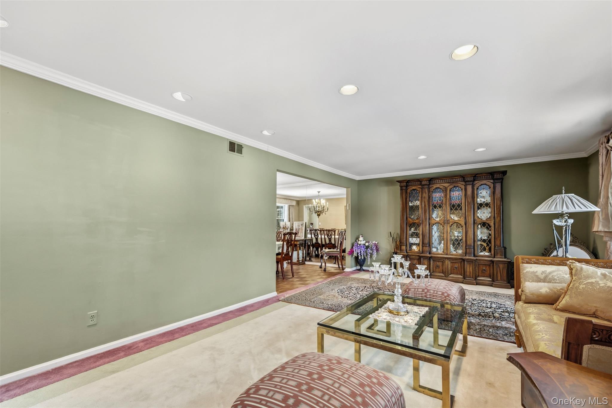 Spacious 3-bedroom, 2. 5-bath ranch located in the Village of Great Neck Estates. This home features generous room sizes and an open layout including a large formal living room, formal dining room, and an oversized family room with high ceilings, skylights, and a gas fireplace overlooking a private backyard and a large porch. New eat-in kitchen with quartz countertops. Primary bedroom with en-suite bath and ample closet space. Lower level offers versatile space, laundry area, and direct access to attached 2-car garage and wide driveway. Village amenities include private police, private pool, and tennis courts, waterfront parks, summer camps , private police, zoned for choice of south or north middle school , conveniently located near shopping and transportation LIRR.