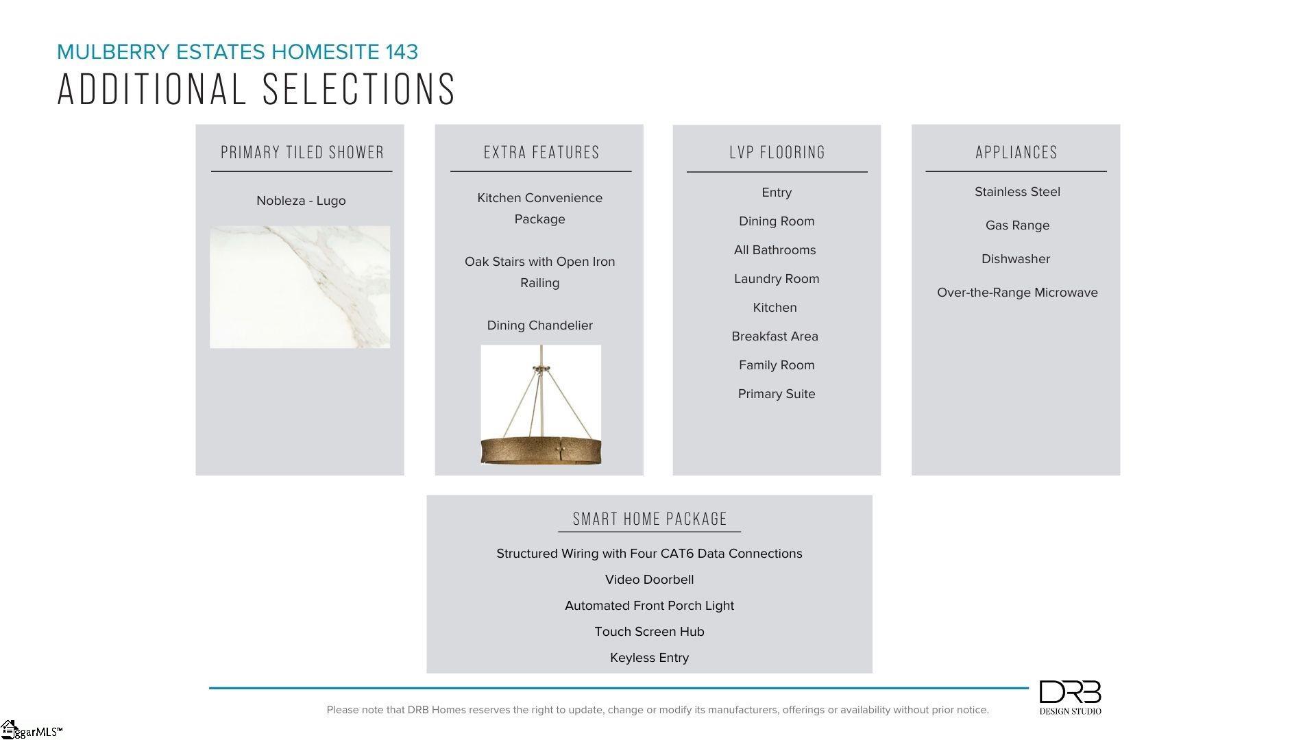 Welcome to Mulberry Estates. We are the only single family community in Simpsonville with future access to the Swamp Rabbit Trail. The Middleton Design offers craftsman-style architecture at its finest with large windows allowing the sun to glisten throughout the home. When you enter your home you will be greeted by your 2 story foyer and adjacent formal dining room. Continuing into the open kitchen and living room, you will be wowed by the beautiful dark cabinetry, Quartz countertops, butlers pantry, large center island with farmhouse sink, double door pantry, and stainless steel gas appliances. The living room features trey ceilings, tall windows for lots of natural lights and a cozy gas fireplace. The breakfast room leads out to the covered back porch which overlooks your large backyard. The Primary Suite is situated off the living room and features an expansive walk in closet, double vanities and amazing Roman tiled shower with dual showerheads, seat and frameless glass door. The laundry room and powder room complete the main level. As you go up the Oak staircase off the foyer, you have three additional bedrooms, one with an ensuite bathroom, an additional hall bath with double sinks, and a large multi use room, great for a game room or even a home office. Smart home technology, energy-efficient design, and a dedicated local warranty team ensure long-term comfort and convenience. Centrally located between two of Greenville County's fastest growing cities. Mulberry Estates has premier craftsman style floorplans including first or second level primary suites, James Hardie ColorPlus siding, open concept living and designs for all lifestyles. Desirable future in-community access to the Swamp Rabbit Trail. Under 5 minutes from I-385 and Harrison Bridge Rd. Surrounded by top-rated schools including the new Fountain Inn High School. Immerse yourself in entertainment options with the Heritage Park Amphitheater being just around the corner. Explore charming downtown Fountain Inn with the Farmer’s Market, Shopping, and Dining only five minutes from your doorstep. Plus, convenient retail nearby with Target, Publix, and more off of Fairview Road. This home will be complete this Summer so come by today for more information and make Mulberry Estates your new home. See Sales Agent for additional pricing information.