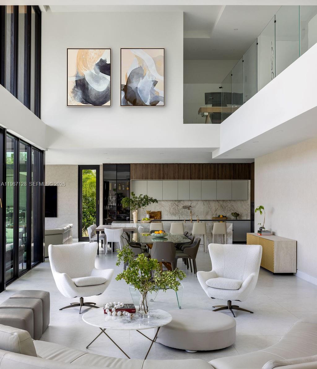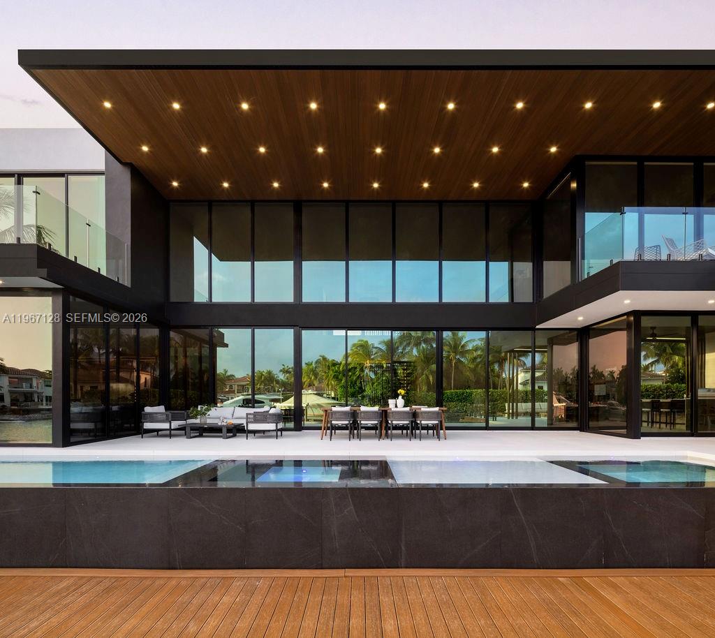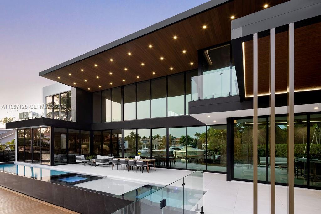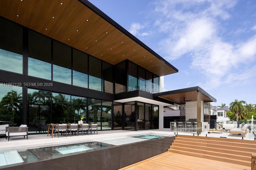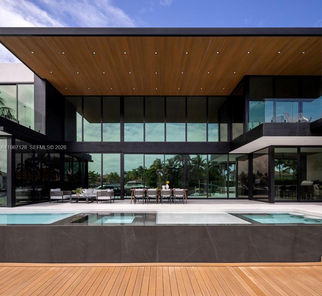 Brand-new two-story waterfront home with 100 feet of water frontage, direct ocean access, with boat lift. 7, 515Sqf Open floor plan with 6 bedrooms and 5. 5 bathrooms. Resort-style pool with swim-up bar and stools, hot jacuzzi, separate cold plunge, and kids’ shallow play area. Outdoor kitchen with premium grill, cooler and ice maker, large pantry, open kitchen, 2 dishwasher, 4 washers , 3 dryers, automatic iron machine. Whole-home surround sound (indoor and outdoor). Dual whole house water filtration system, large second-floor balconies. Covered 2-car garage. Playground with premium safety turf, fully equipped private gym and EV charging station.